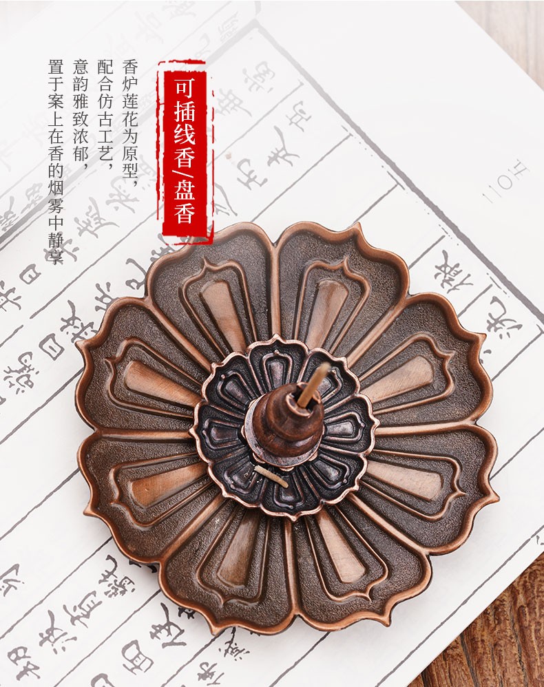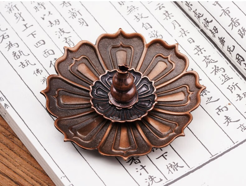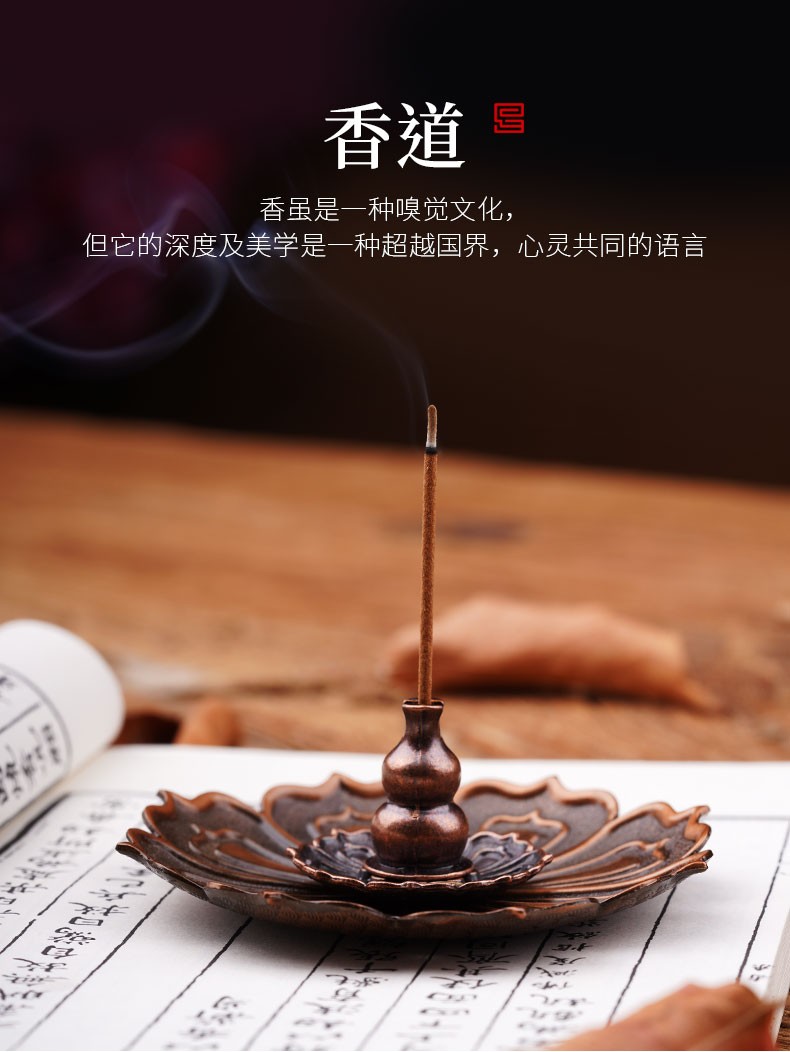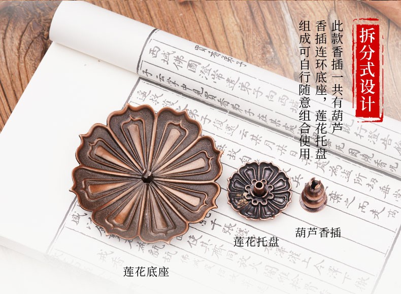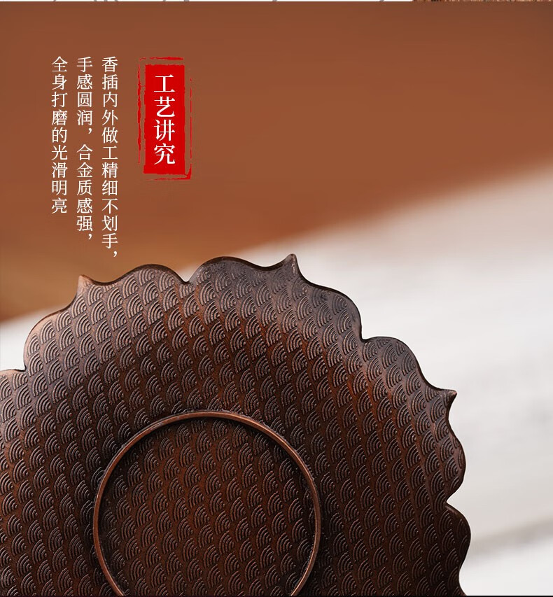 普云 莲花三宝铜合金香盘 三件套组香盘 香插适用盘香粗细款线香塔香 莲花三宝铜合金香盘