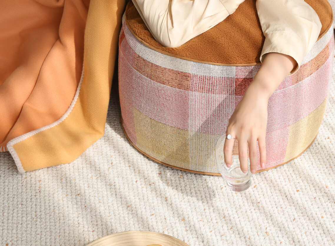 赛波斯蜜桃蒲团坐垫地毯坐墩可拆洗轻奢高级感换鞋凳玄关卧室客厅 胡桃棕 50*50*30