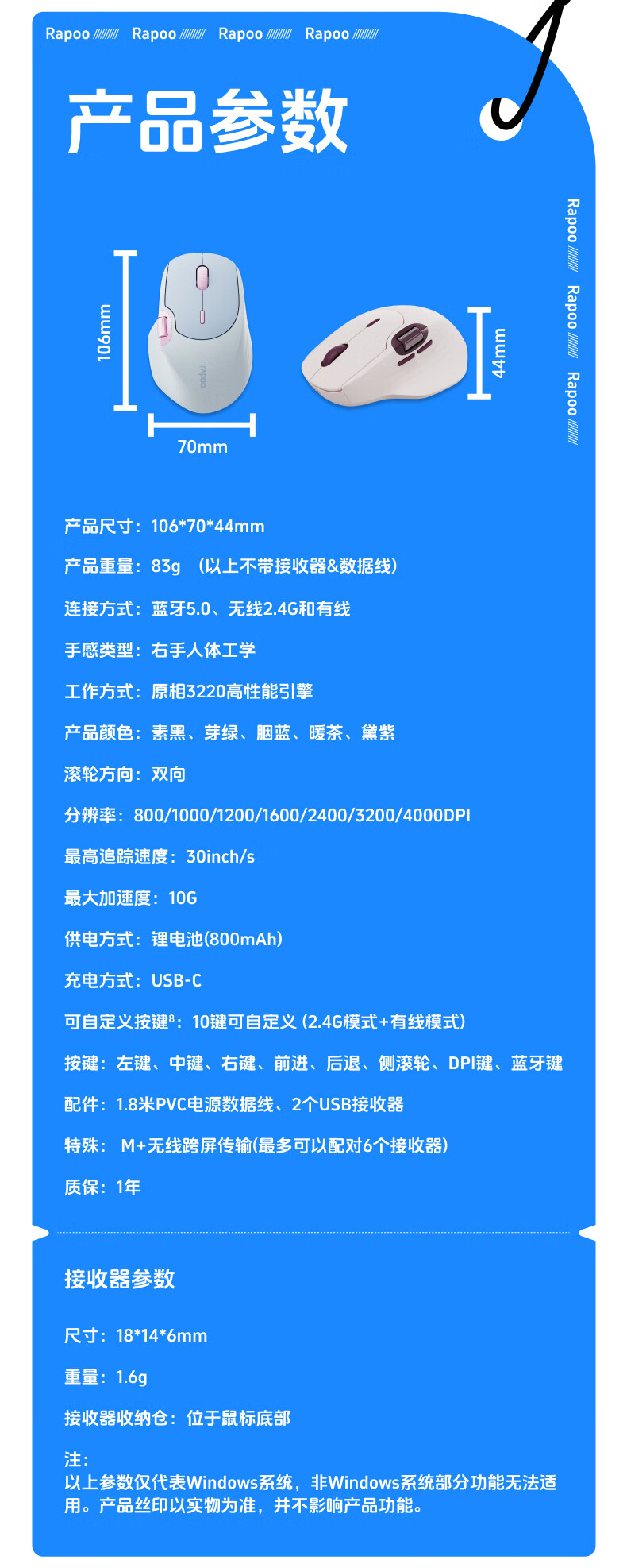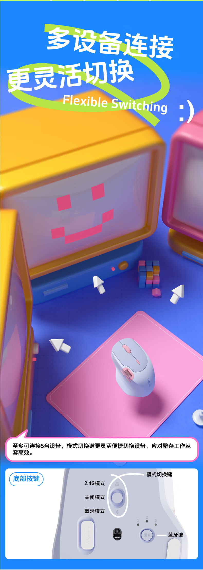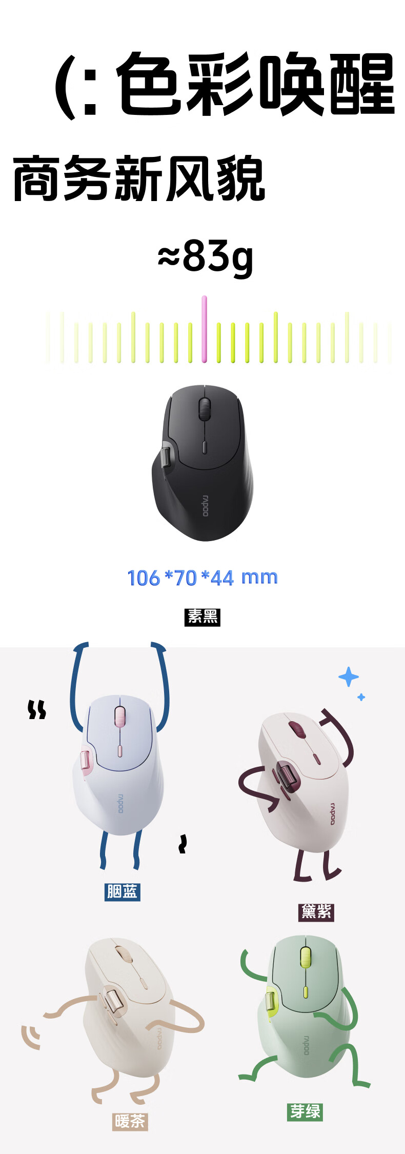 雷柏(Rapoo)MT560 中小手无线/蓝牙/有线多模办公鼠标 人体工学跨屏传输超长续航支持5台设备切换 黑色