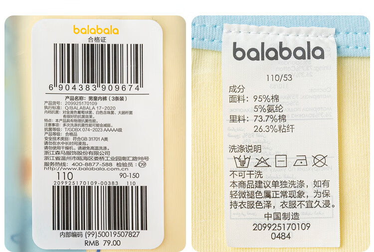 巴拉巴拉男童内裤棉a类儿童平角短裤小童宝宝四角三条装209925170109