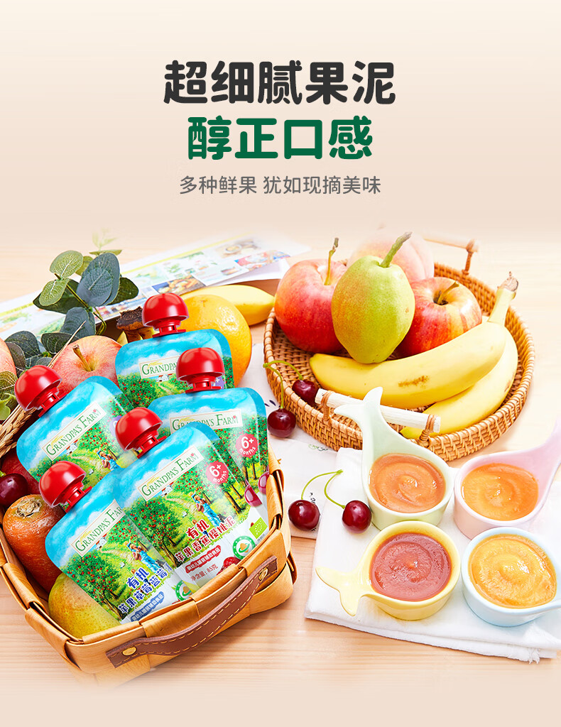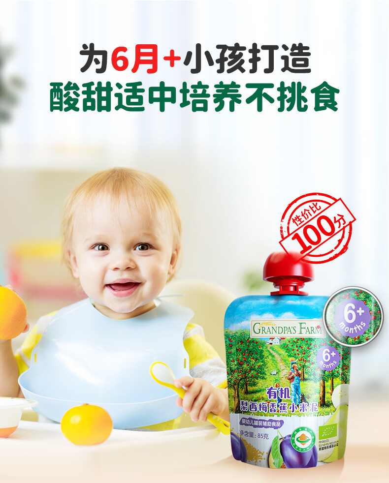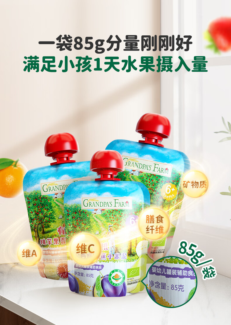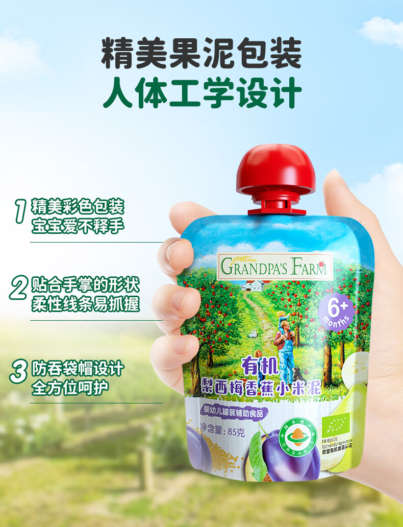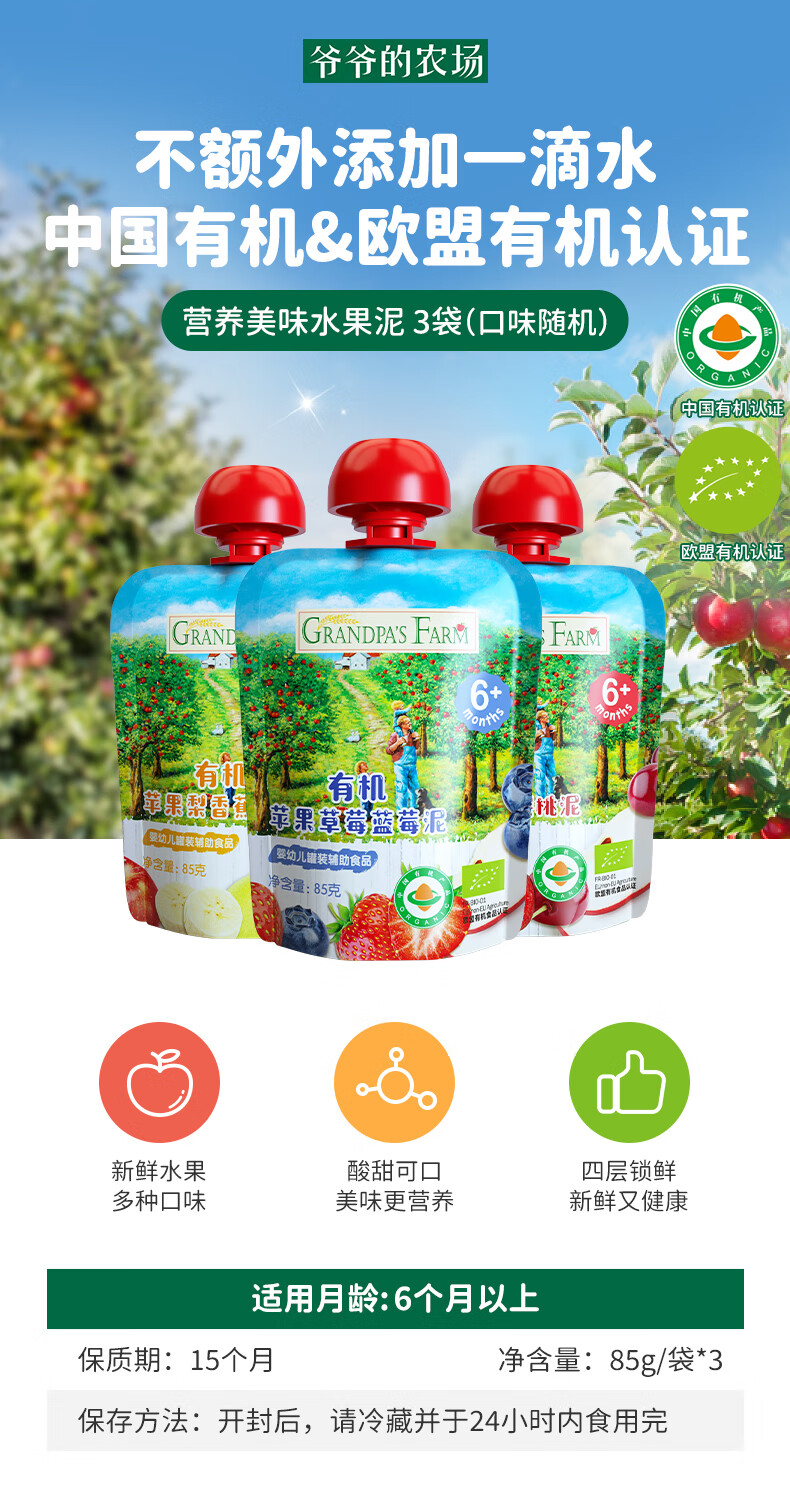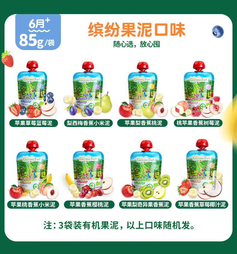 爷爷的农场有机果泥进口宝宝果泥婴儿果泥果汁西梅泥口味随机85g*3袋礼盒