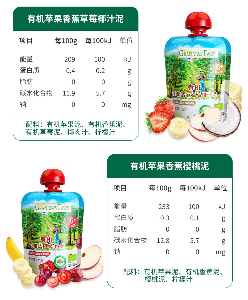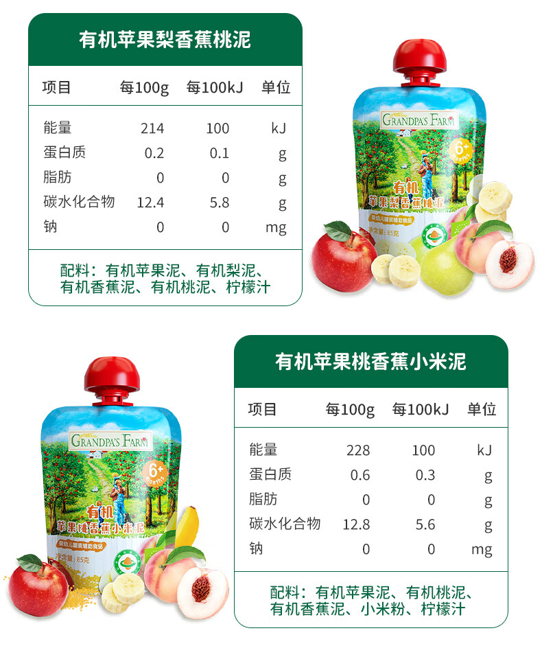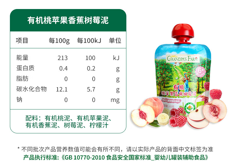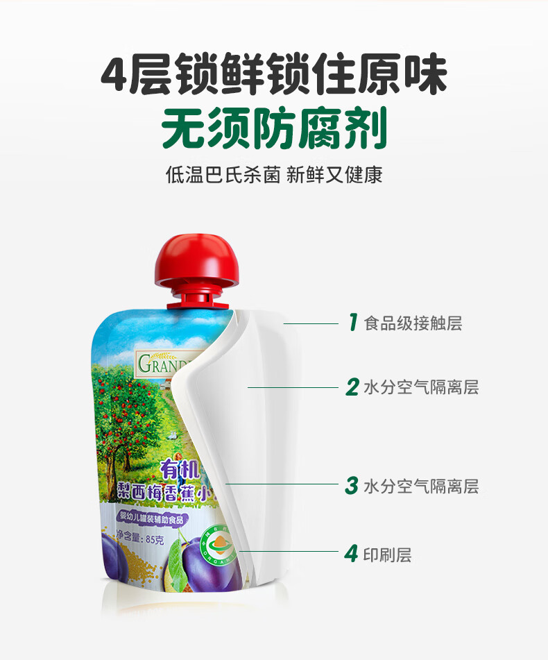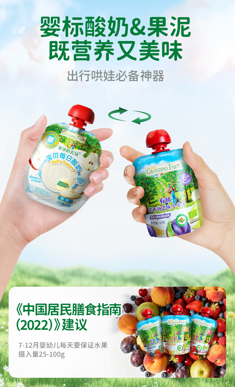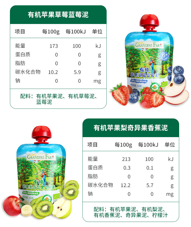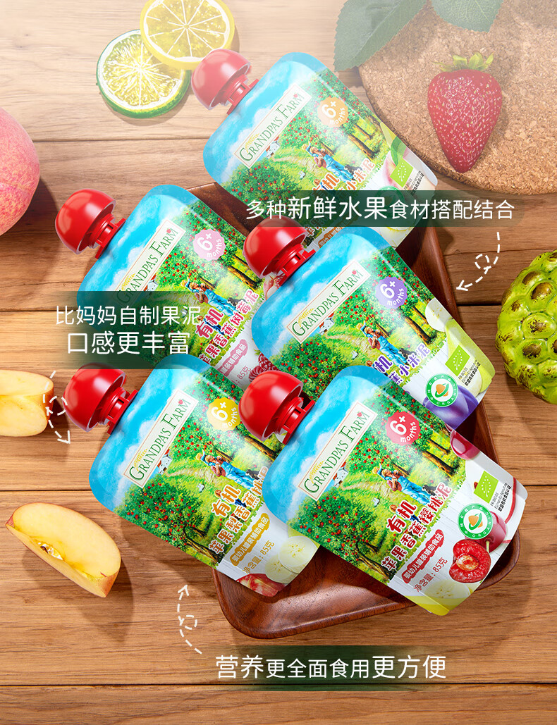 爷爷的农场有机果泥进口宝宝果泥婴儿果泥果汁西梅泥口味随机85g*3袋礼盒