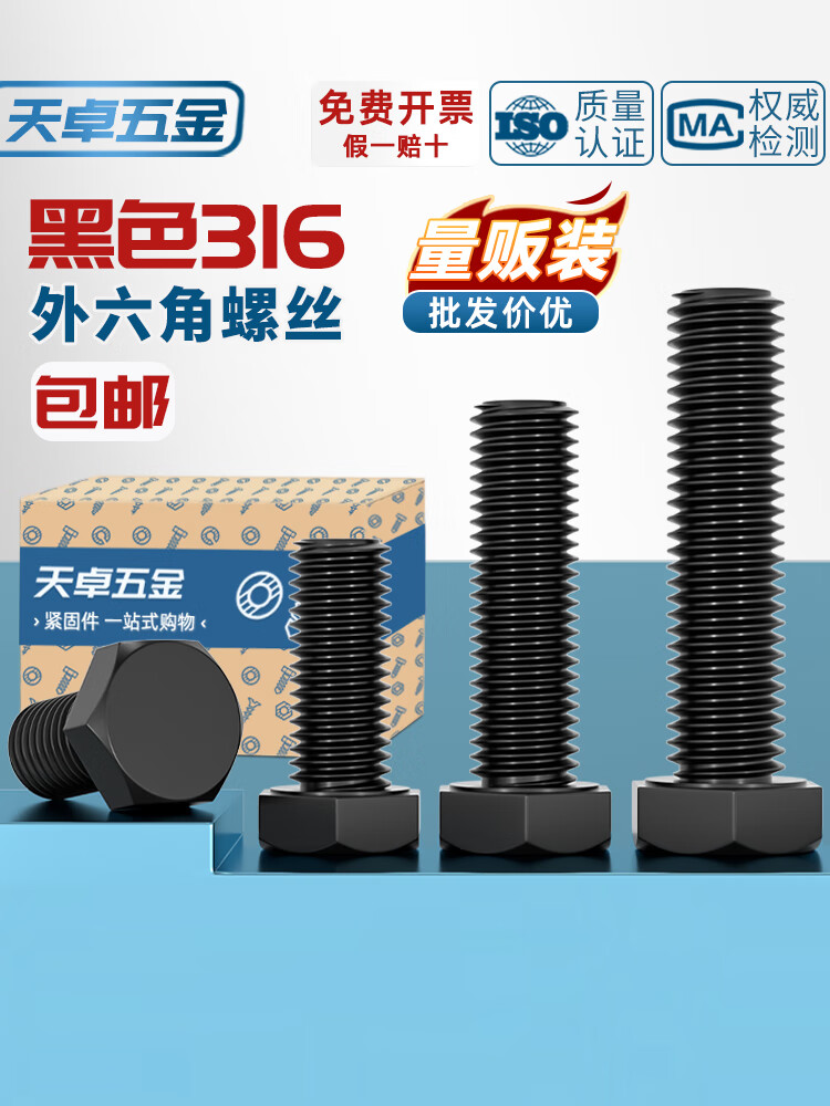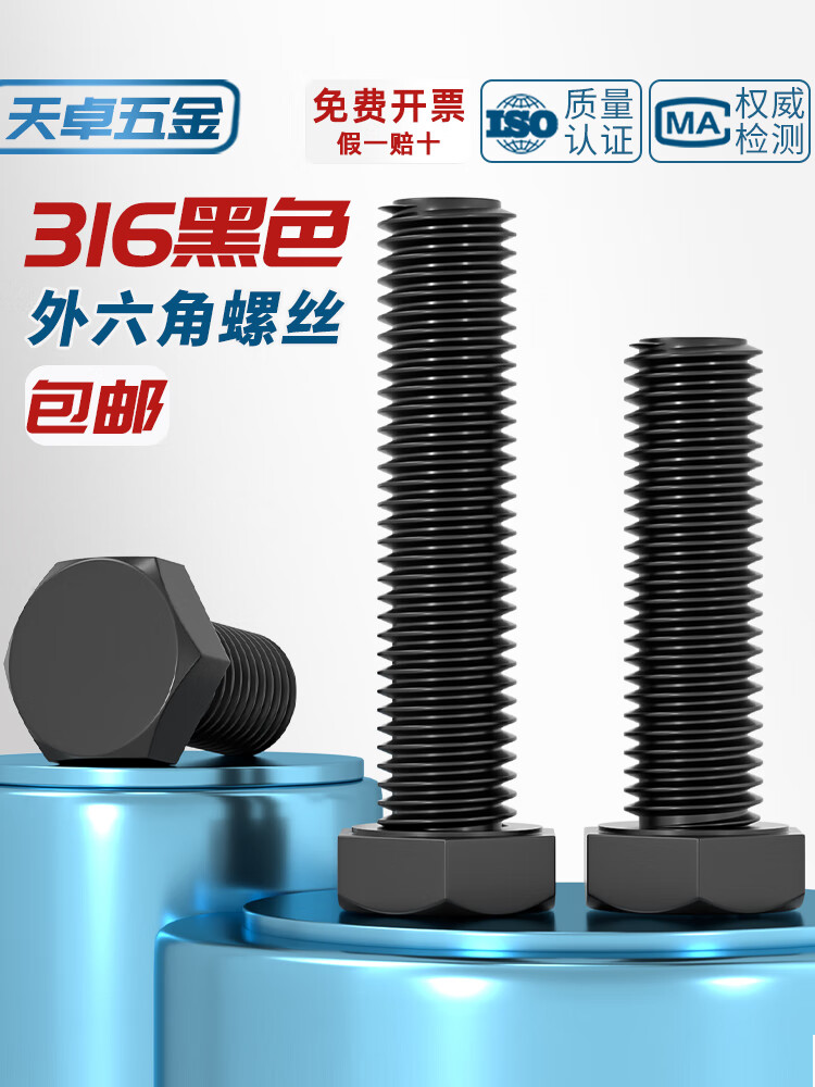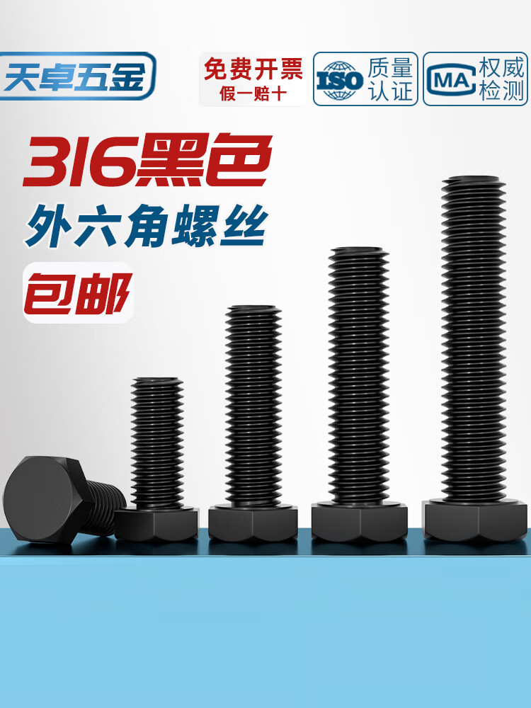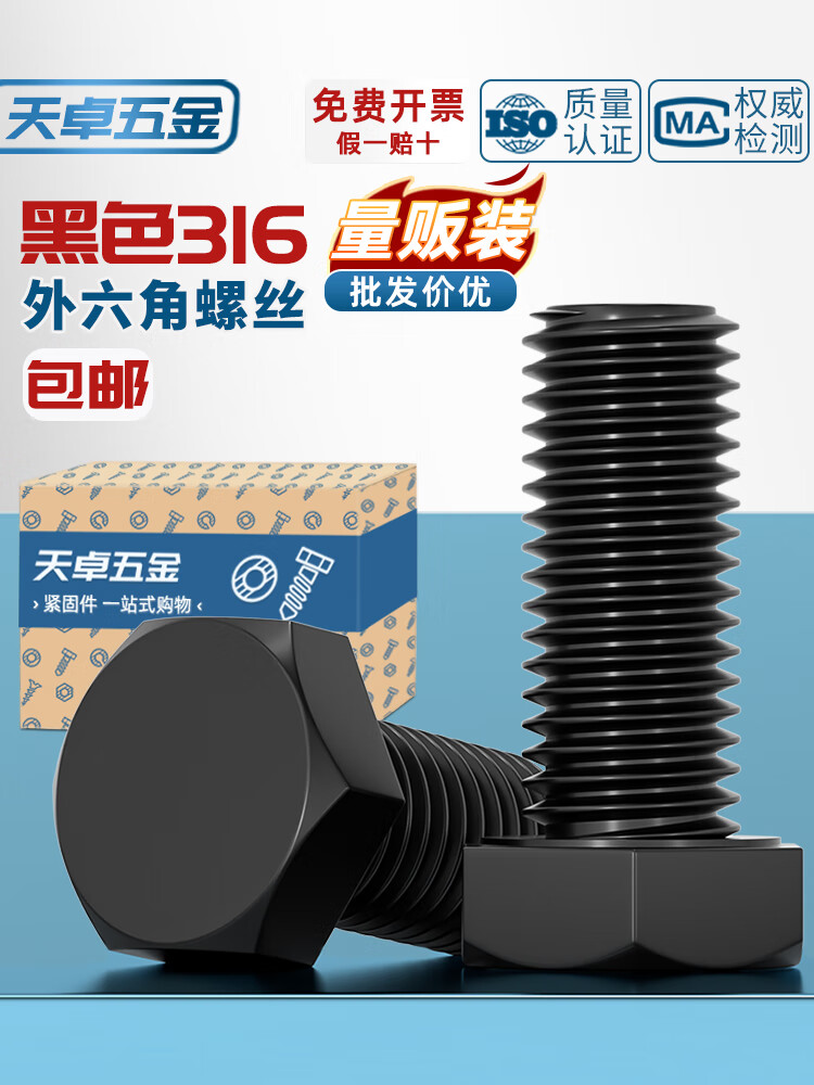 天卓五金国标黑色304不锈钢外六角螺丝 镀黑锌发黑螺栓M3M4M5M6M8M10M12mm M3*6【80个】
