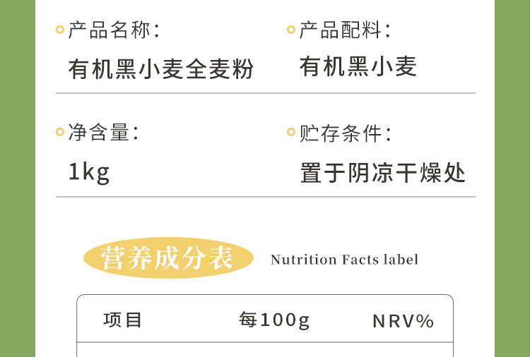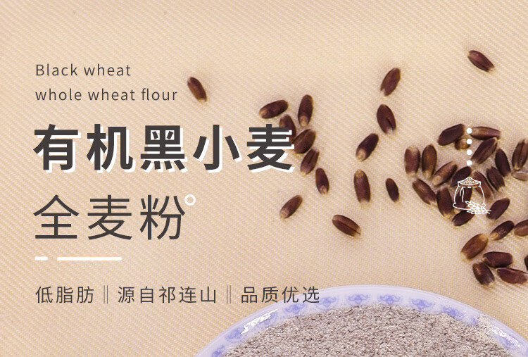 本然祁连有机黑小麦全麦粉 纯黑麦粉 含麦麸黑麦五谷杂粮粗粮面粉 2斤袋装