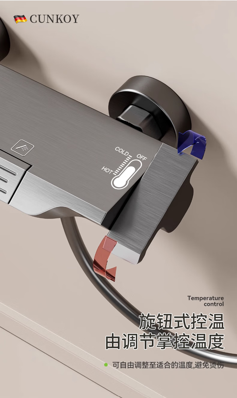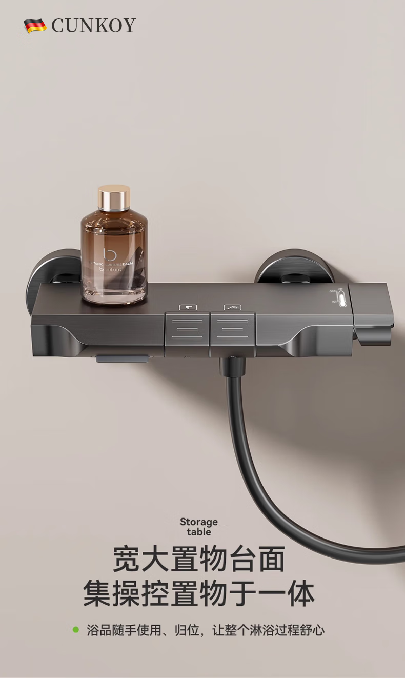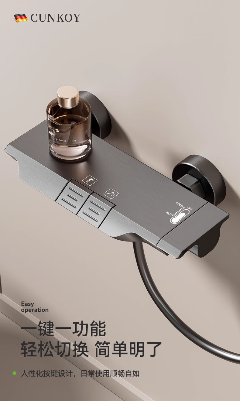 CUNKOY淋浴花洒套装一体冷热增压花洒淋浴全套一整套2025新款 琴键二档花洒套装【奶油白】 分体式安装不占空间丨23cm大置物面板