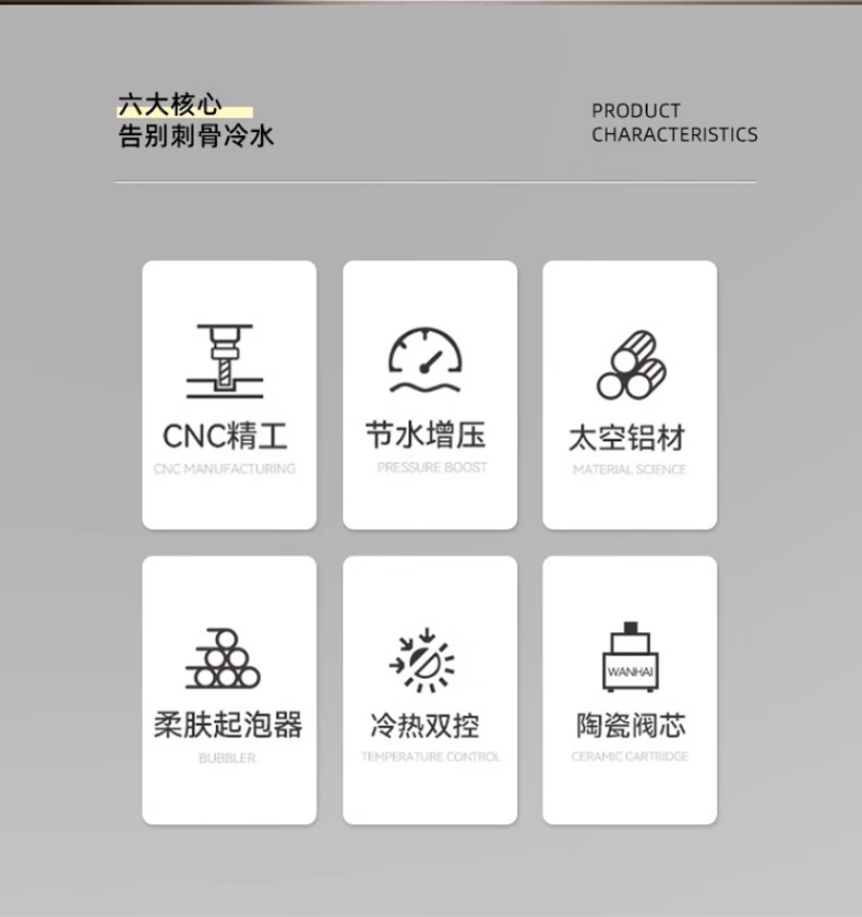 壹品印象家用面盆冷热二合一水龙头洗手盆卫生间万向机械臂浴室洗漱台龙头 太空银【两档调节+80cm冷热管】