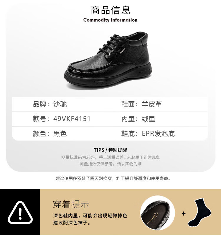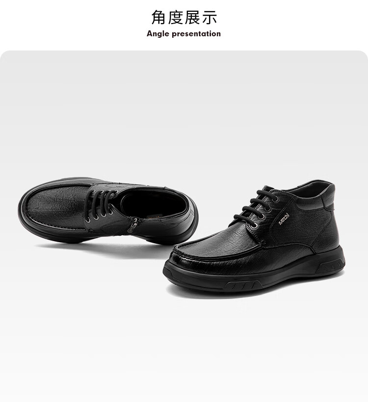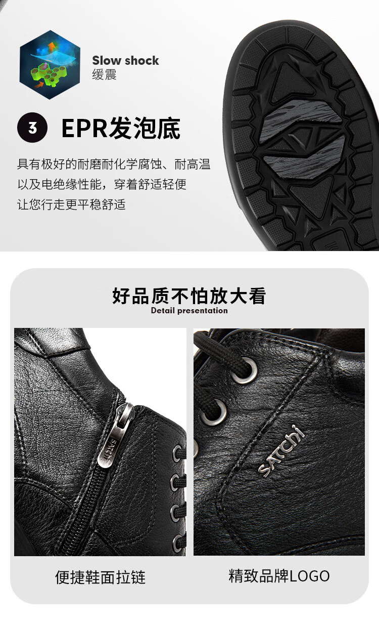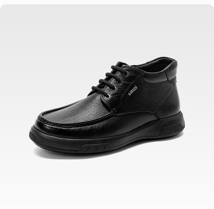 沙驰(SATCHI)男鞋【加绒】羊皮舒适休闲靴防寒保暖棉鞋通勤商务男靴枯树皮纹 黑色(49VKF4151) 41 欧码(选小一码)