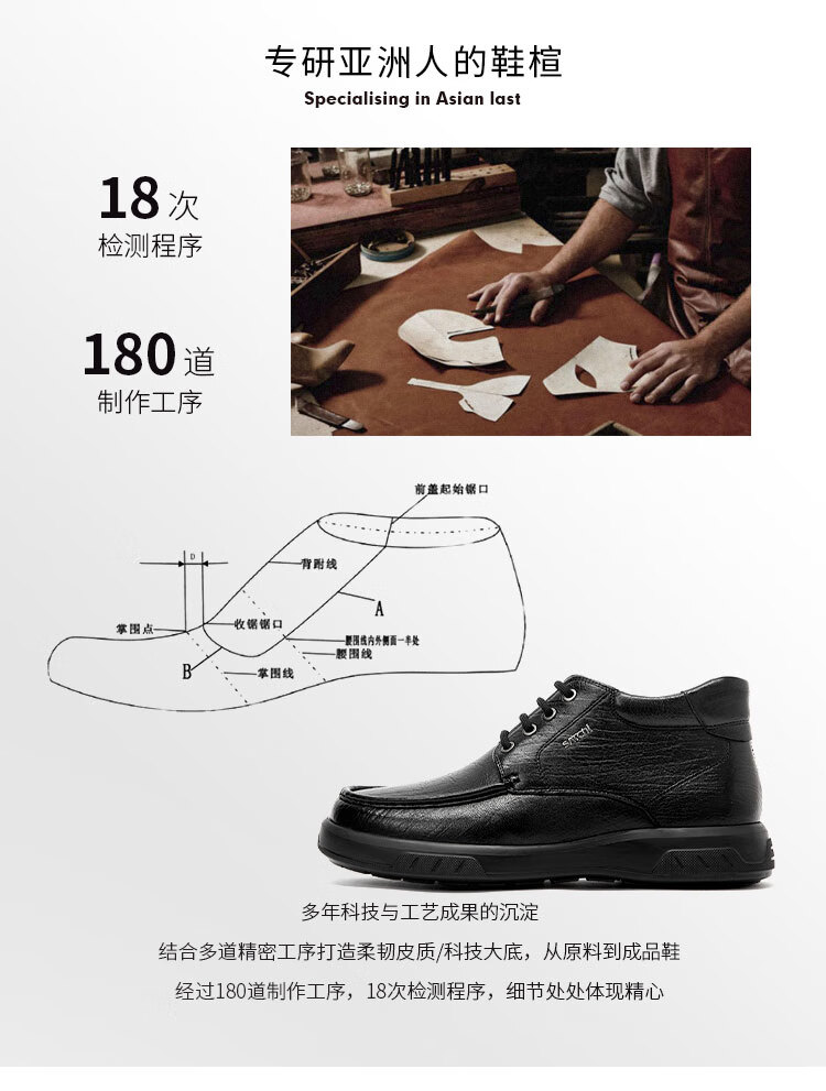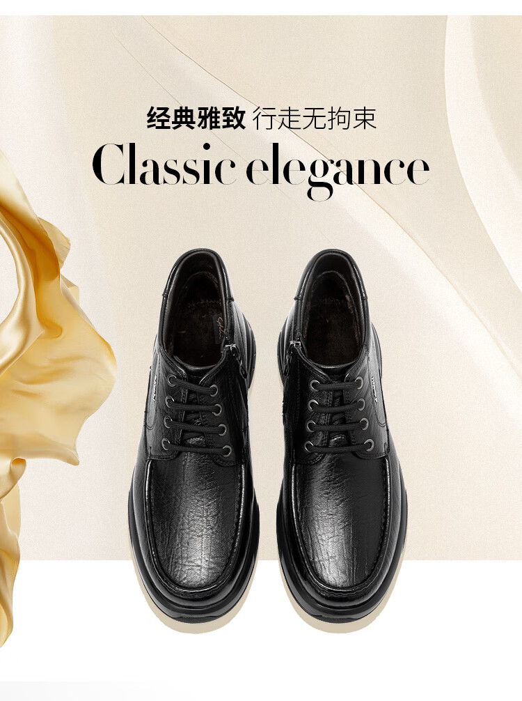 哈森(Harson)牛皮革男鞋秋冬运动皮鞋厚底商务休闲鞋公务通勤健步鞋2025年新款 黑色加绒(6148) 43