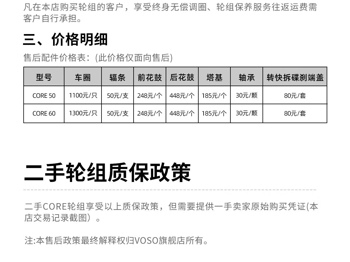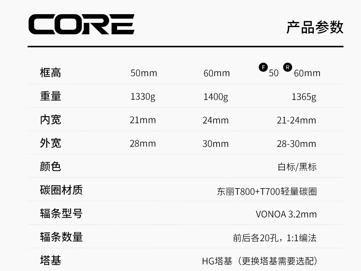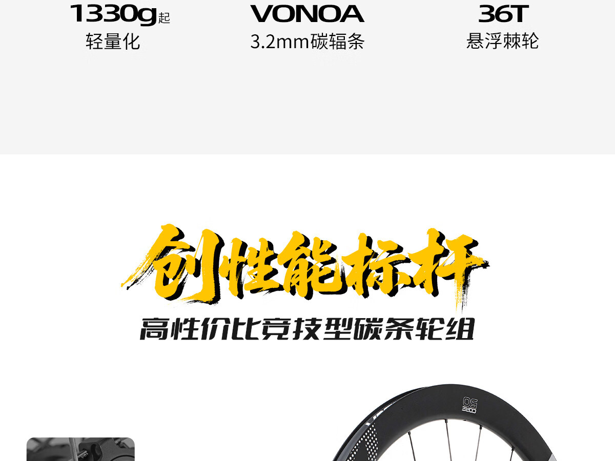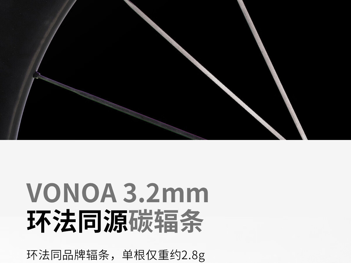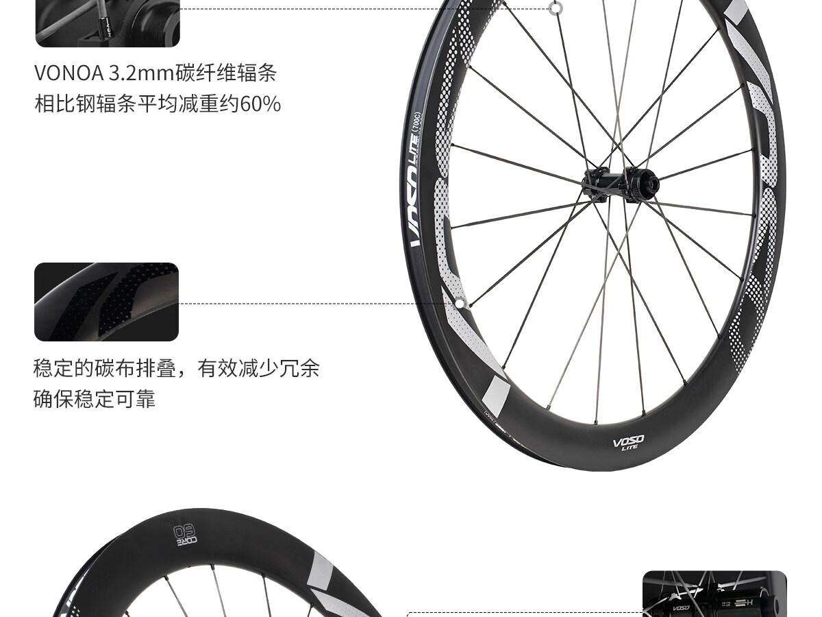 VOSO LITE CORE 碳纤维轮组公路自行车碳刀轮组VONOA3.2mm碳条 单前轮 50白标