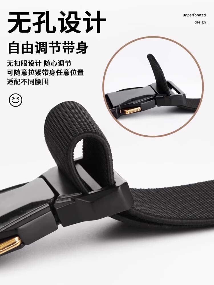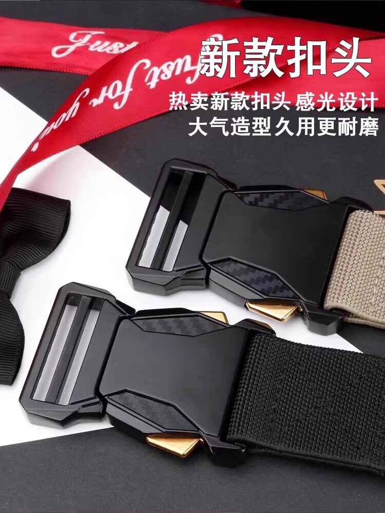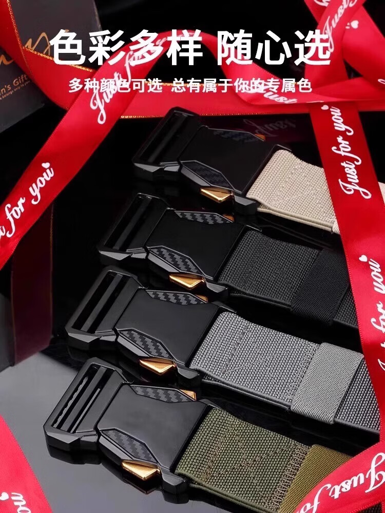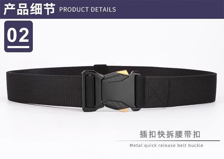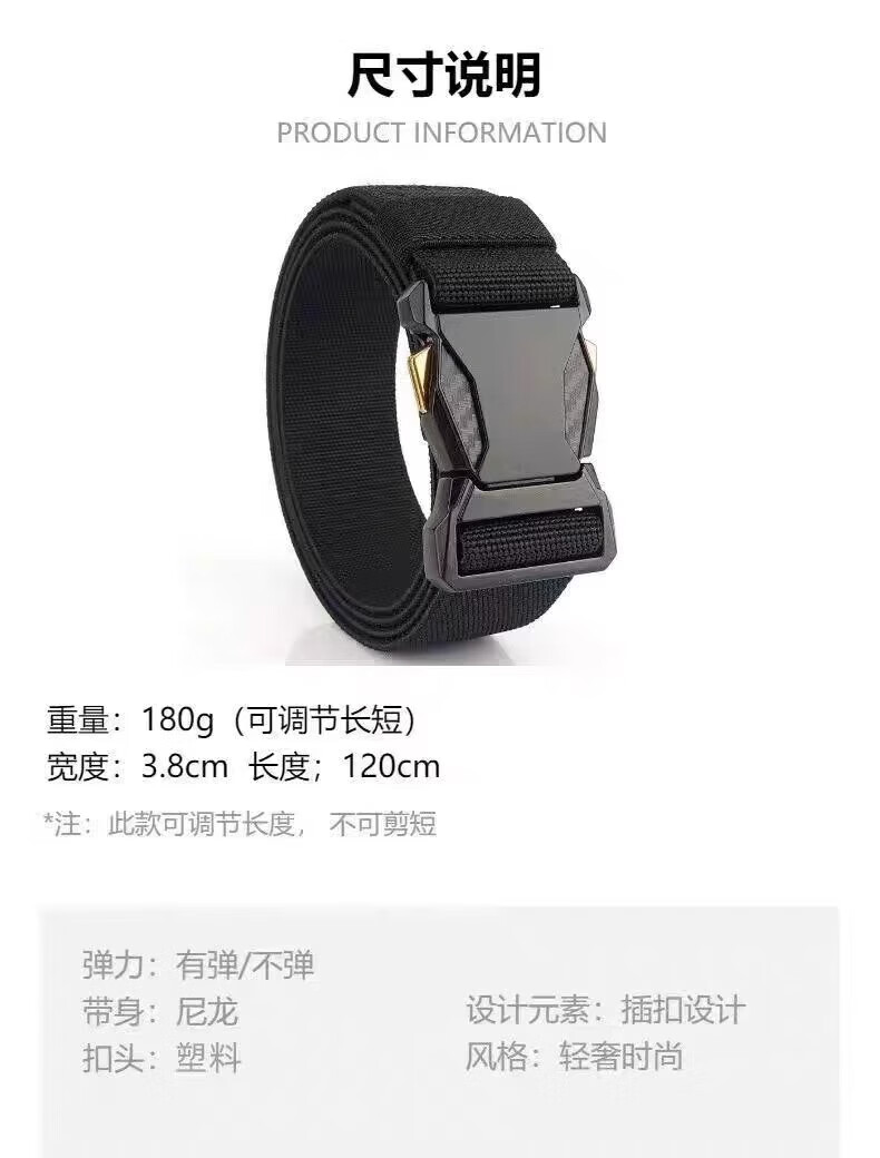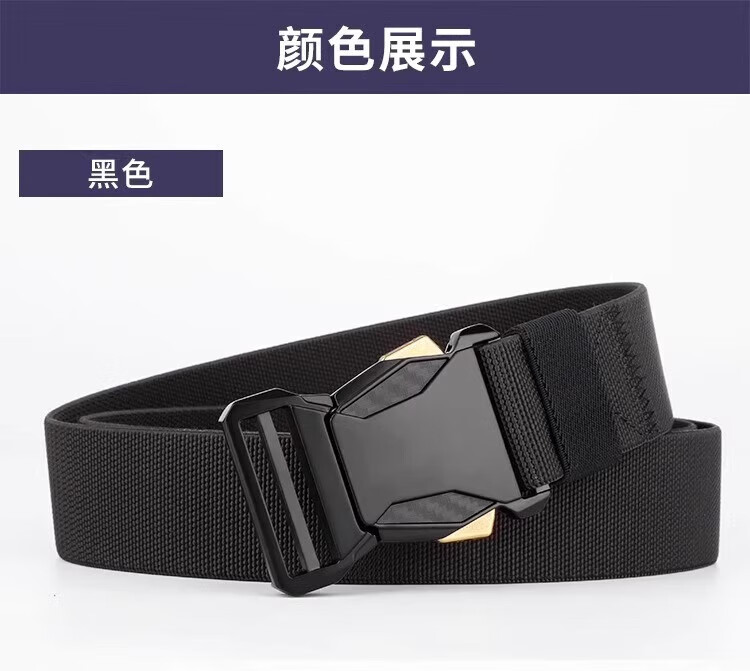 朋意男款男士战术插扣尼龙腰带快拆户外皮带工装帆布弹力休闲运动裤带 帆布裤腰带-黑色 无规格