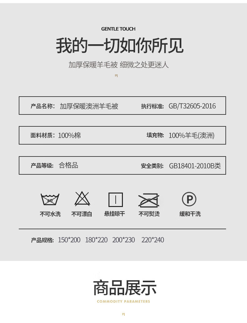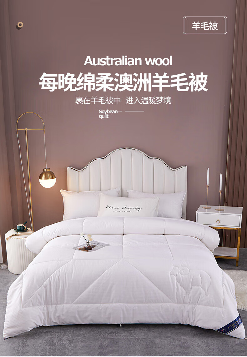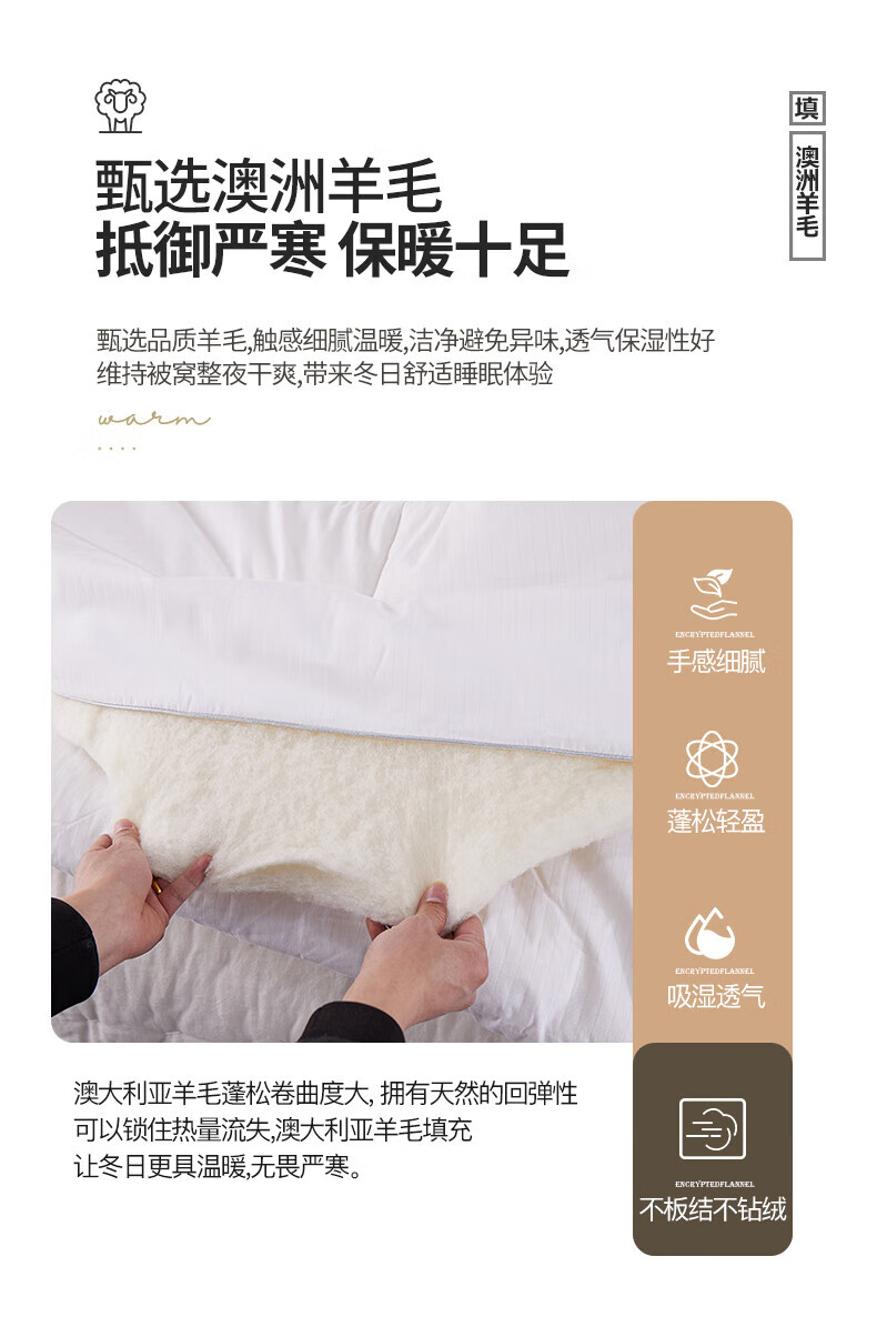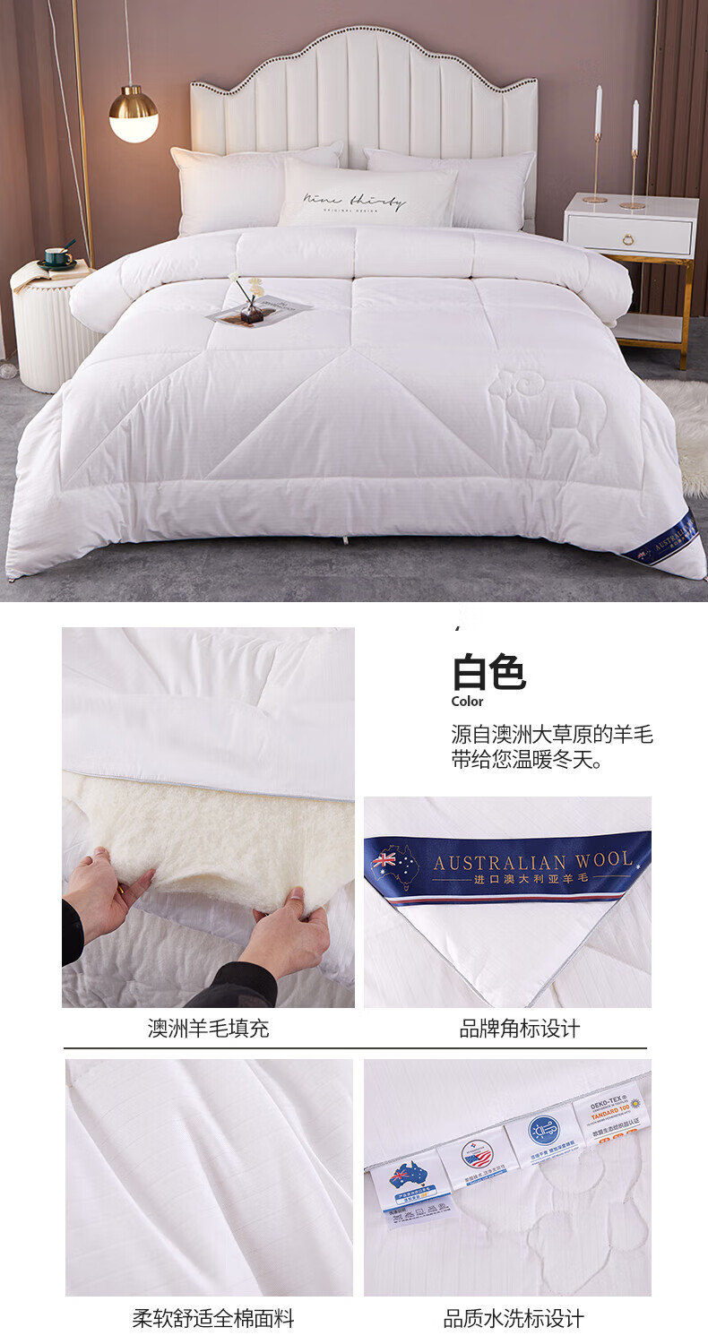 恒源祥澳洲羊毛被春秋被冬被芯加厚保暖羊毛单人被子10斤厚棉被褥 白色 150x200cm【4斤夏被】
