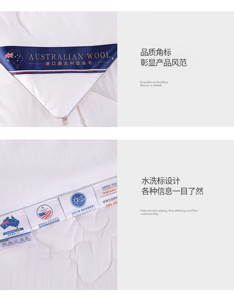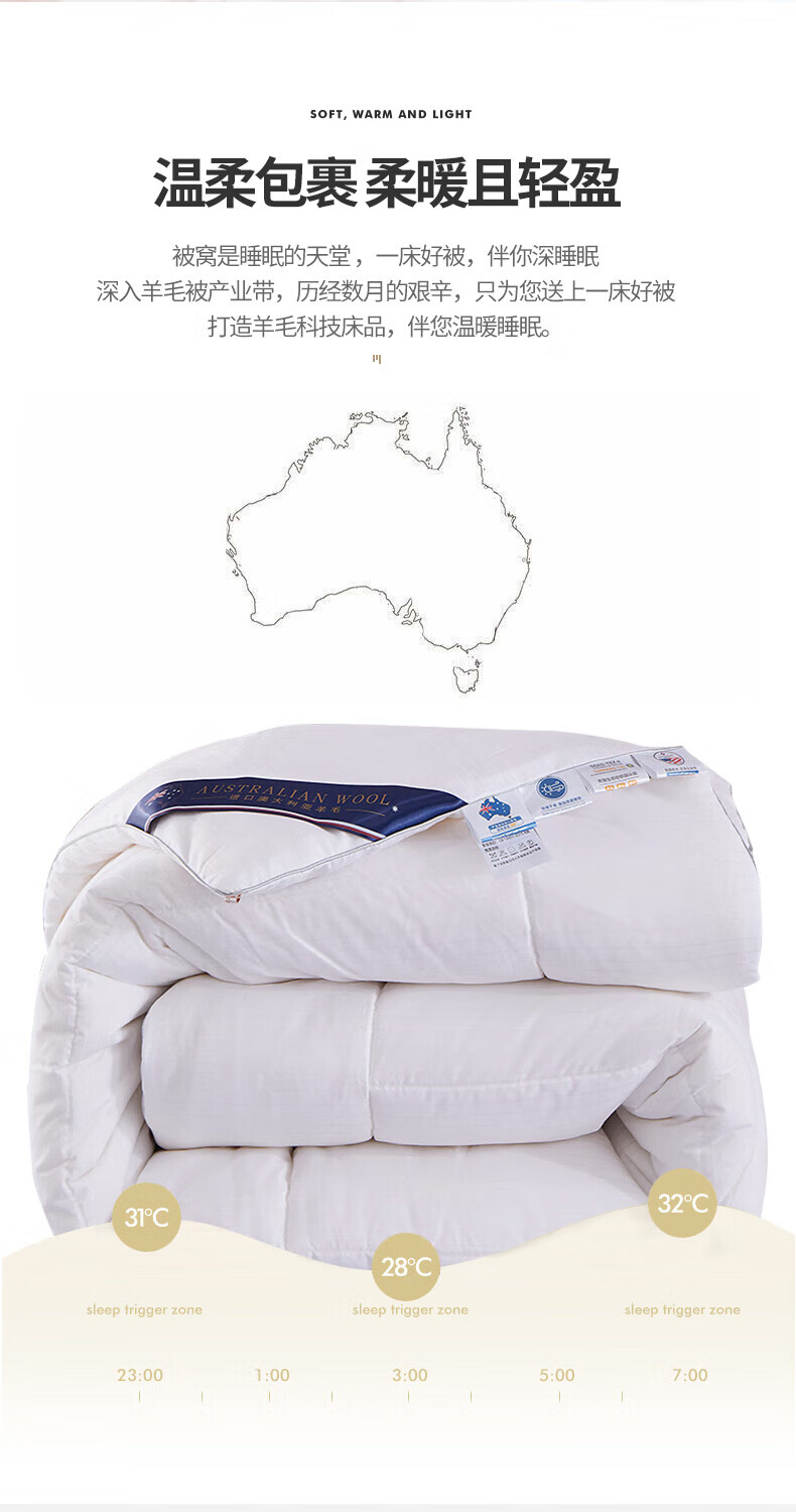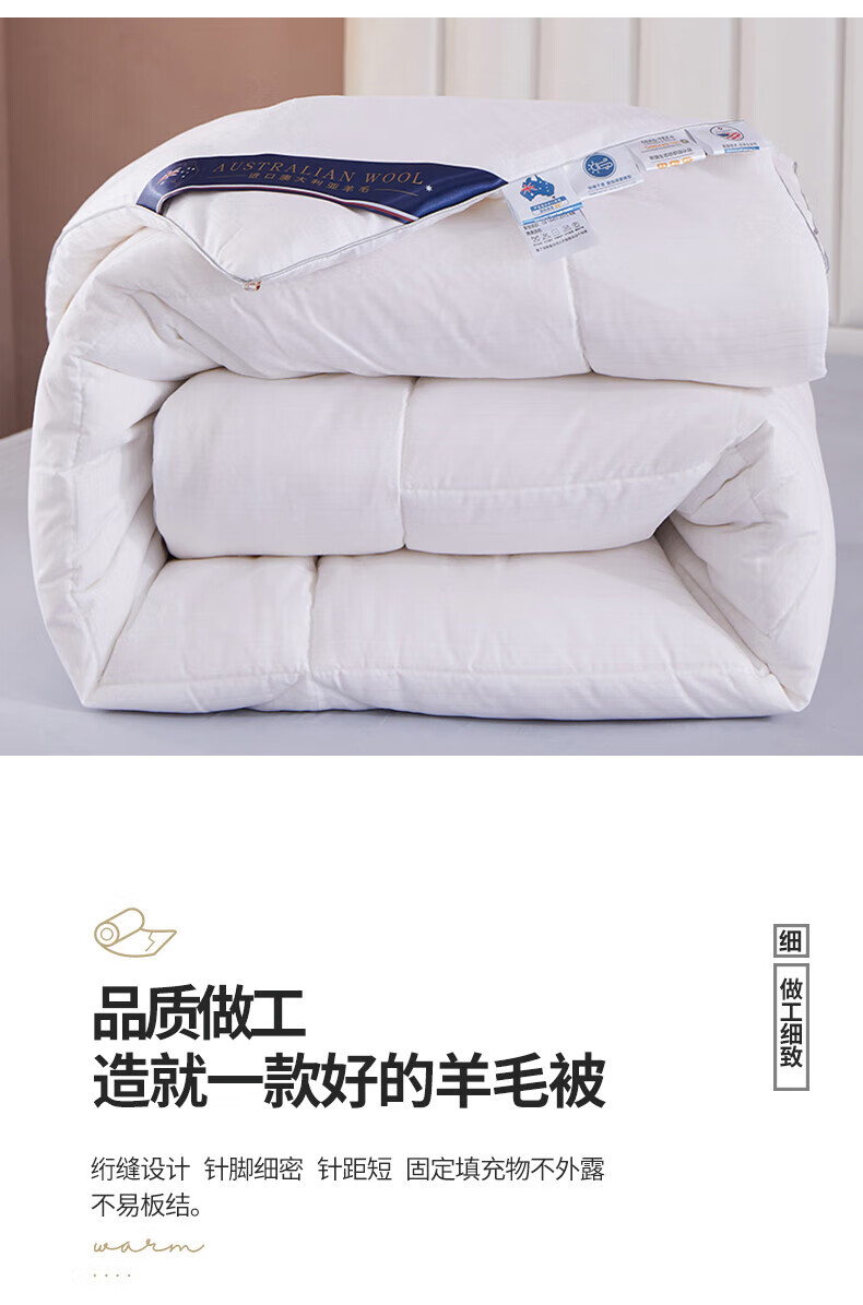 恒源祥澳洲进口羊毛被春秋被子母被子8斤冬被芯加厚冬季保暖棉被空调被 白色 150X200cm【4斤夏被】