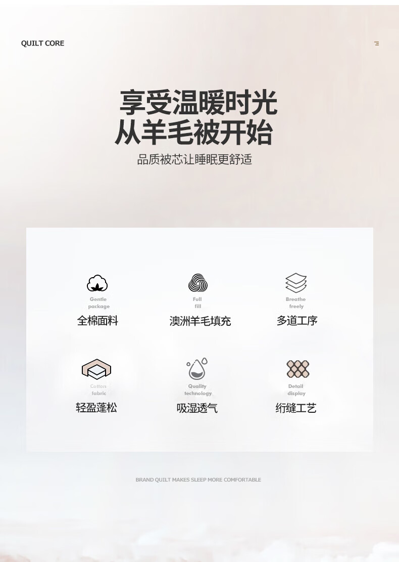恒源祥高端A类进口澳洲绵羊毛被子10斤厚冬被冬被8斤加厚被芯春秋被保暖 白色 150*200cm【3.6斤春秋被】