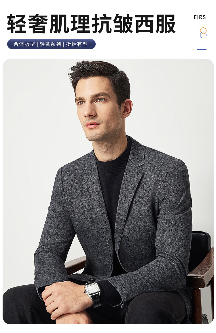 杉杉西装外套男春秋季新款商务休闲单西平驳领抗皱易打理西服上衣男装 灰色 M 170/88A(46)