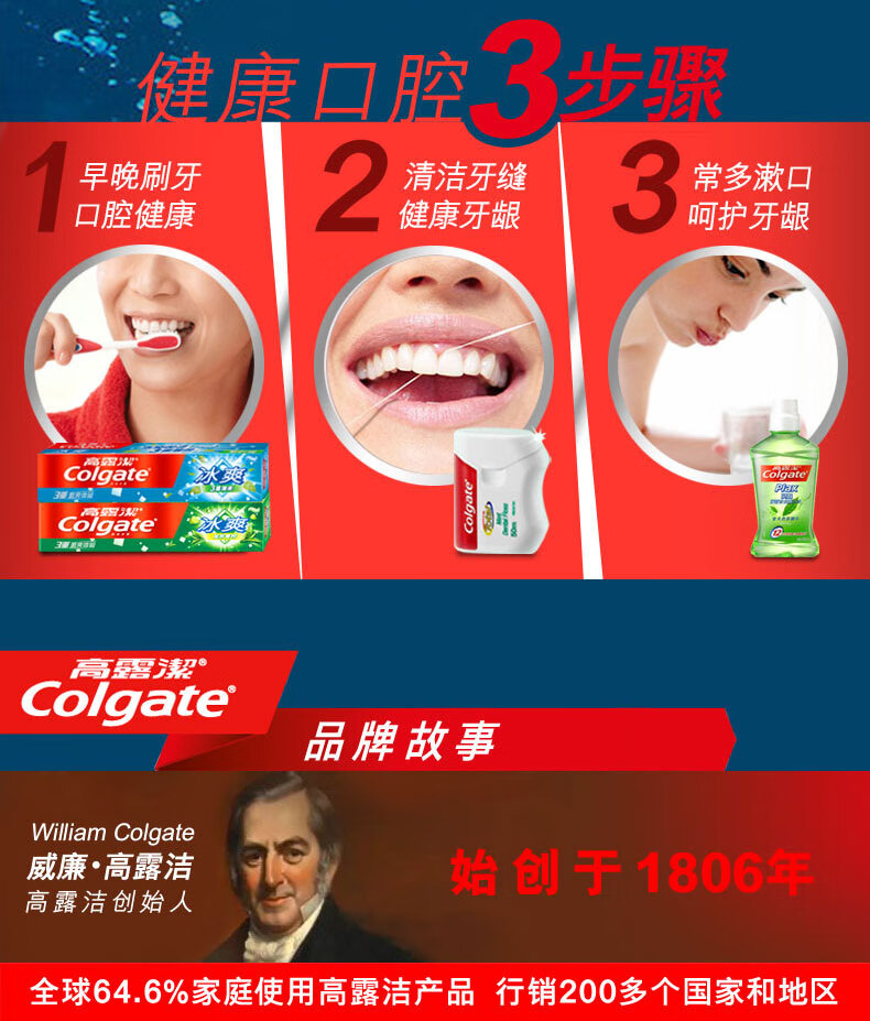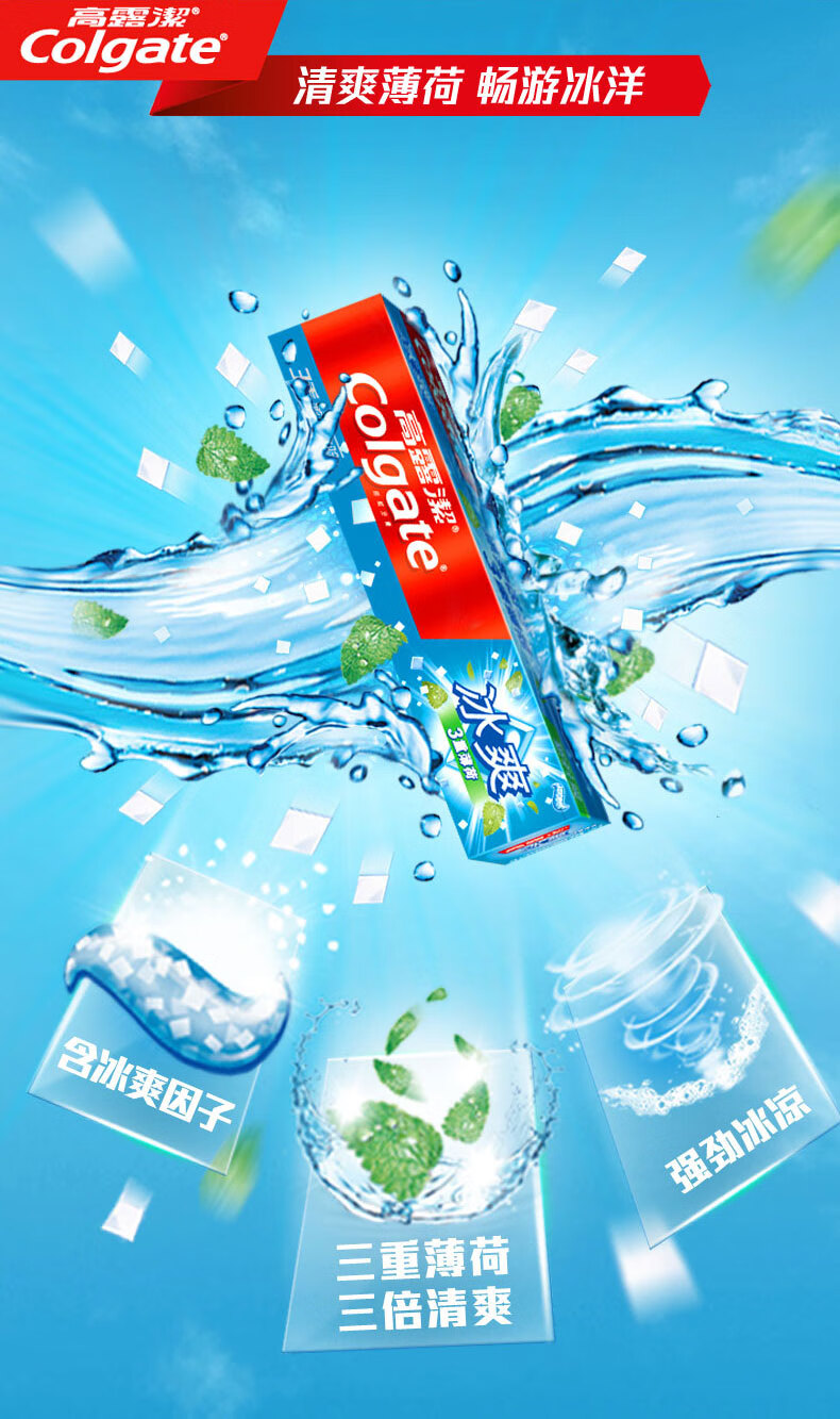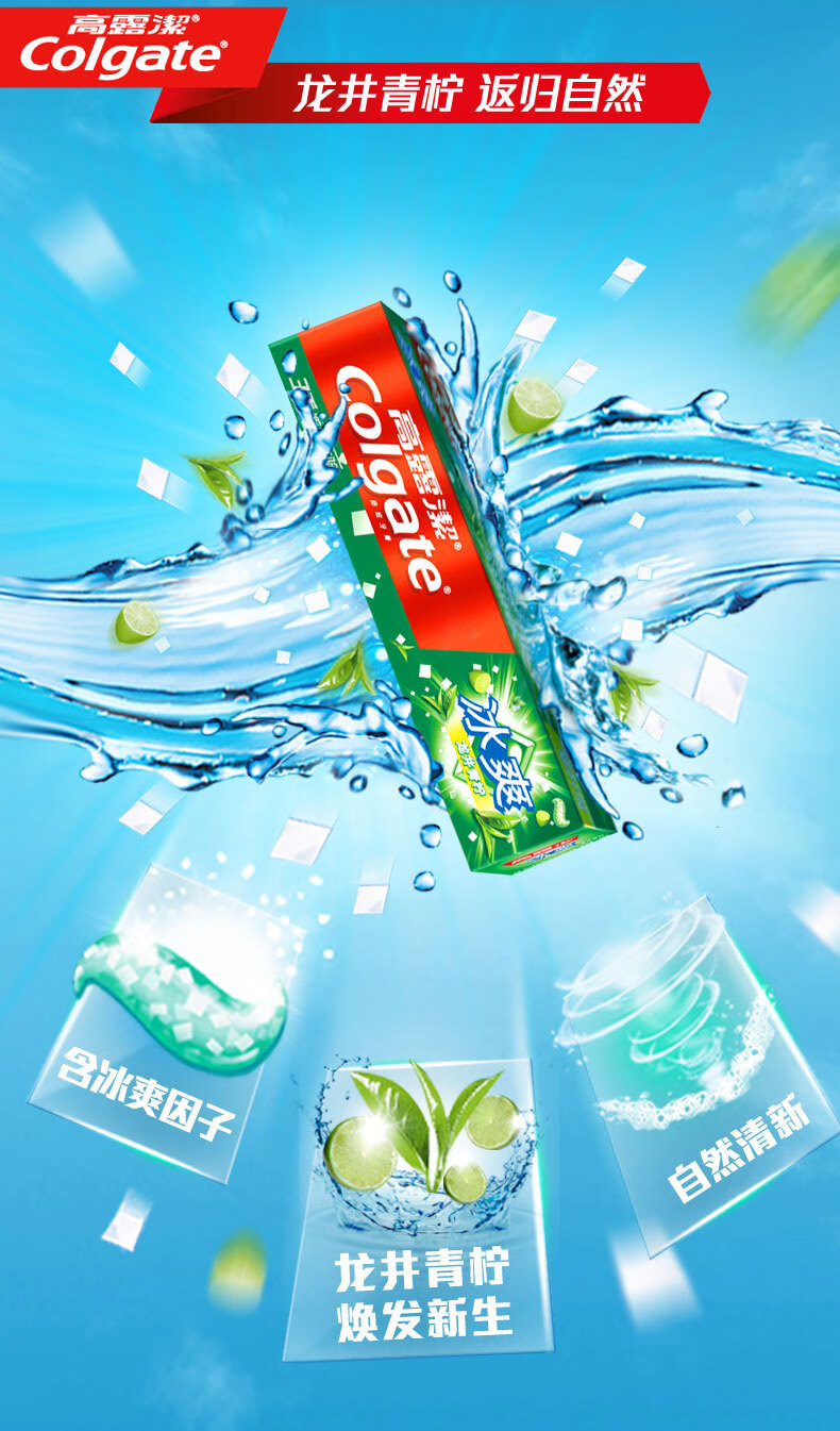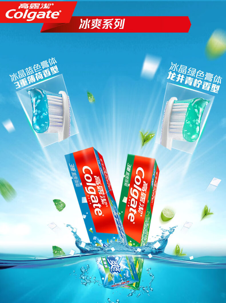 高露洁含氟薄荷/龙井冰爽因子清新口气口腔护理冰爽牙膏组合家庭装 防蛀健白2支+薄荷+龙井
