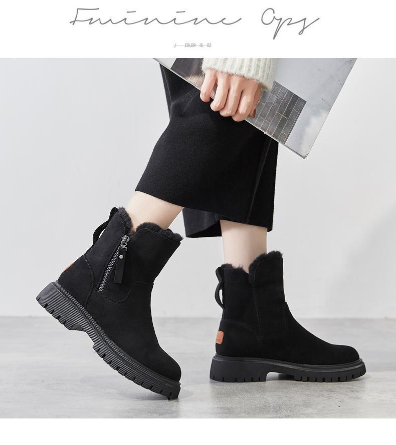 【精选】雪地靴女2023年冬季新款加绒女鞋保暖靴加厚棉鞋东北女靴 黑色 35