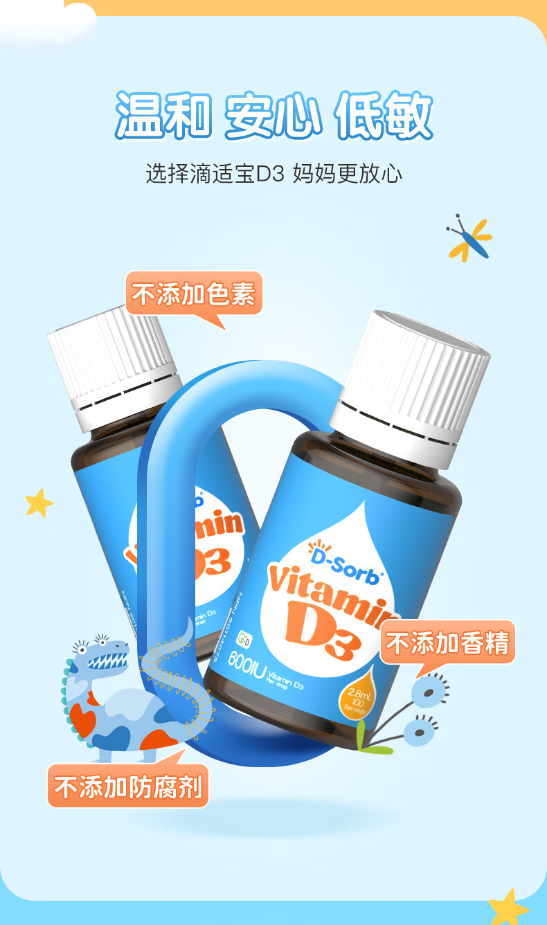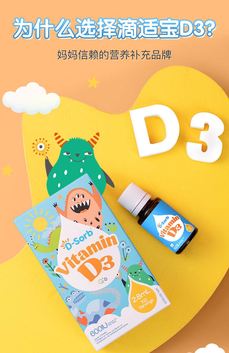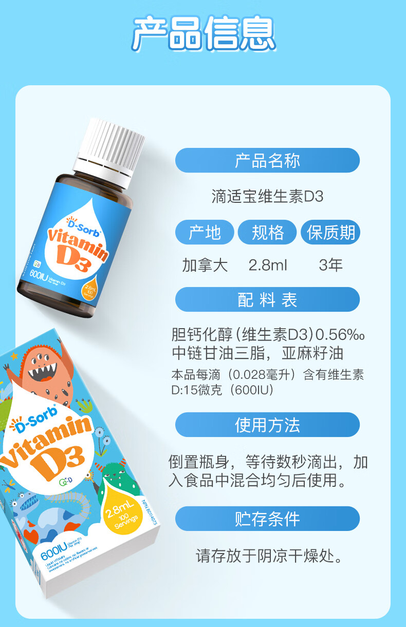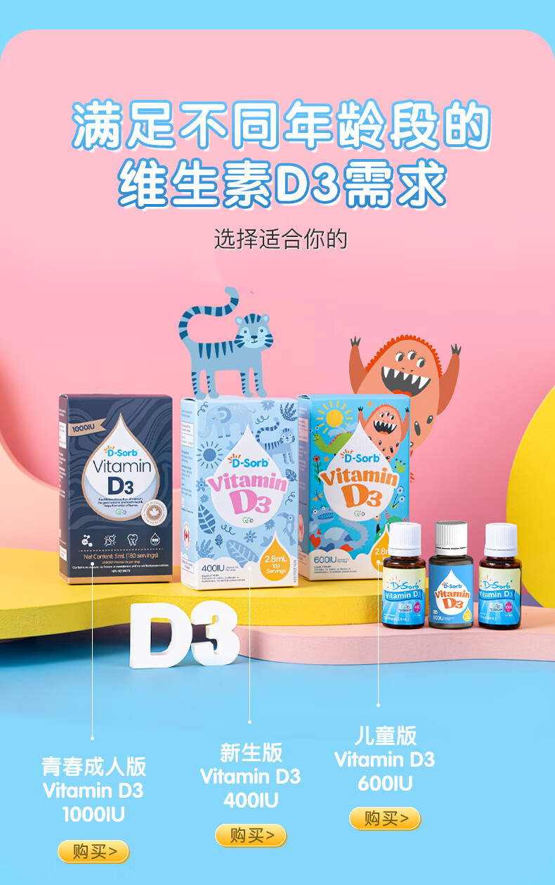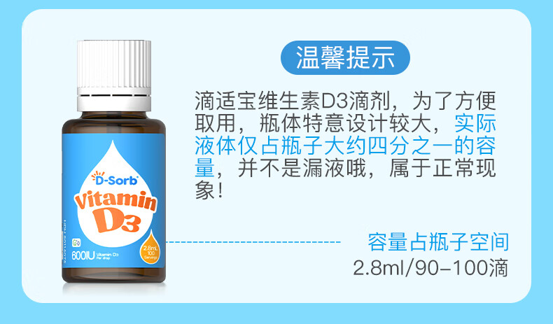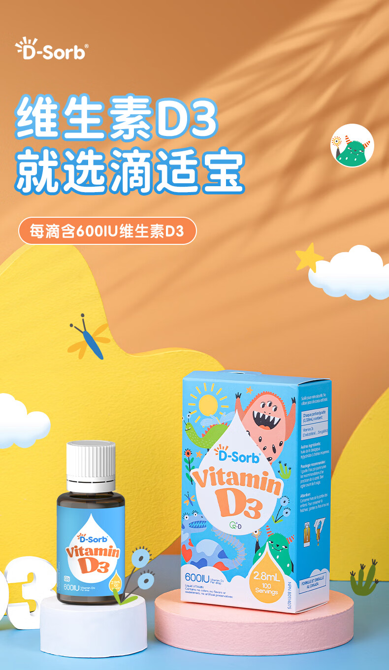 D-Sorb维生素D3滴剂600IU儿童1-11岁vd3滴剂2.8ML加拿大原装进口 600IU(1岁-11岁) 2.8ml*1瓶