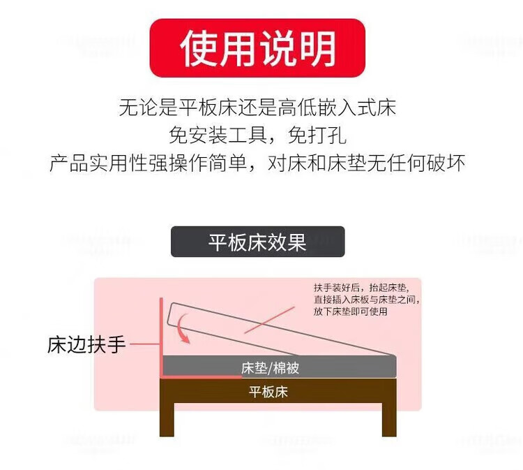 床边扶手老人起床辅助起身神器家用老年人床上助起栏杆床头助力架 无包 扇形扶手