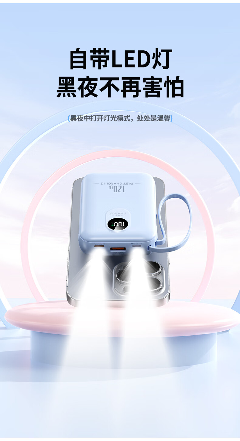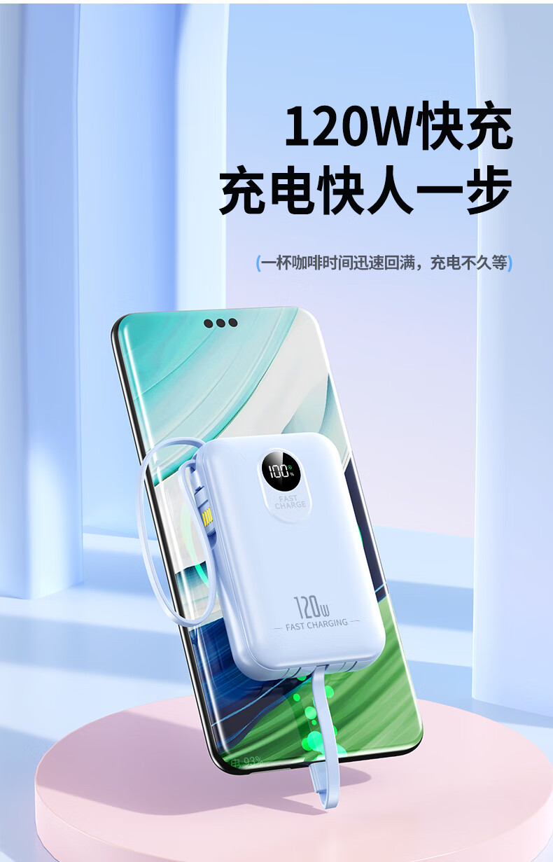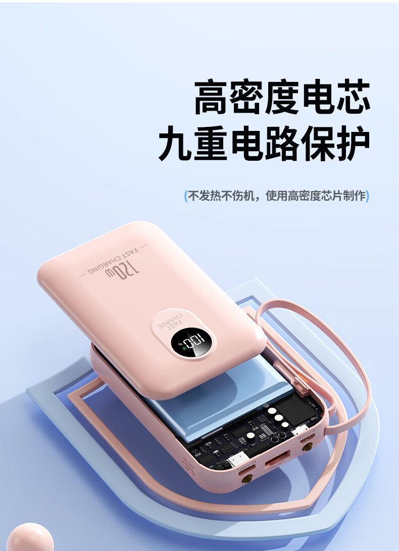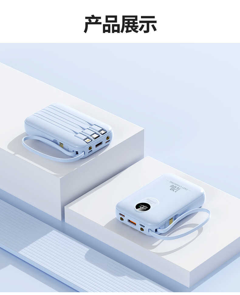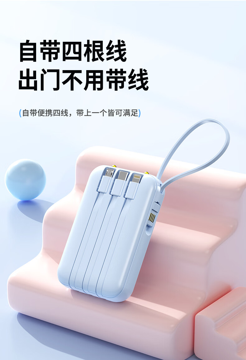 科希帝有3C认证【新国标丨可上飞机】超级快充充电宝自带线超薄小巧便携移动电源适用苹果安卓20000毫安 蓝色【低配版+3c认证】国产电芯