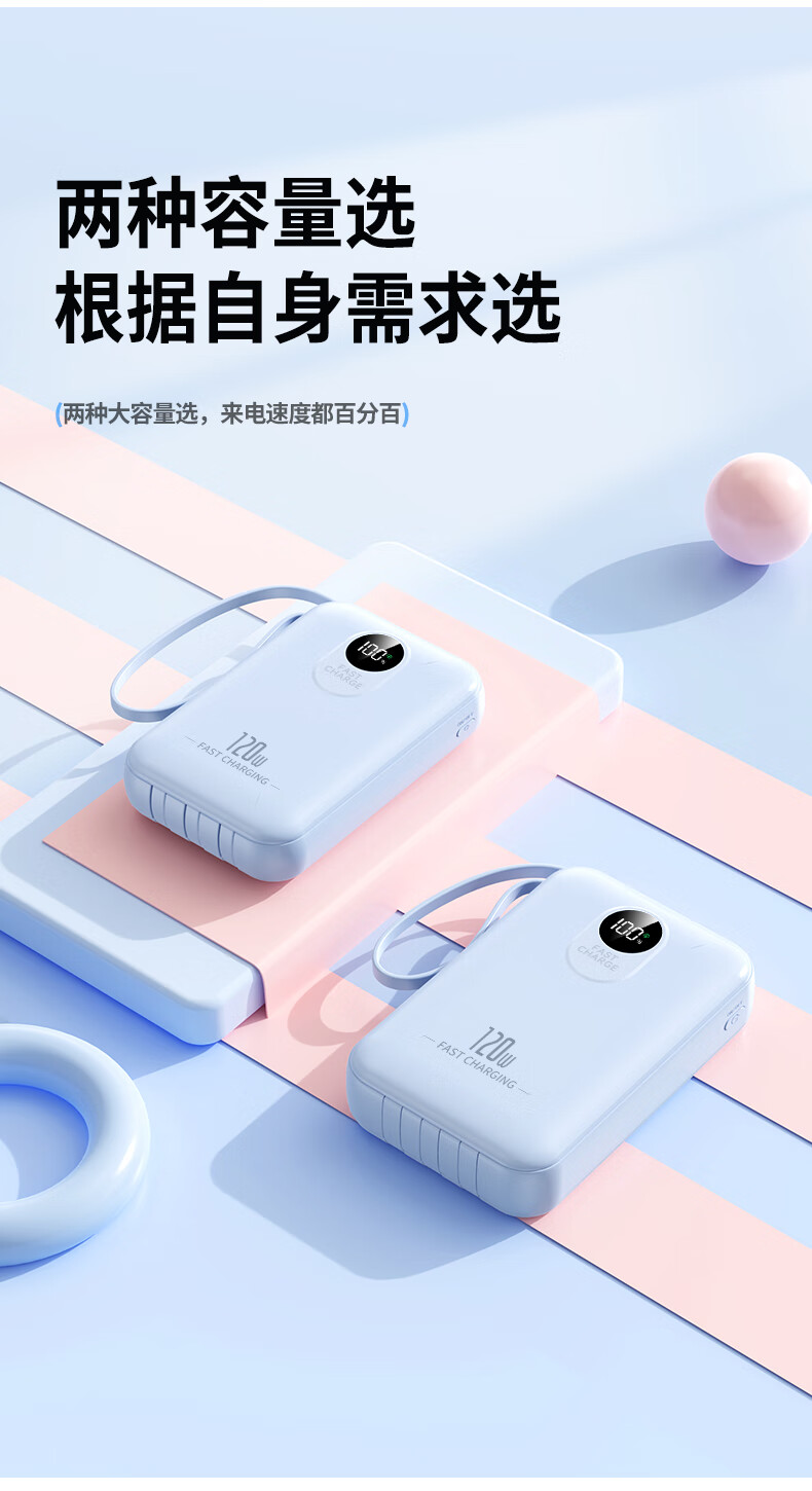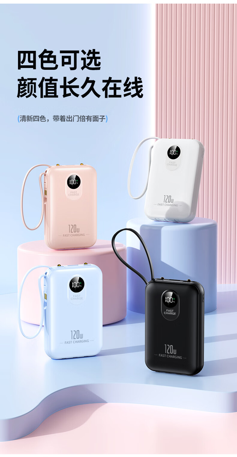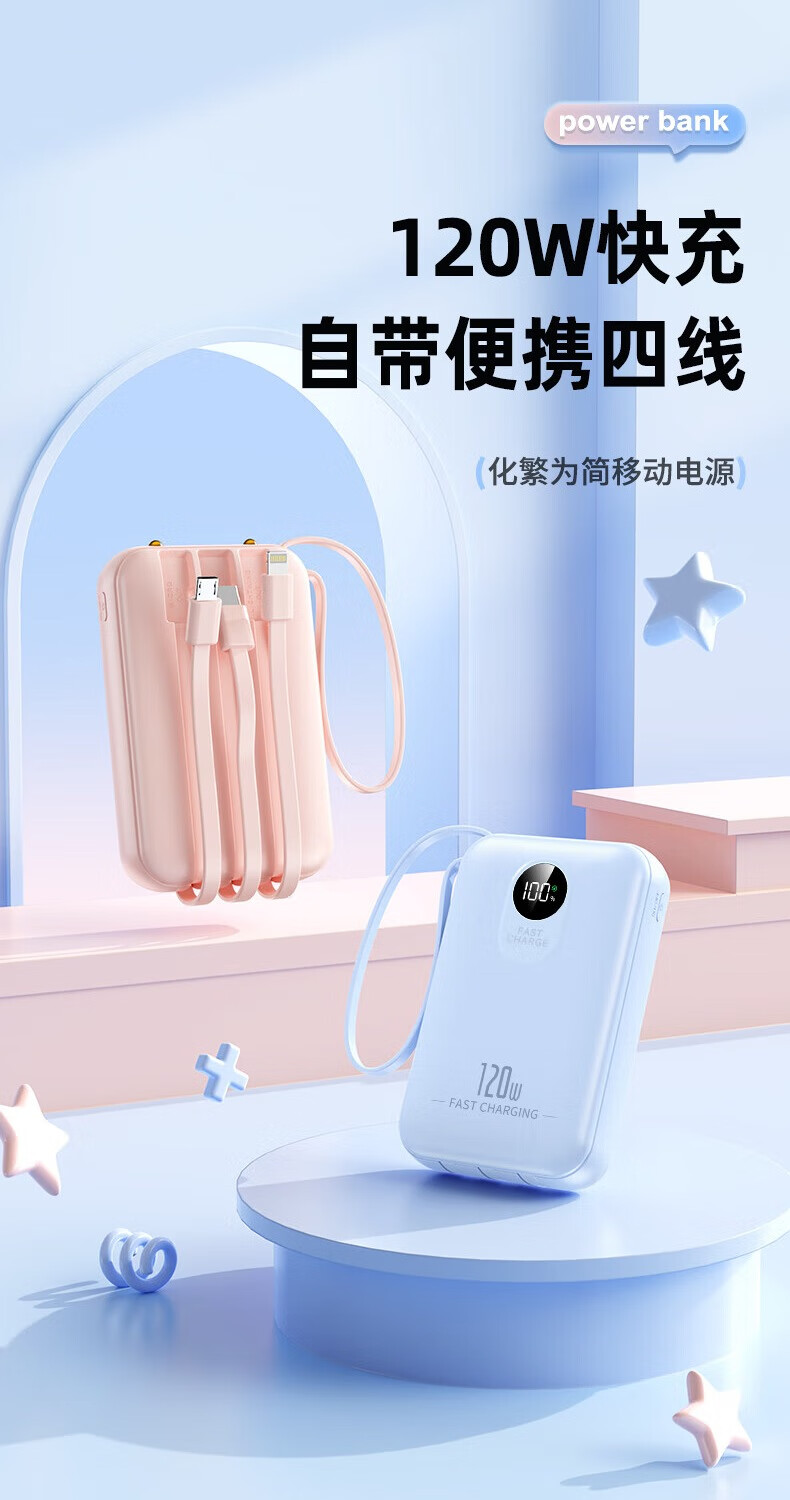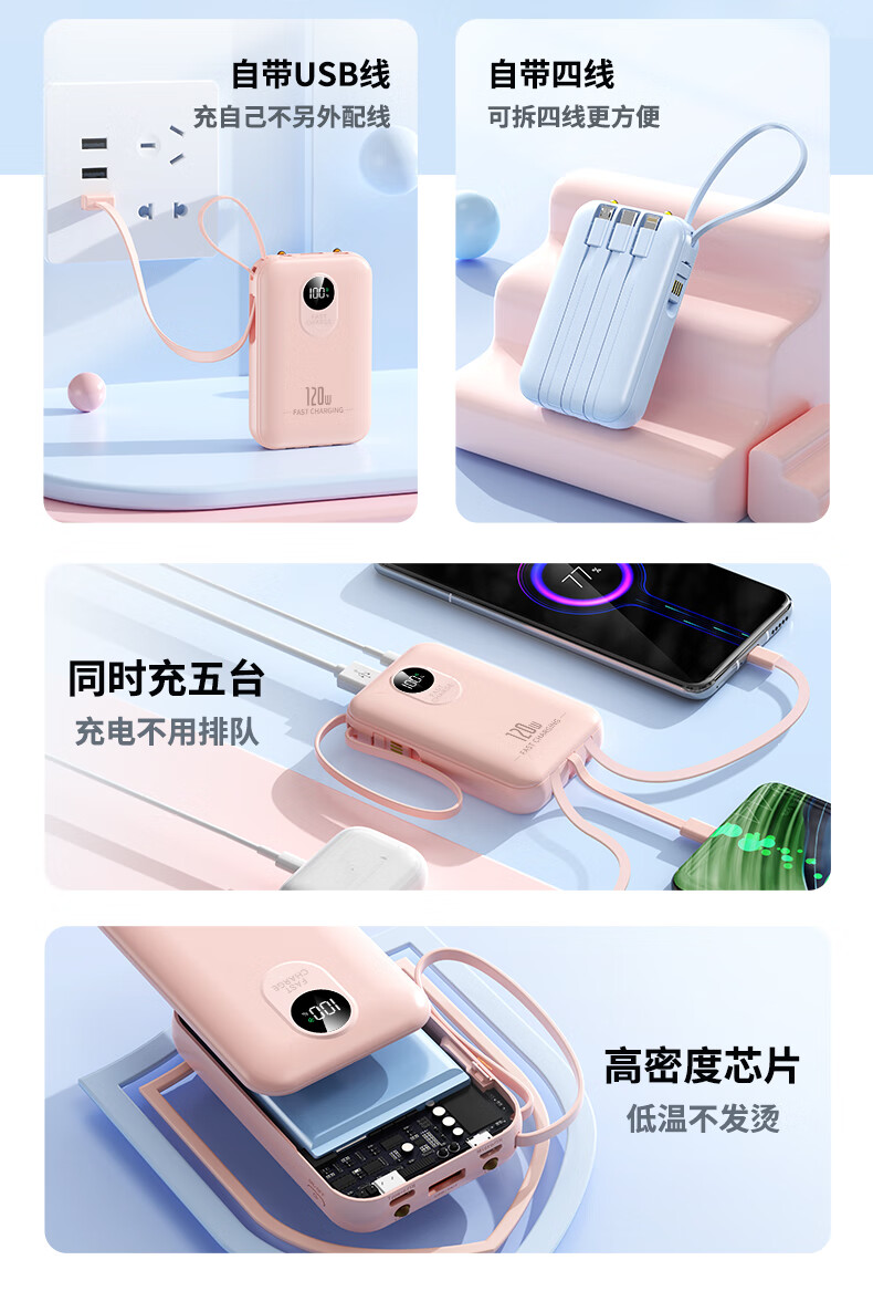 科希帝有3C认证【新国标丨可上飞机】超级快充充电宝自带线超薄小巧便携移动电源适用苹果安卓20000毫安 蓝色【低配版+3c认证】国产电芯