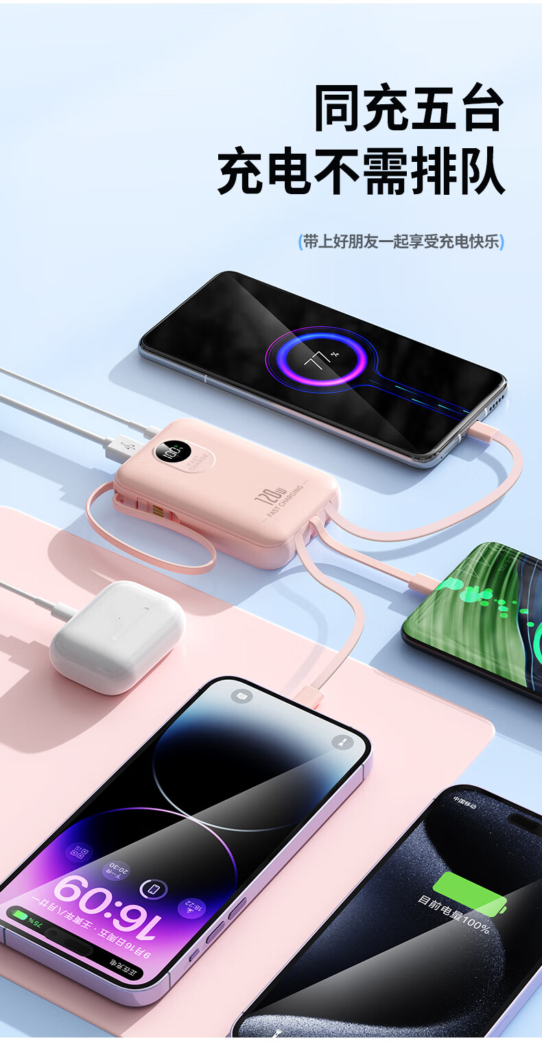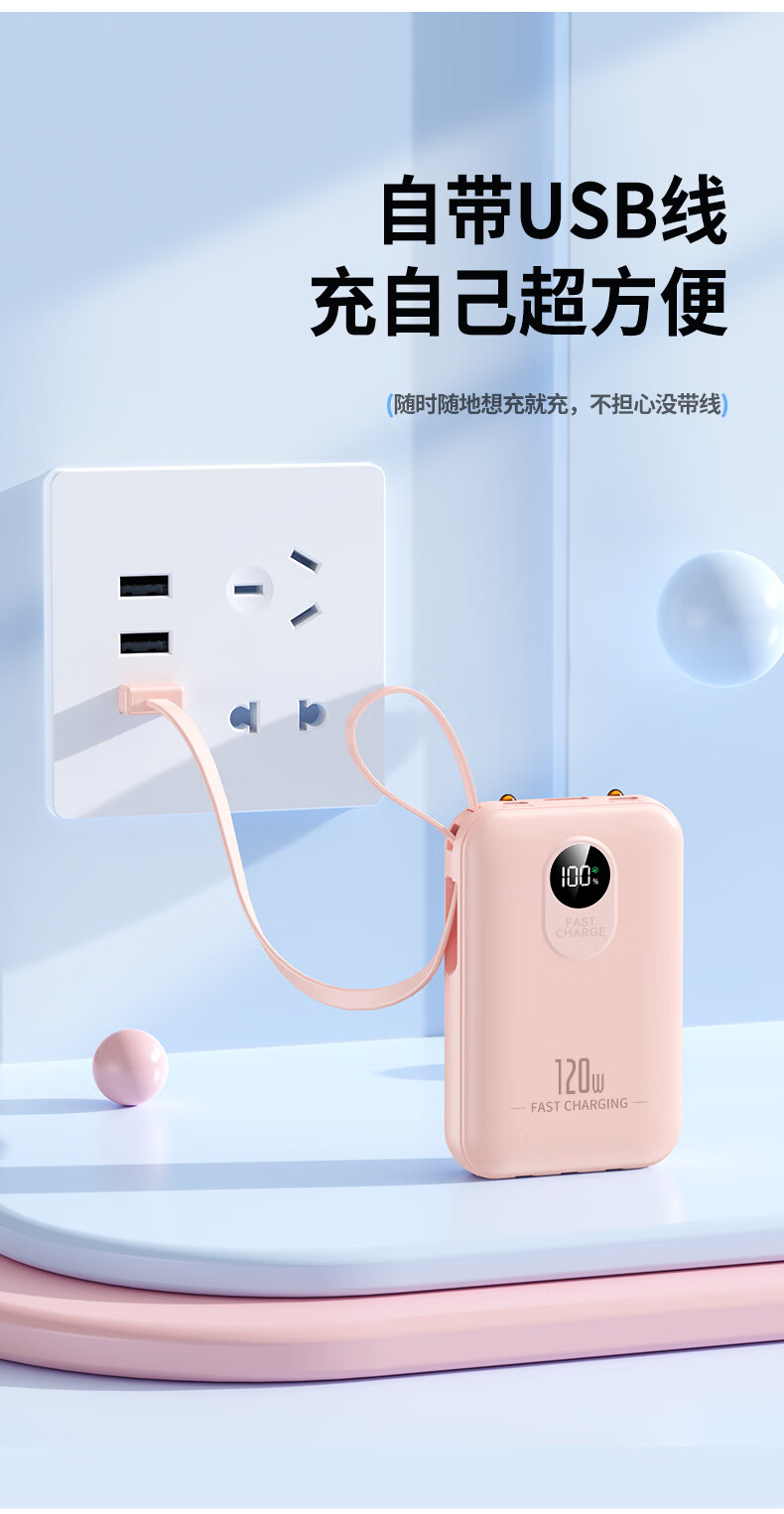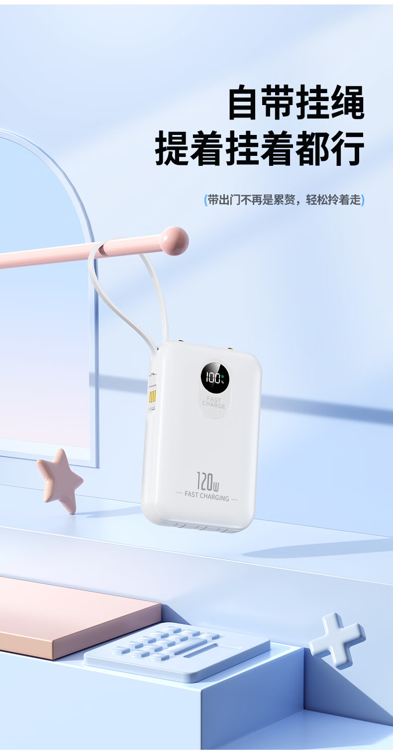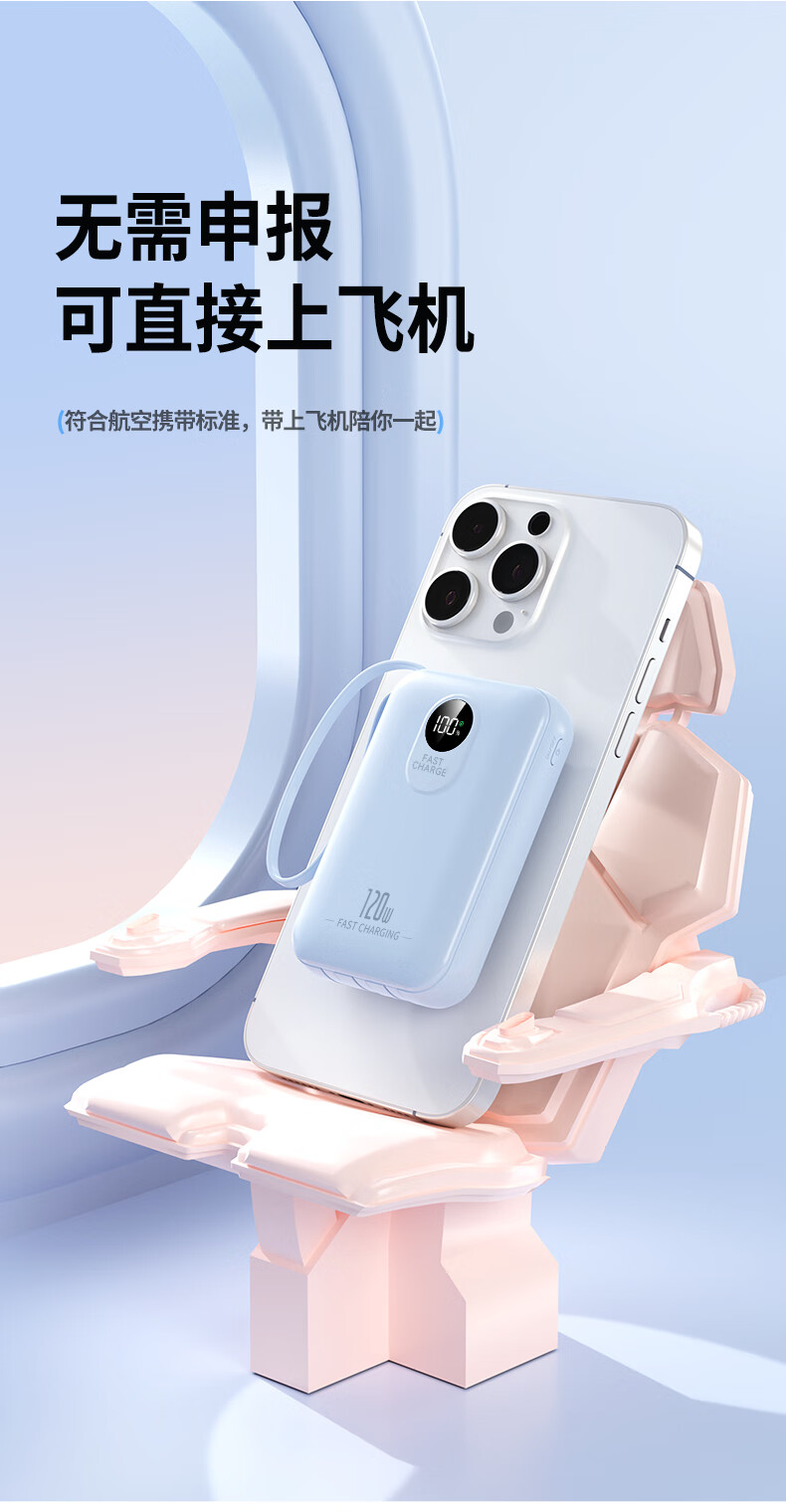 小米(MI)【3C认证】自带线充电宝 20000 67W 可上飞机/火车 可充手机平板笔记本耳机 iPhone安卓可用 浅蓝色