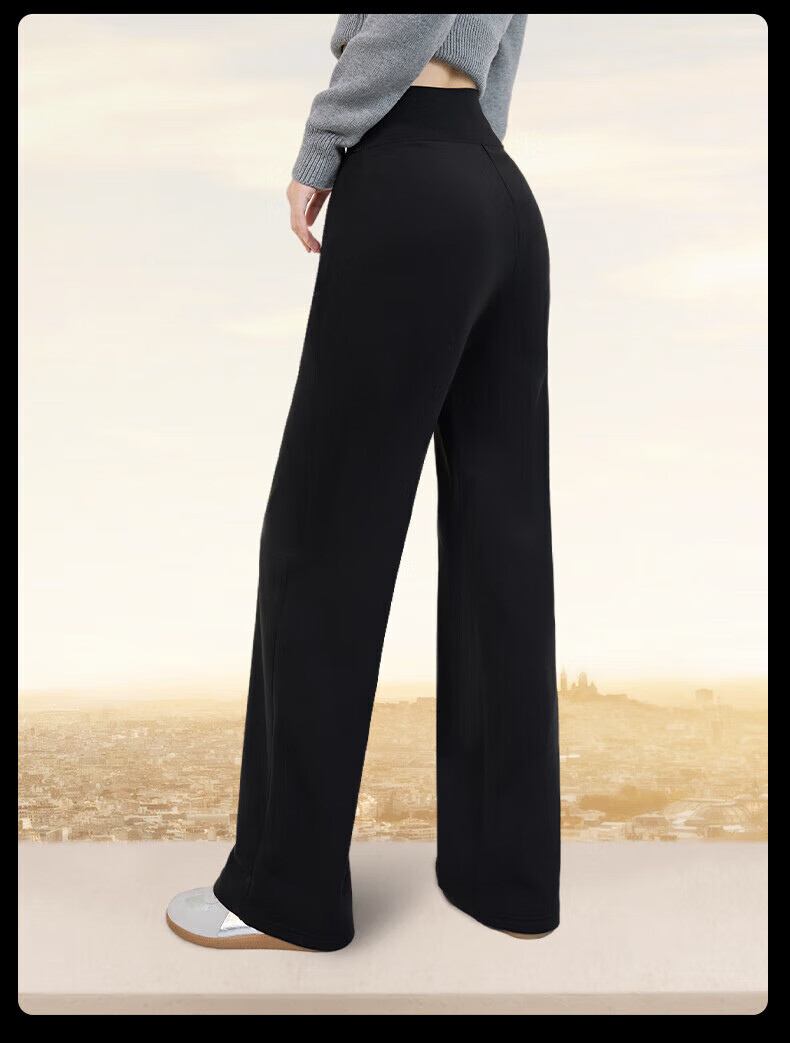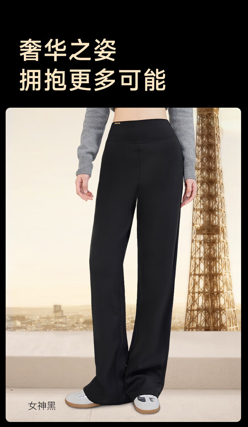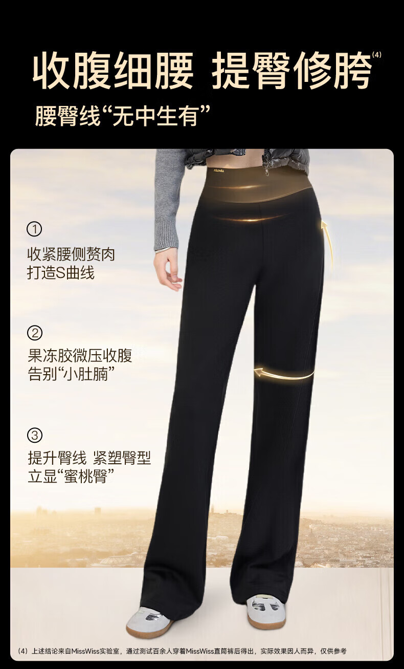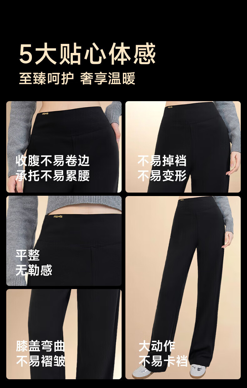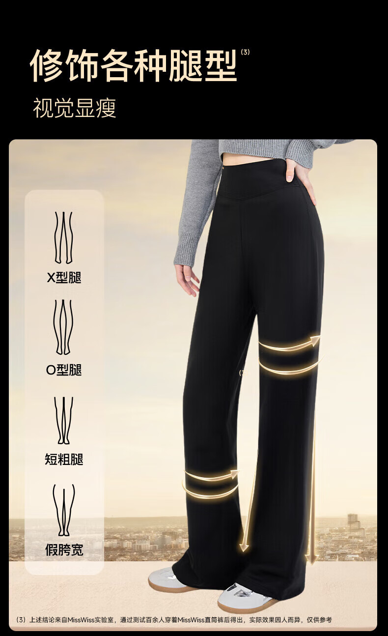 MissWiss收腹直筒裤子女秋冬款加绒长裤百搭显瘦小个子保暖休闲裤 女神黑【小个子版】加绒款 M