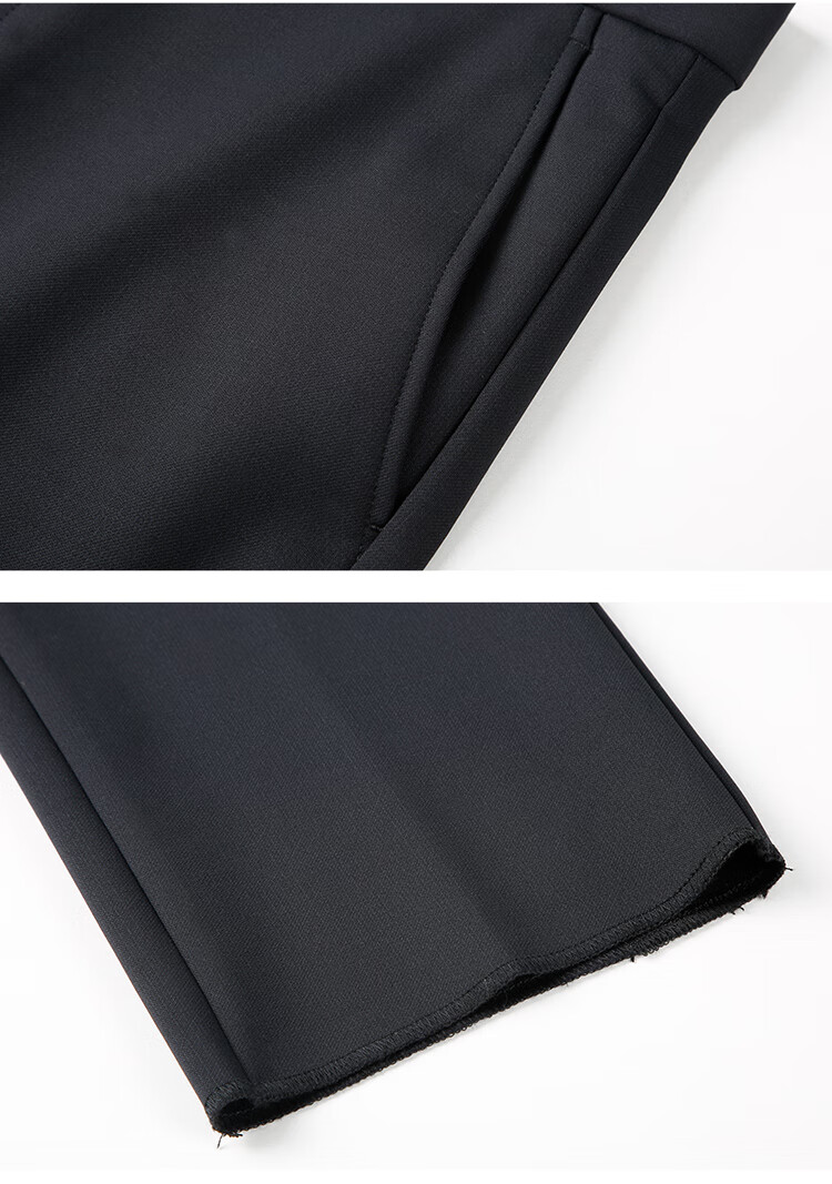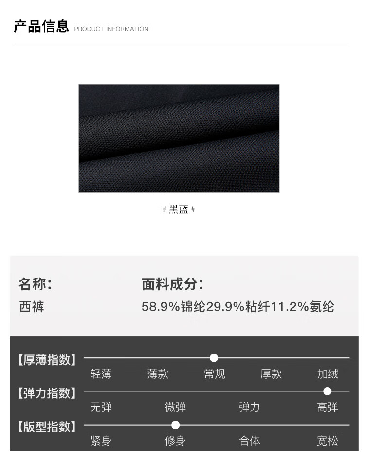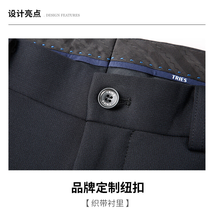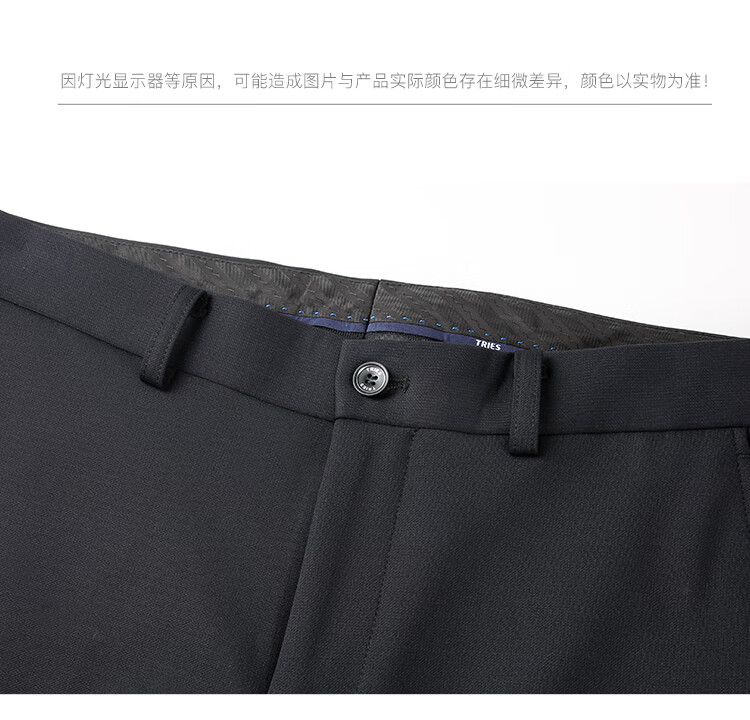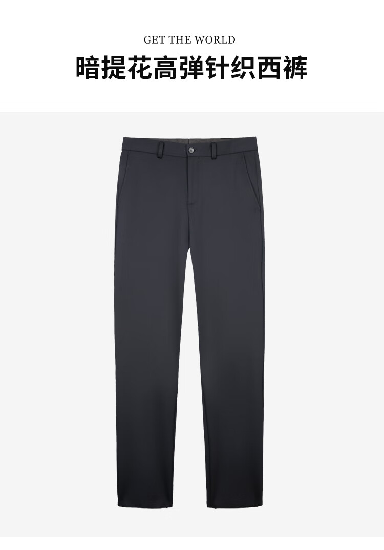 才子(TRIES)男士西裤暗提花高弹针织西裤垂顺修身直筒商务休闲裤西装裤 黑蓝色 33 84cm