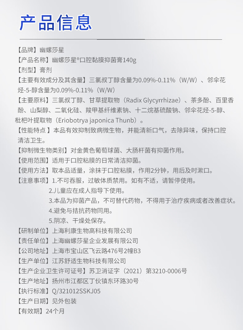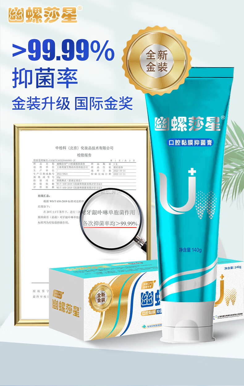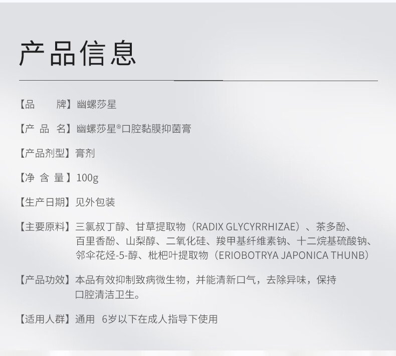 幽螺莎星口腔抑菌膏去牙渍洁白清新口气幽门螺旋去烟渍臭减轻口气牙齿膏 口腔抑菌膏140g*1