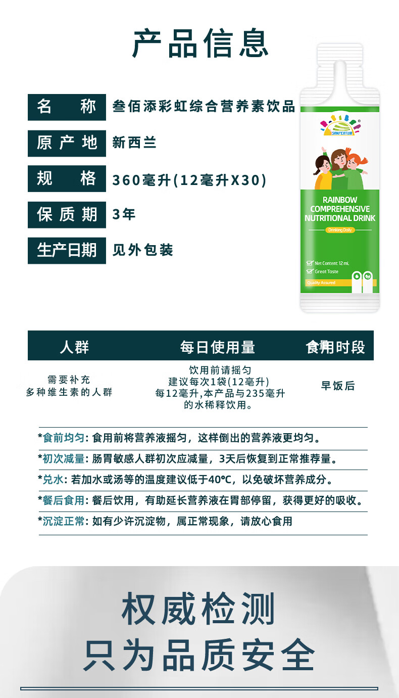 叁佰添彩虹综合营养素饮品维生素C B族锌 12毫升*30包 新西兰进口 1盒(12ml*30条)
