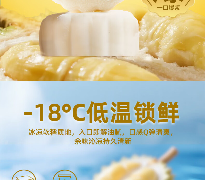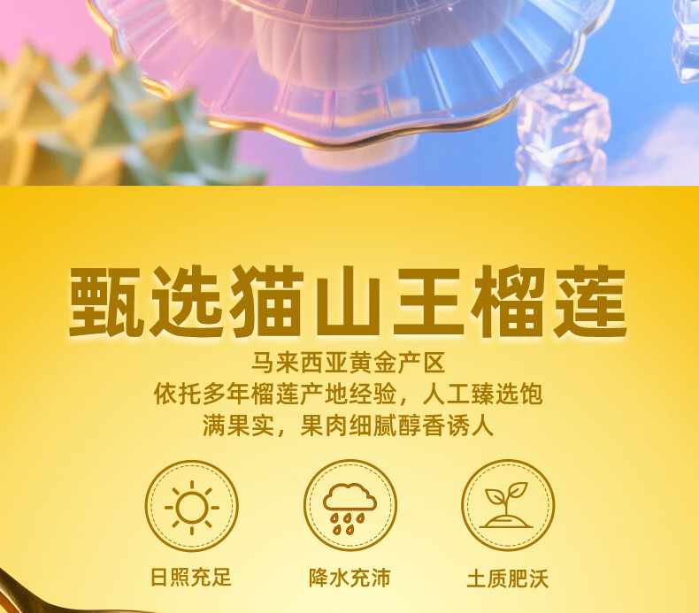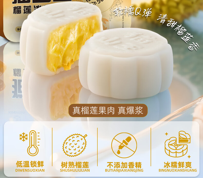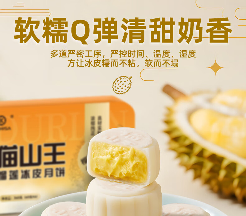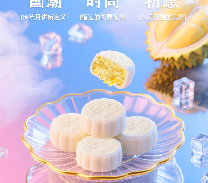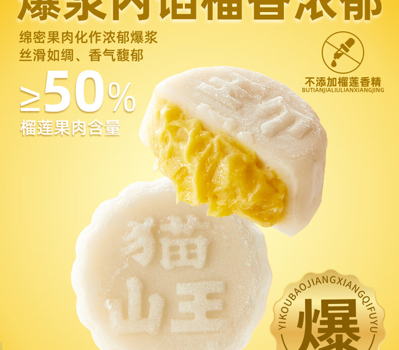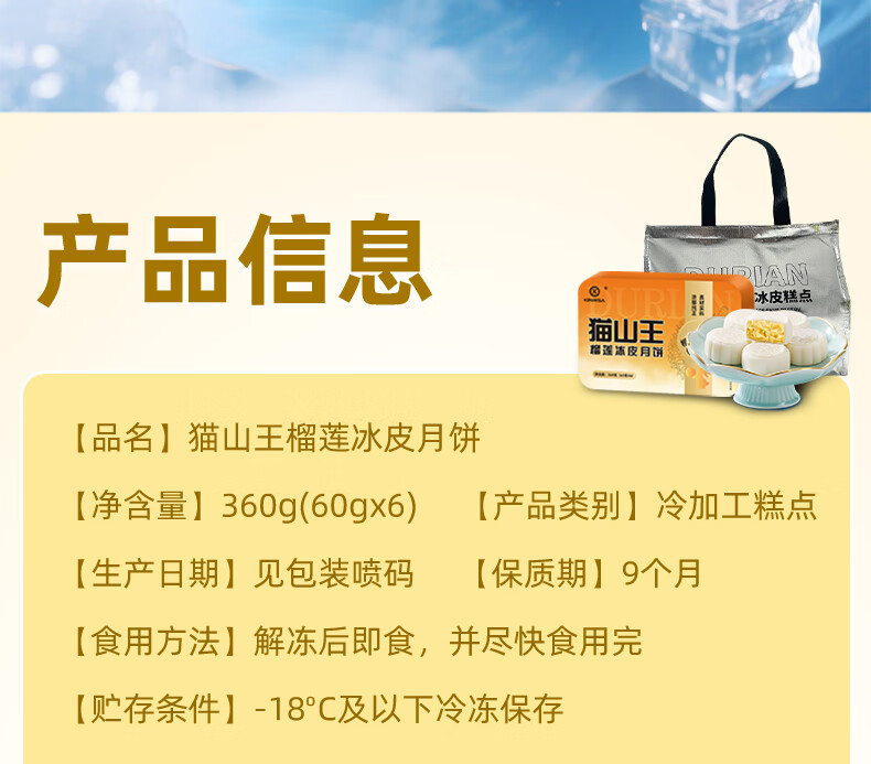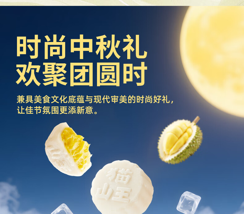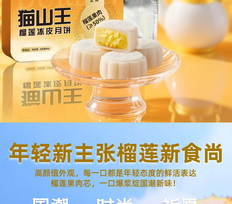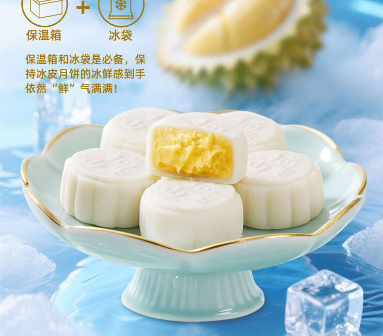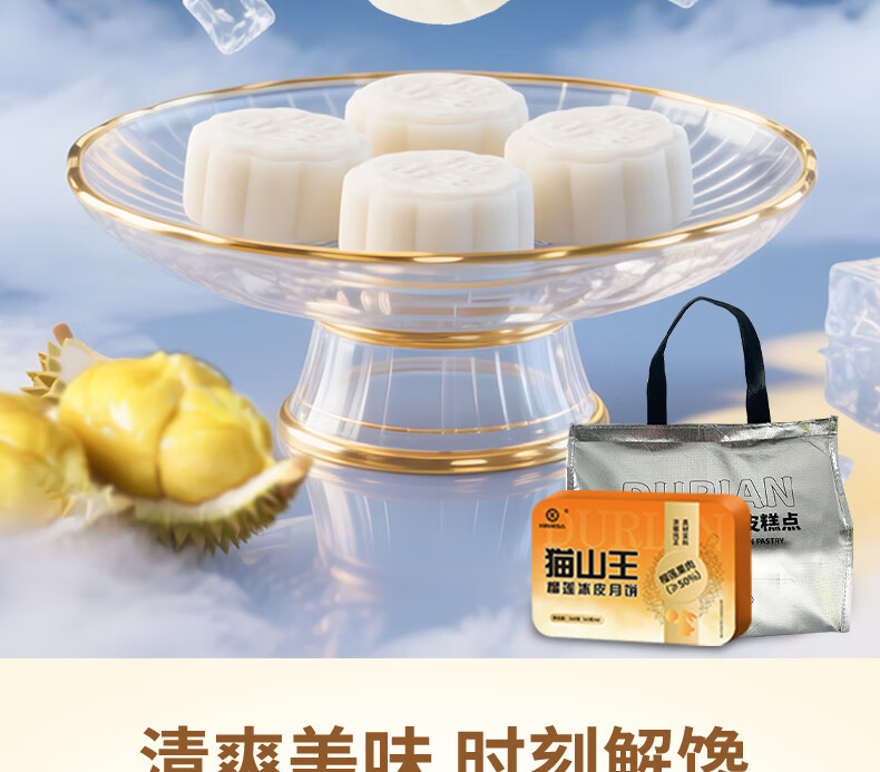 KINHISA猫山王榴莲冰皮月饼中式糕点心水果味小零食送礼盒顺丰冷链发货 60g*6枚礼盒装
