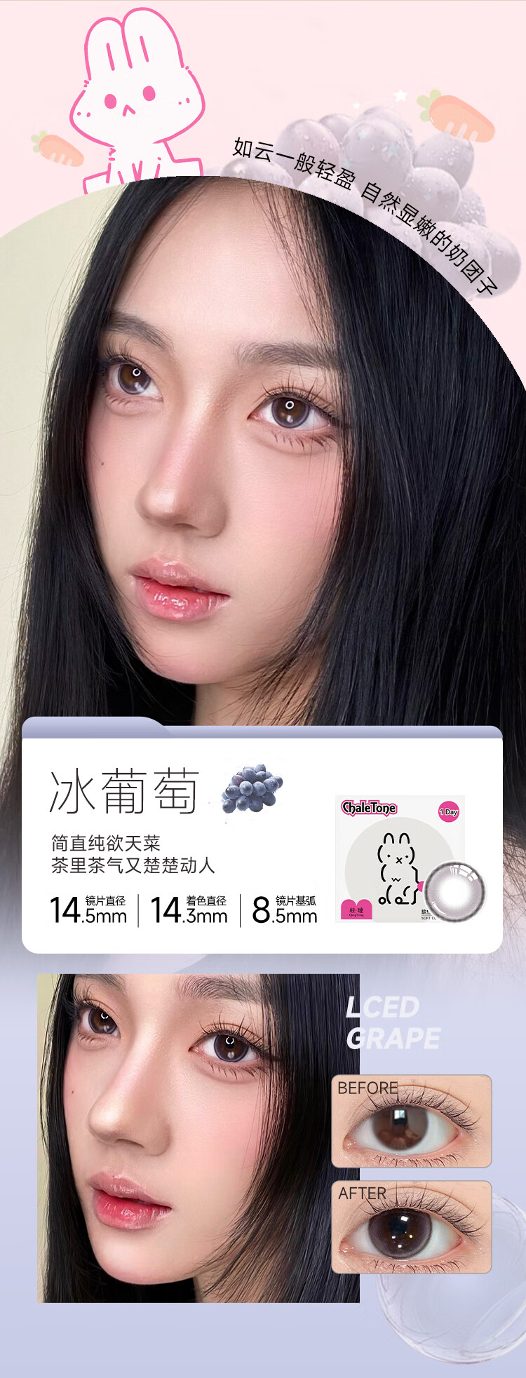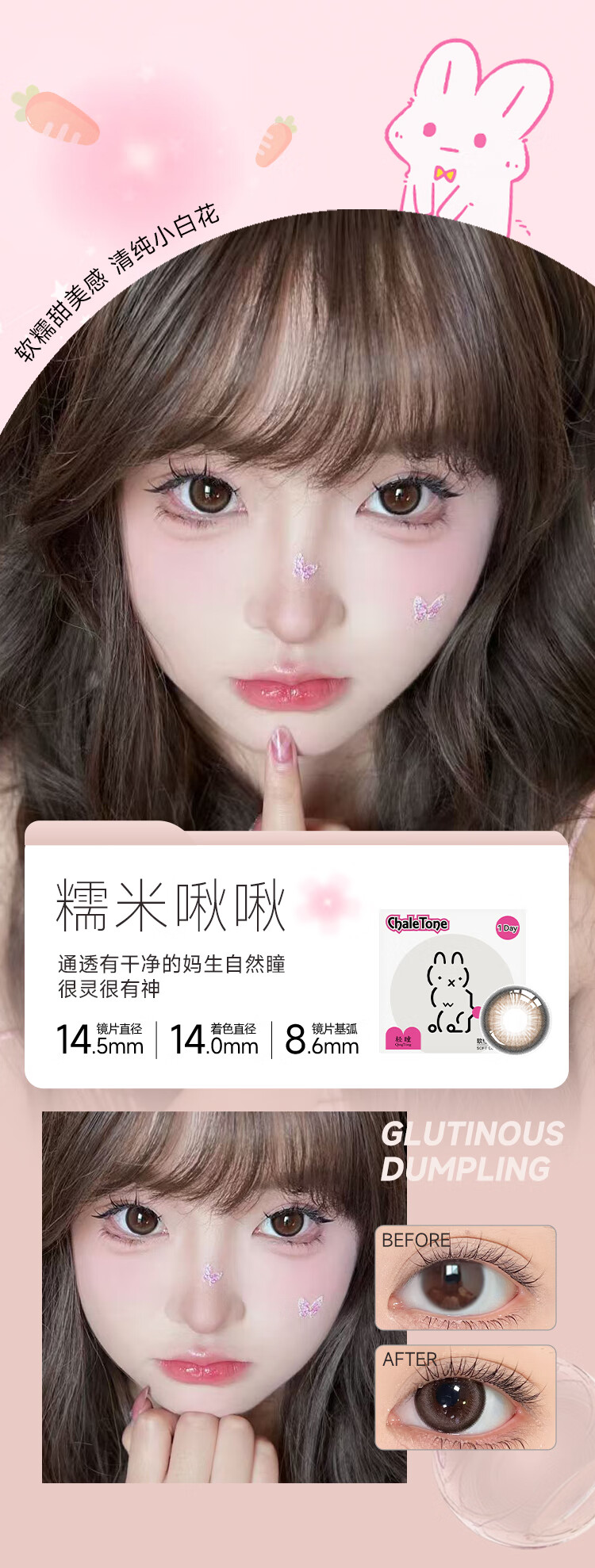 轻瞳美瞳日抛自然通勤日常三明治工艺大小直径隐形眼镜【日抛6片】 【冷萃甜心】妈生伪素颜-日抛6片 175度