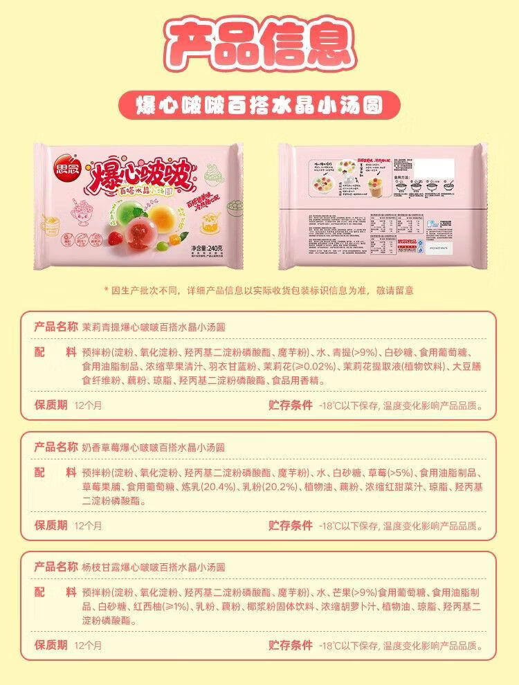 思念爆心啵啵大黄米招财进宝混合水果儿童速冻汤圆元宵早餐8袋 汤圆全家福八件套