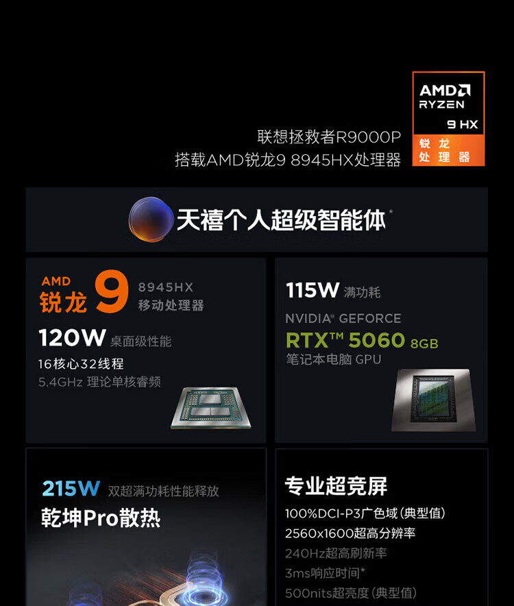 联想拯救者R9000P 2025补贴20%锐龙满血版RTX5060/70独显可选 高性能电竞y大学生打瓦游戏笔记本电脑 R9-8945HX RTX5060丨碳晶黑丨25款 32G+1TB固态丨促销立减丨大额补贴