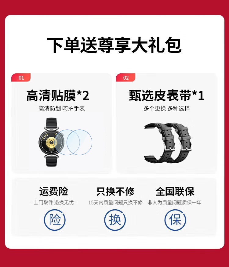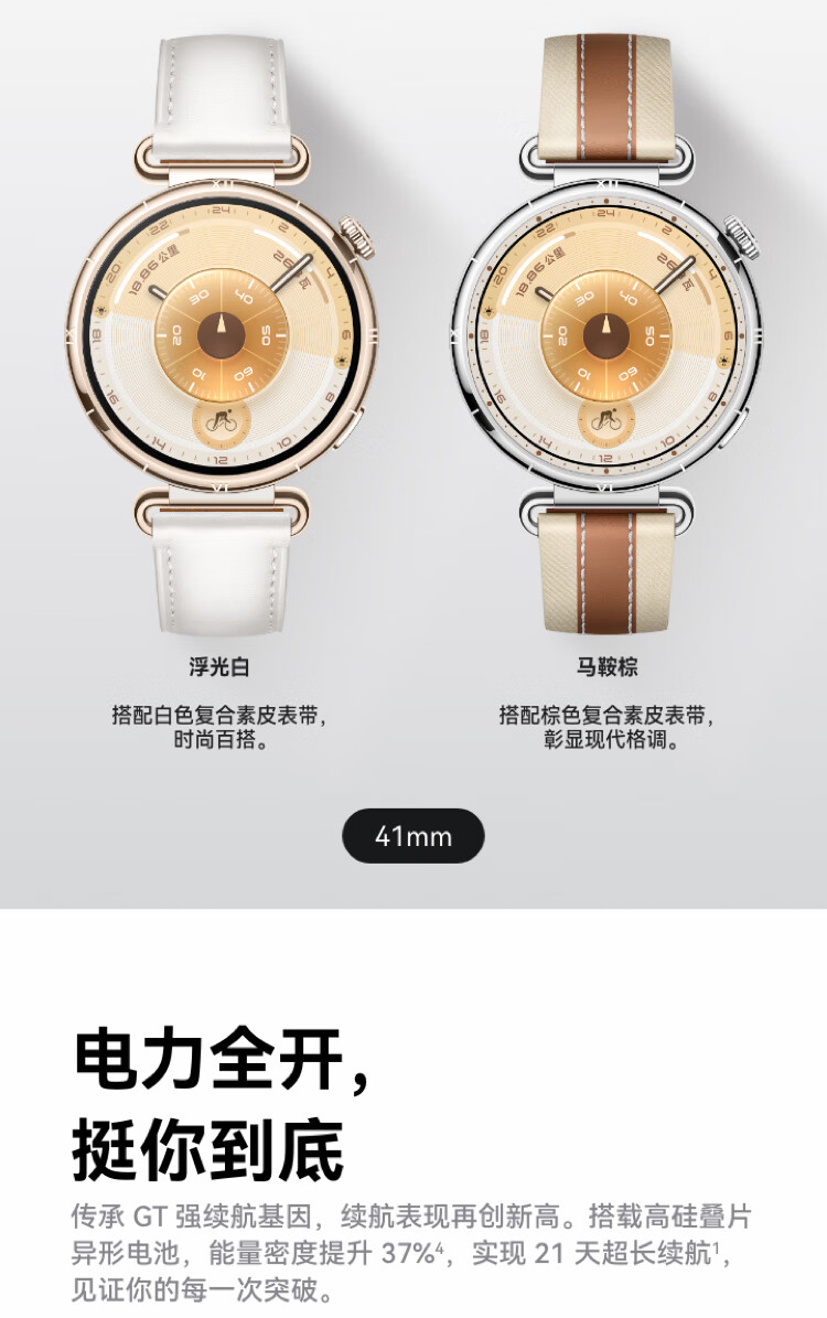 华为(HUAWEI)手表WATCH GT 6【咨询享优惠】运动智能两周续航蓝牙通话体温血氧心率监测健康送男女朋友礼物5pro 41mm浮光白【皮表带+贴膜】