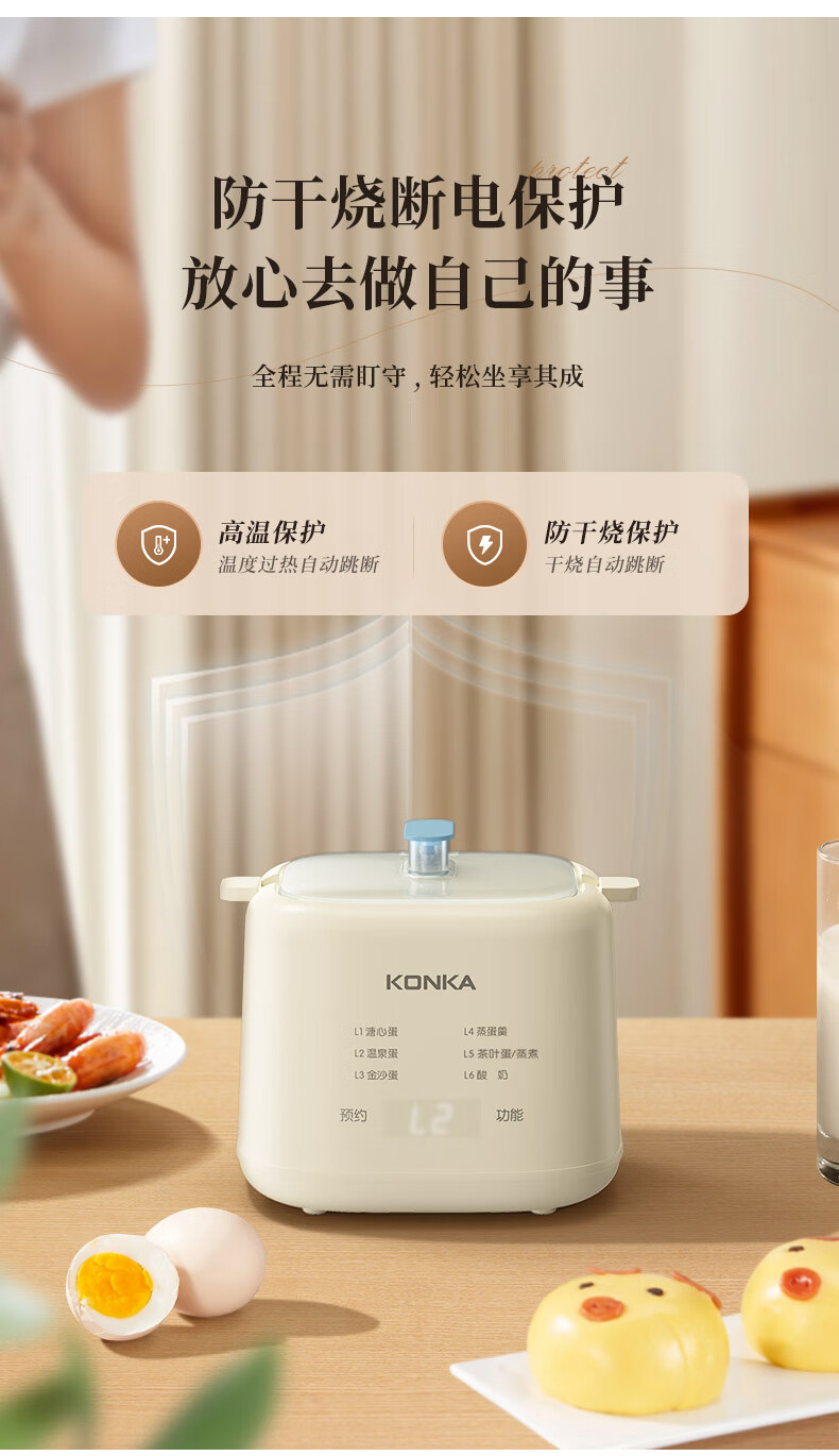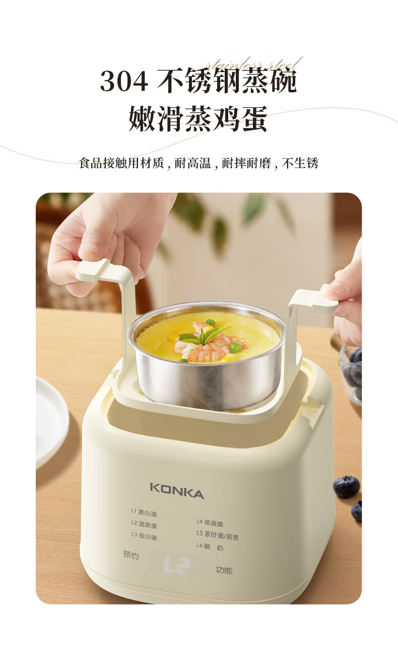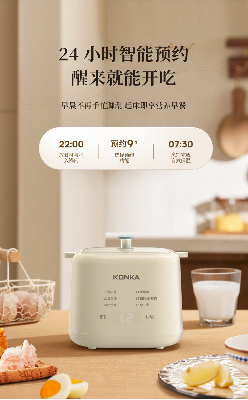 康佳(KONKA)煮蛋器 蒸蛋器迷你小型蒸锅智能定时煮鸡蛋神器多功能早餐一体机自动断电 单层 【升级款】蒸煮多能 | 配送蒸碗