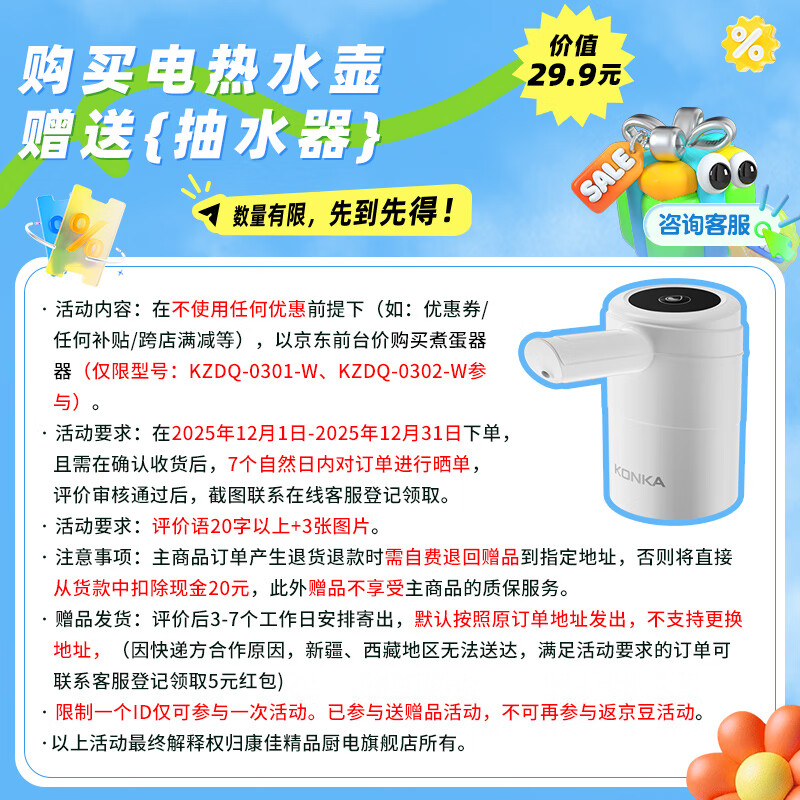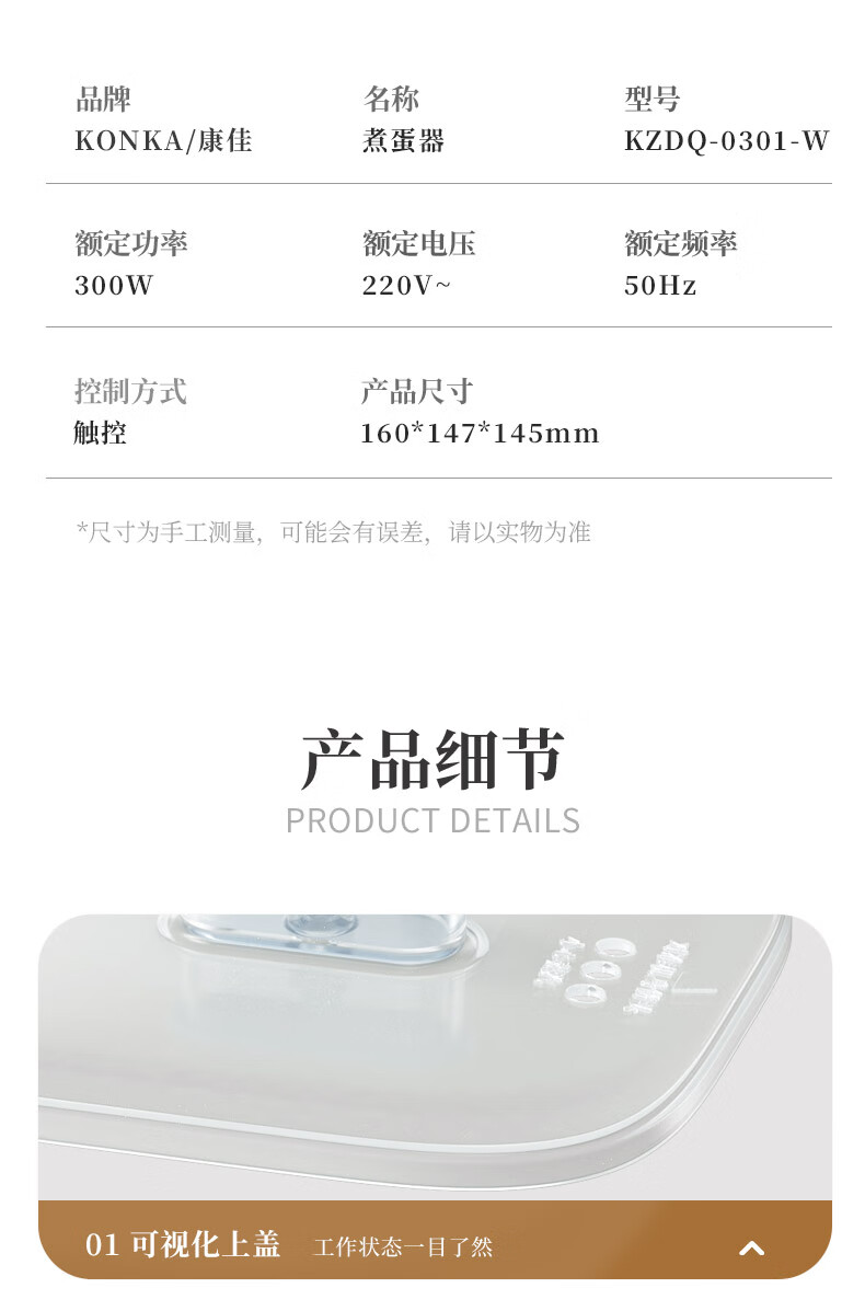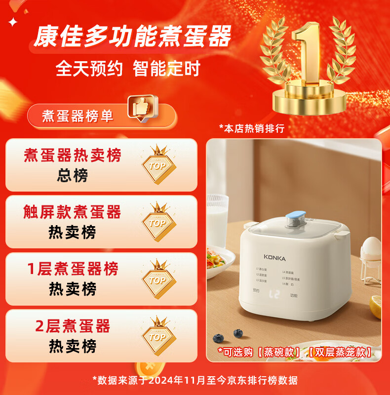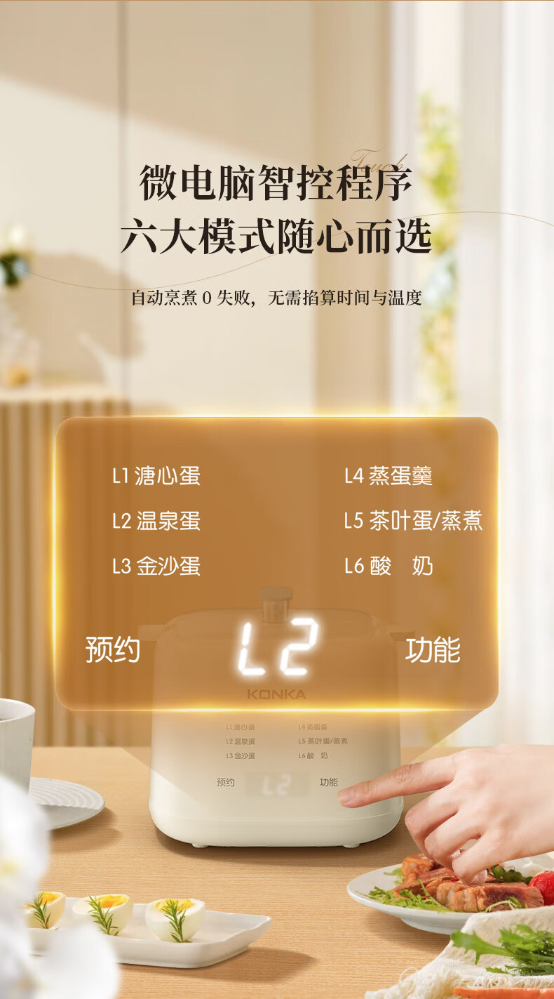 康佳(KONKA)煮蛋器 蒸蛋器迷你小型蒸锅智能定时煮鸡蛋神器多功能早餐一体机自动断电 单层 【升级款】蒸煮多能 | 配送蒸碗