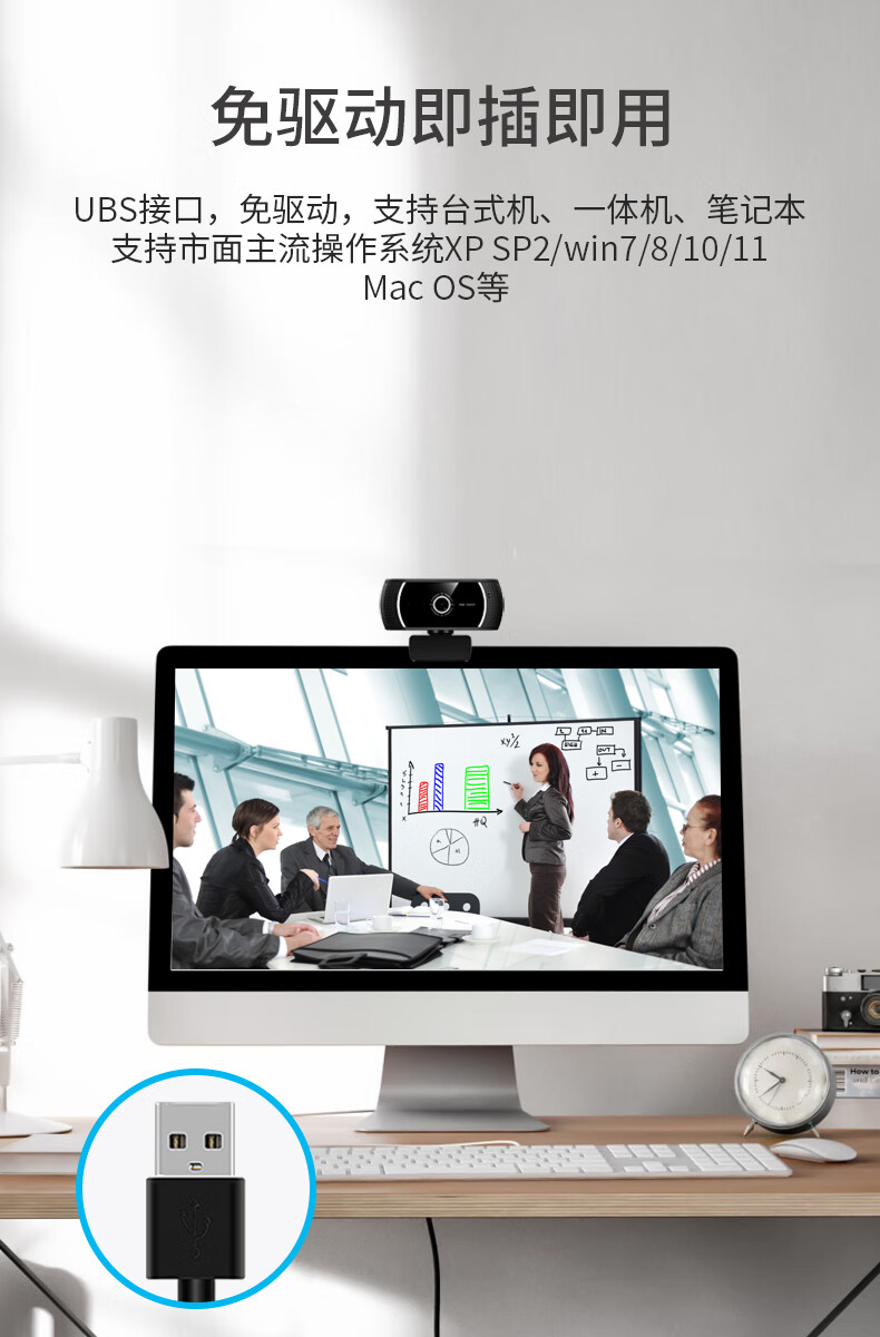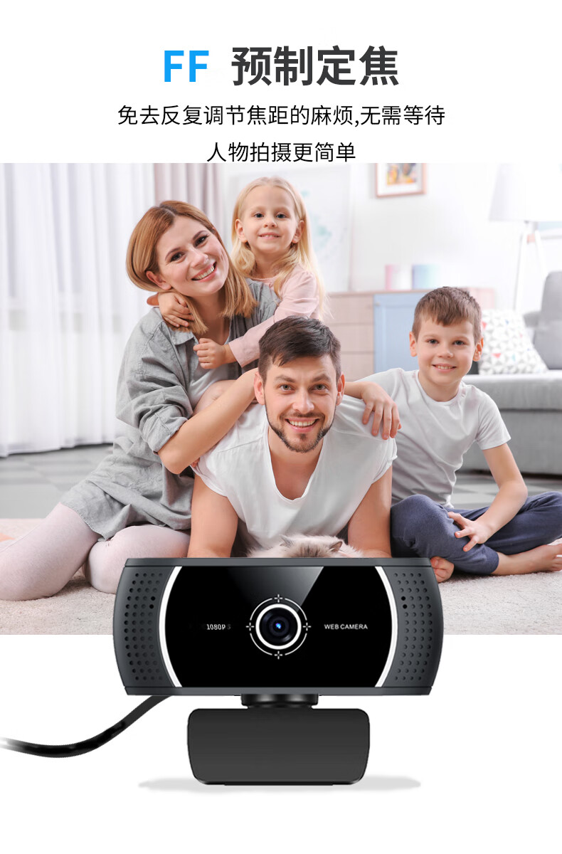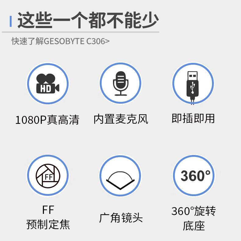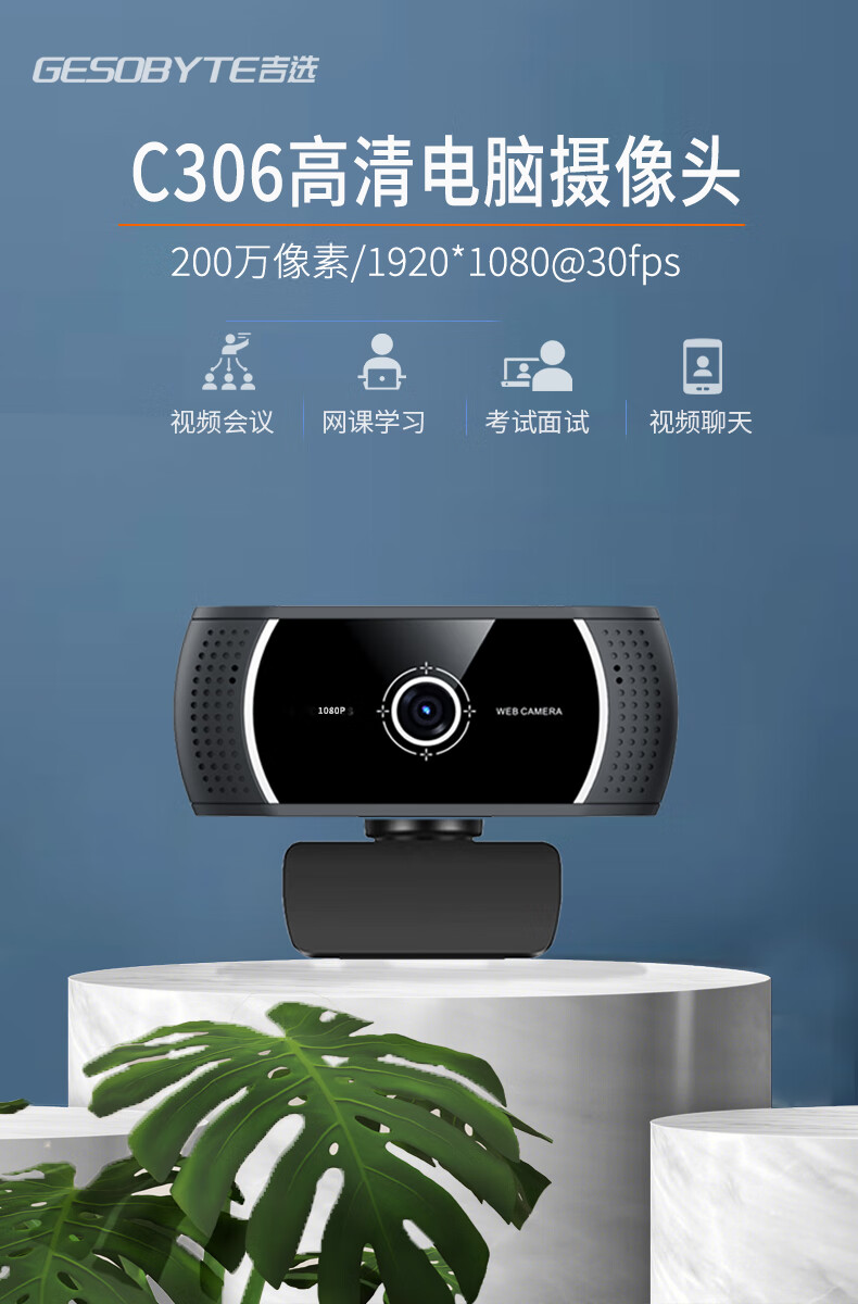 吉选C306电脑摄像头1080P高清麦克风视频通话会议考研复试网课笔记本台式一体直播家用教学USB外置外接
