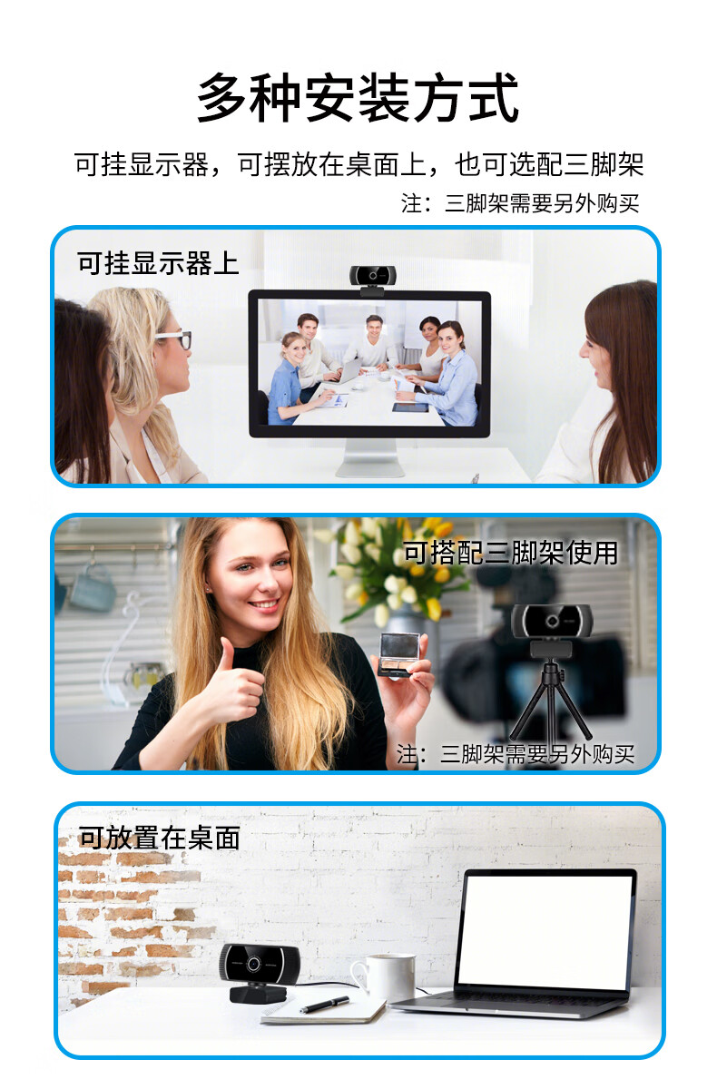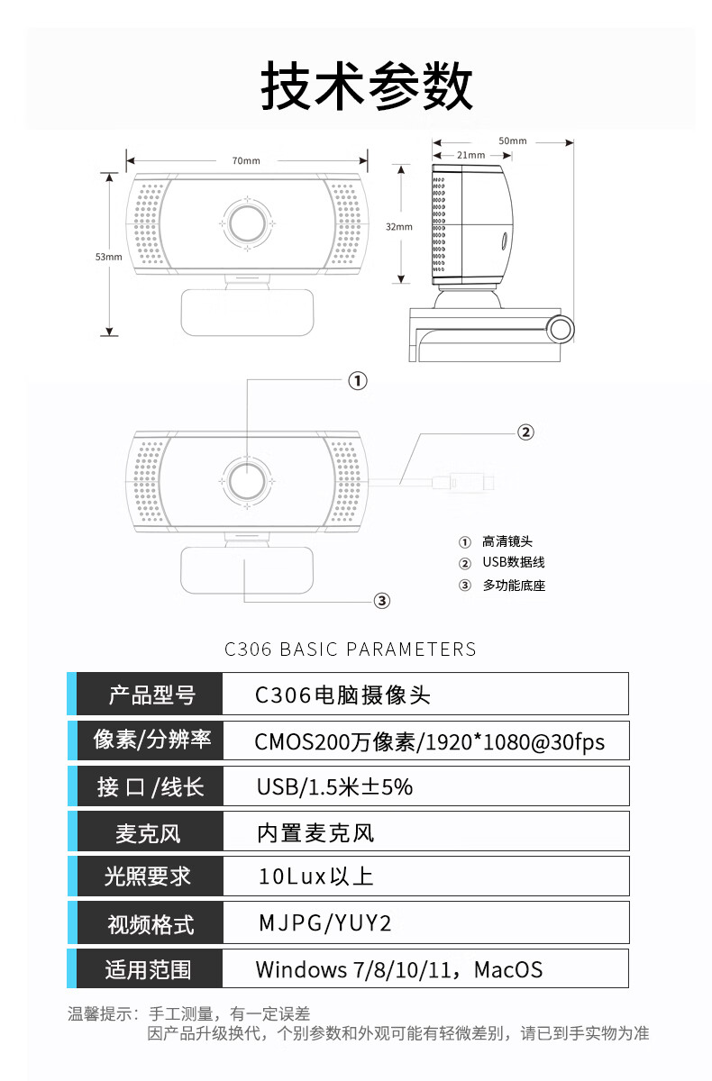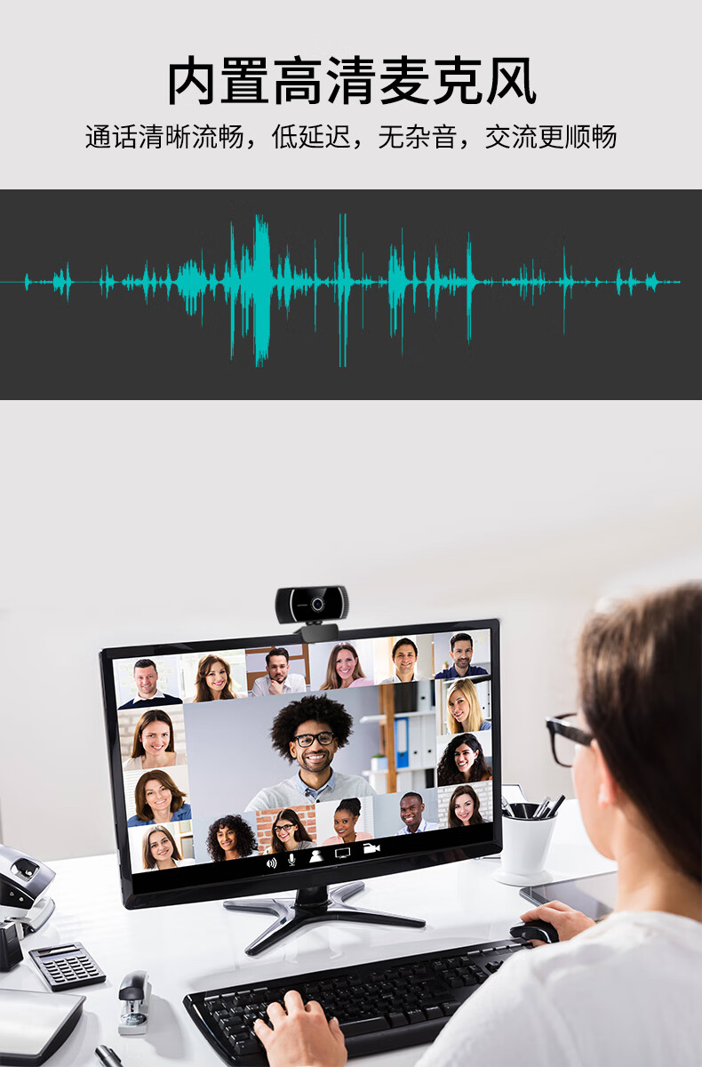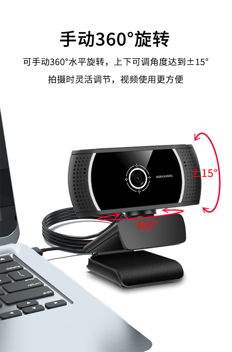 吉选C306电脑摄像头1080P高清麦克风视频通话会议考研复试网课笔记本台式一体直播家用教学USB外置外接