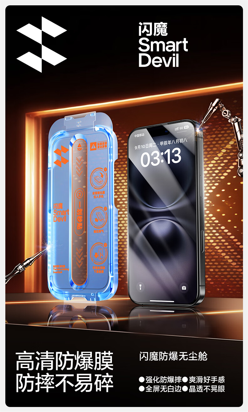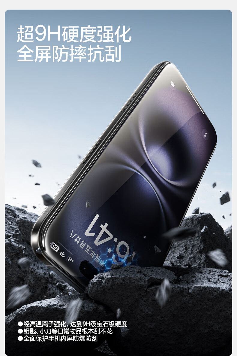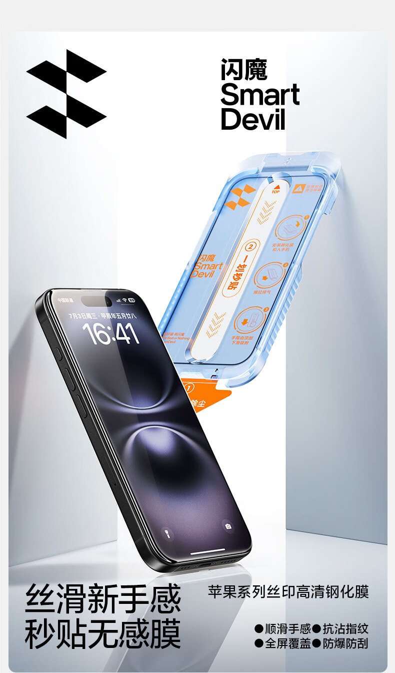 闪魔适用苹果16/15钢化膜iphone16/15手机膜全屏高清防爆防摔抗指纹顺滑手感细边无白边听筒防尘2片装