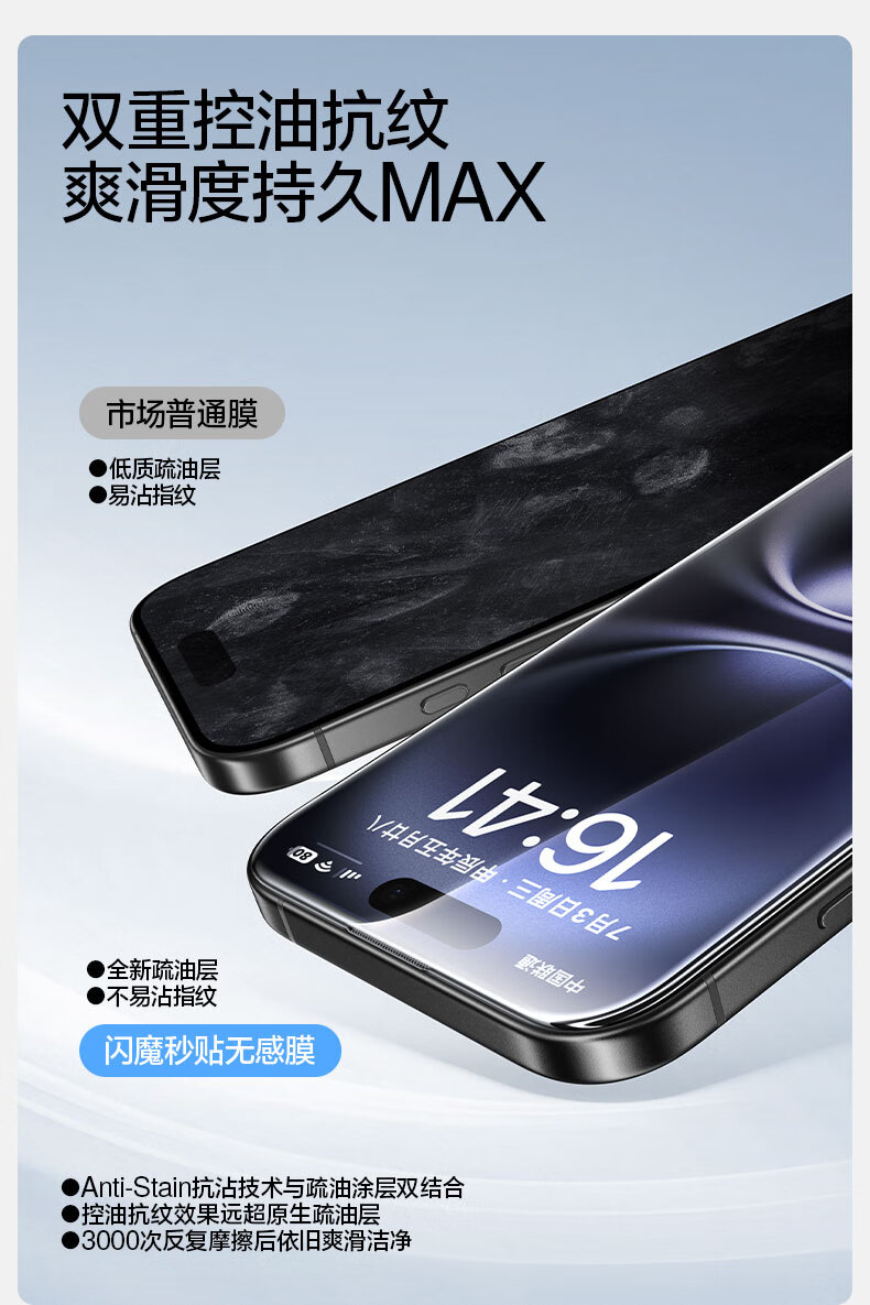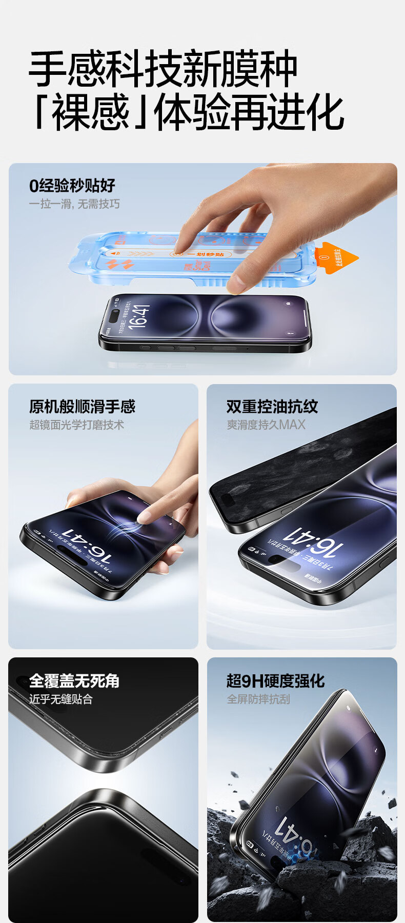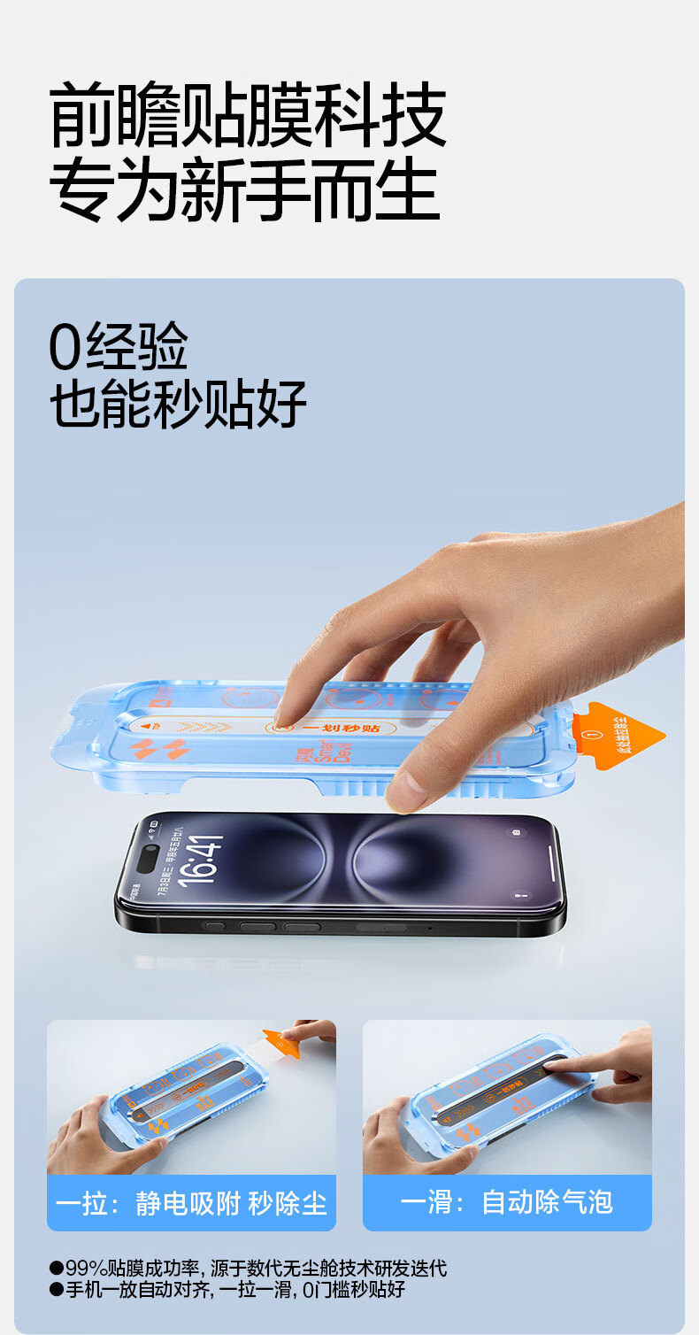 闪魔适用苹果16/15钢化膜iphone16/15手机膜全屏高清防爆防摔抗指纹顺滑手感细边无白边听筒防尘2片装