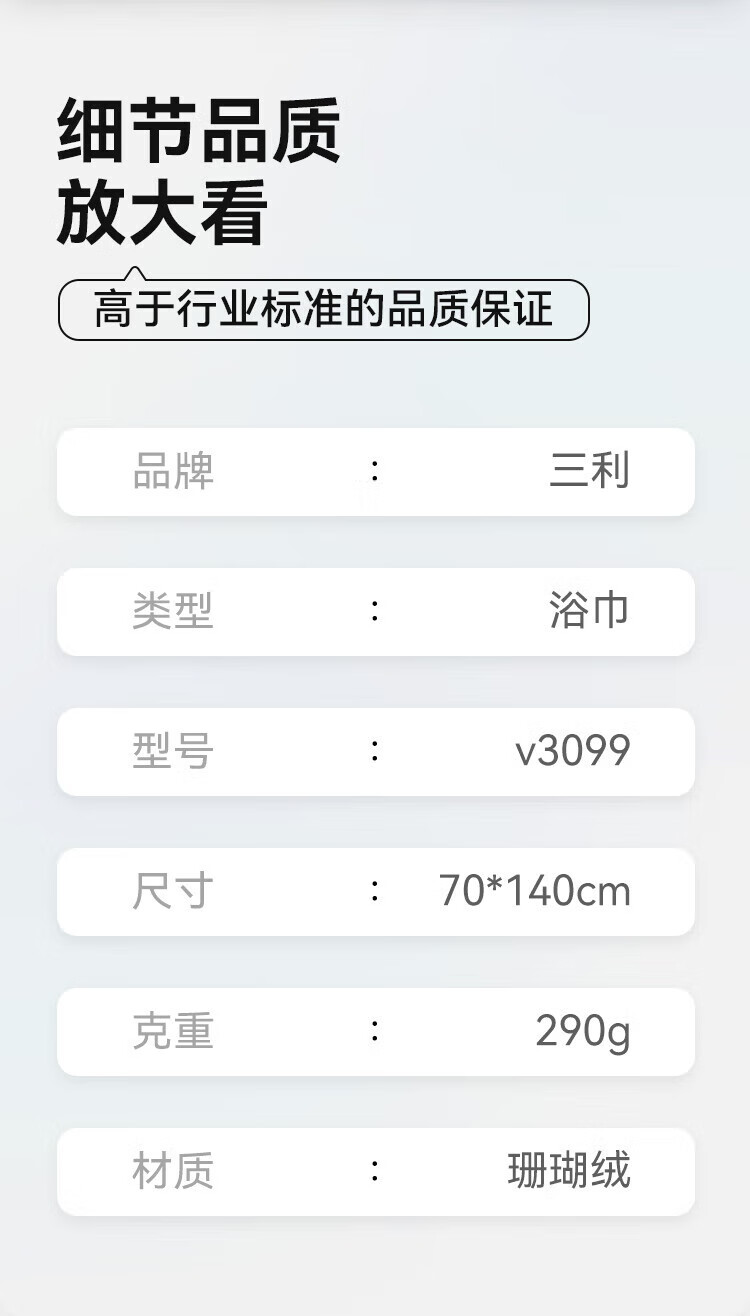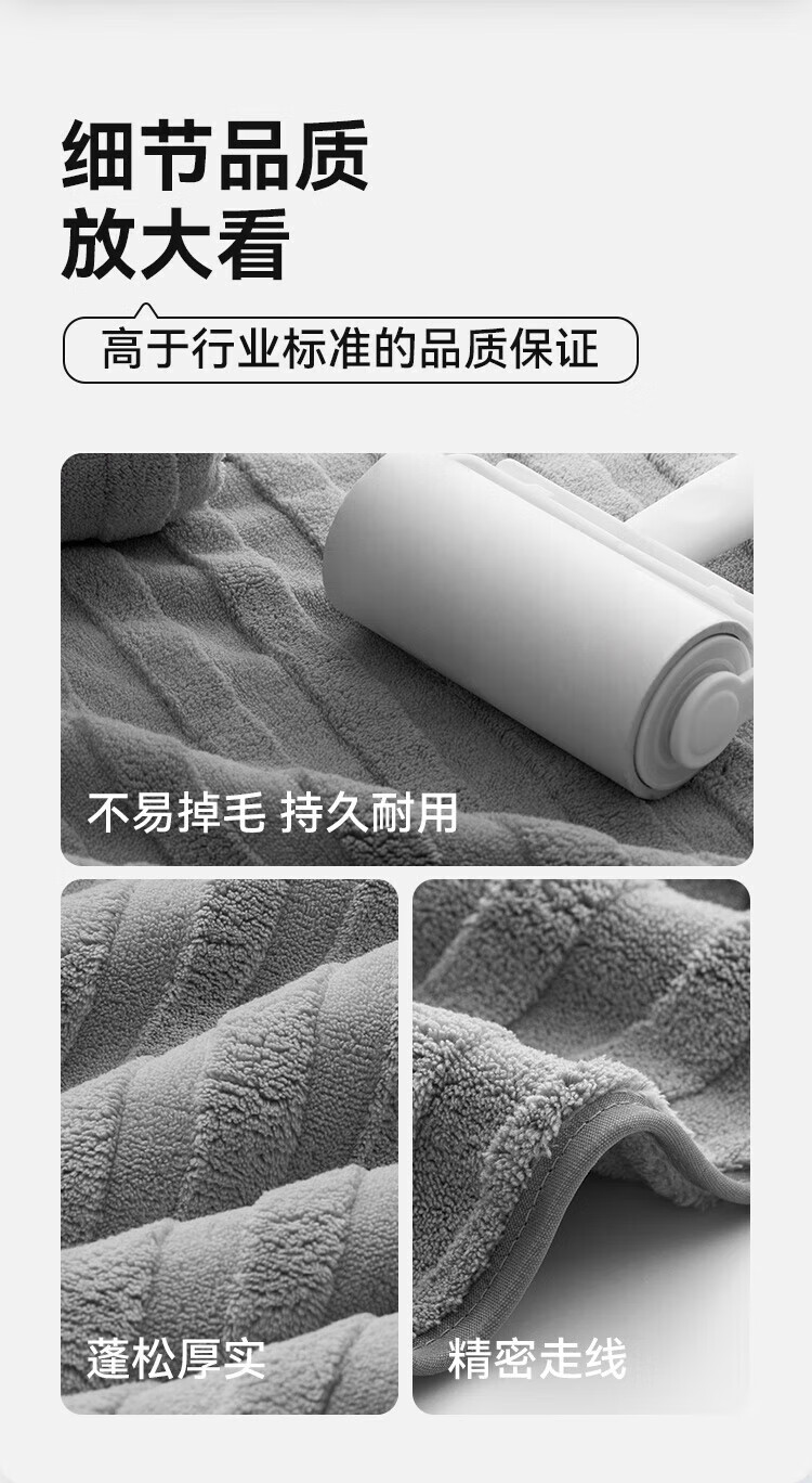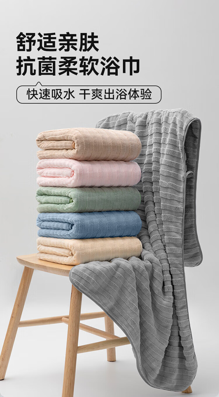 三利sanli7A抗菌珊瑚绒洗脸洗澡柔软吸水速干不易掉毛成人情侣大浴巾 灰色