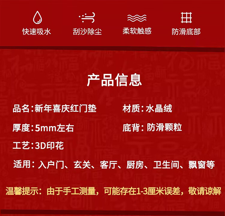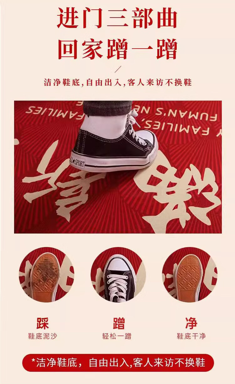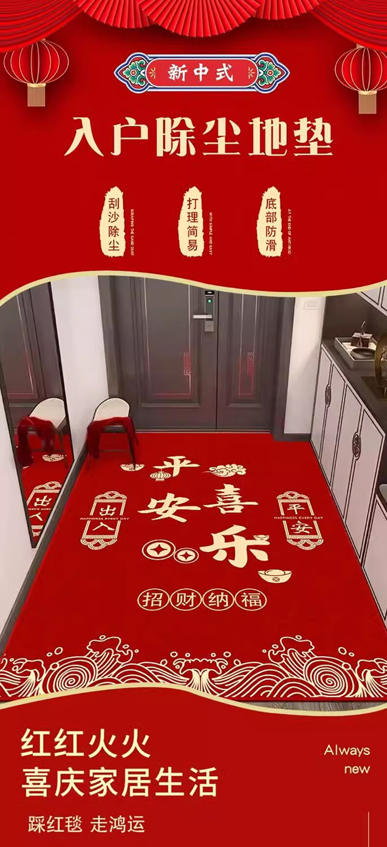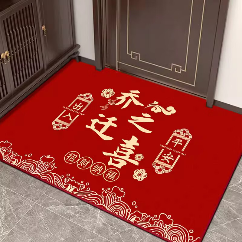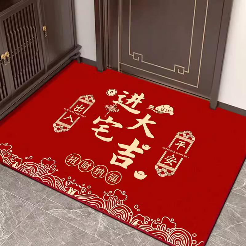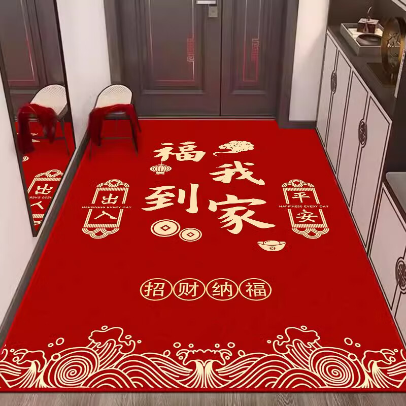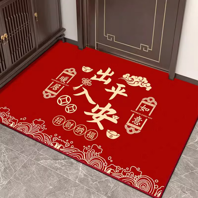 KAYE迎新年马年地垫入户门垫门口进门喜庆红地垫家用过年吸水防滑垫子 SJR-平安喜乐 50x80 cm(卧室专用)