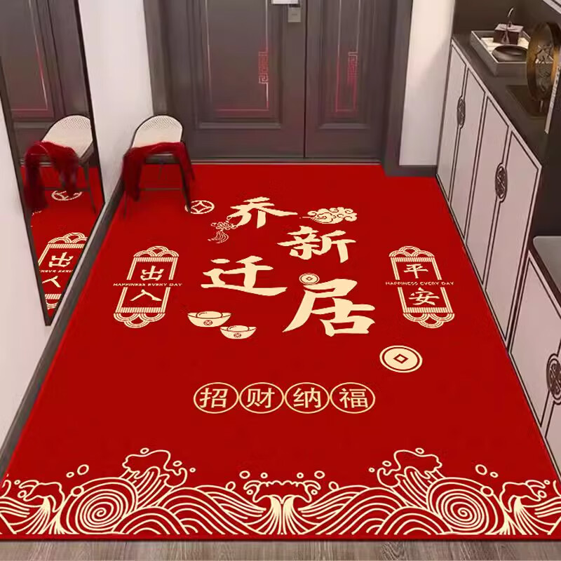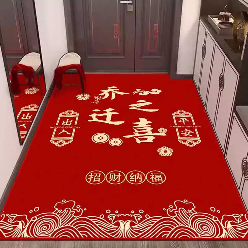 KAYE乔迁地垫入户门进门喜庆脚垫新居红色垫子家用新年玄关门口防滑垫 SJR-祥云福到我家-横版 40x60 cm(浴室专用)