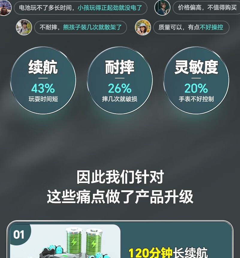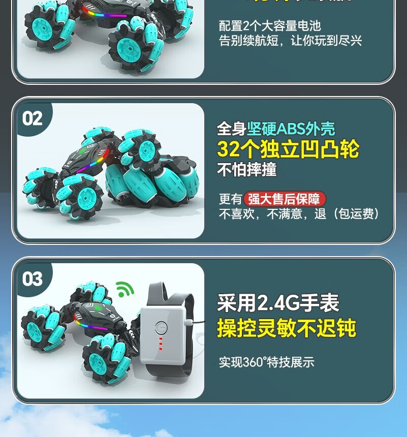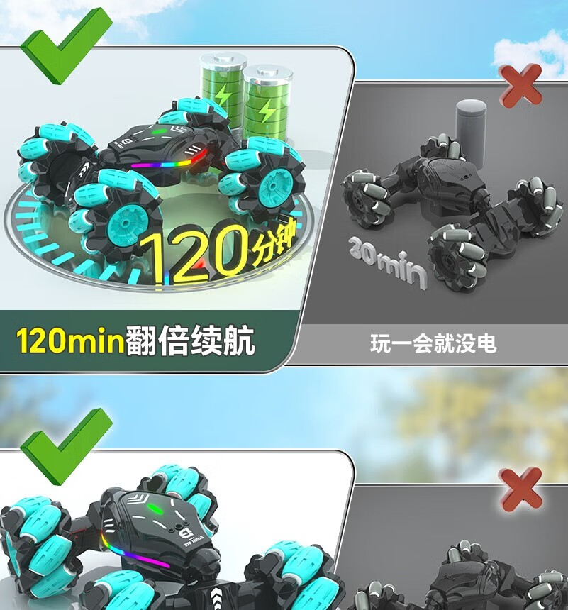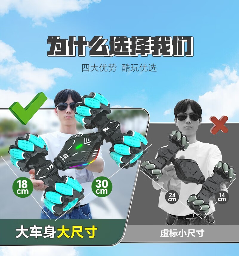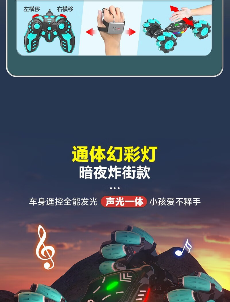 qdrone For the Good Moments手势感应变形遥控车儿童玩具男孩遥控汽车扭变特技车3-6-12岁 30cm蓝【双电+三控】 男孩生日礼物圣诞礼物儿童节