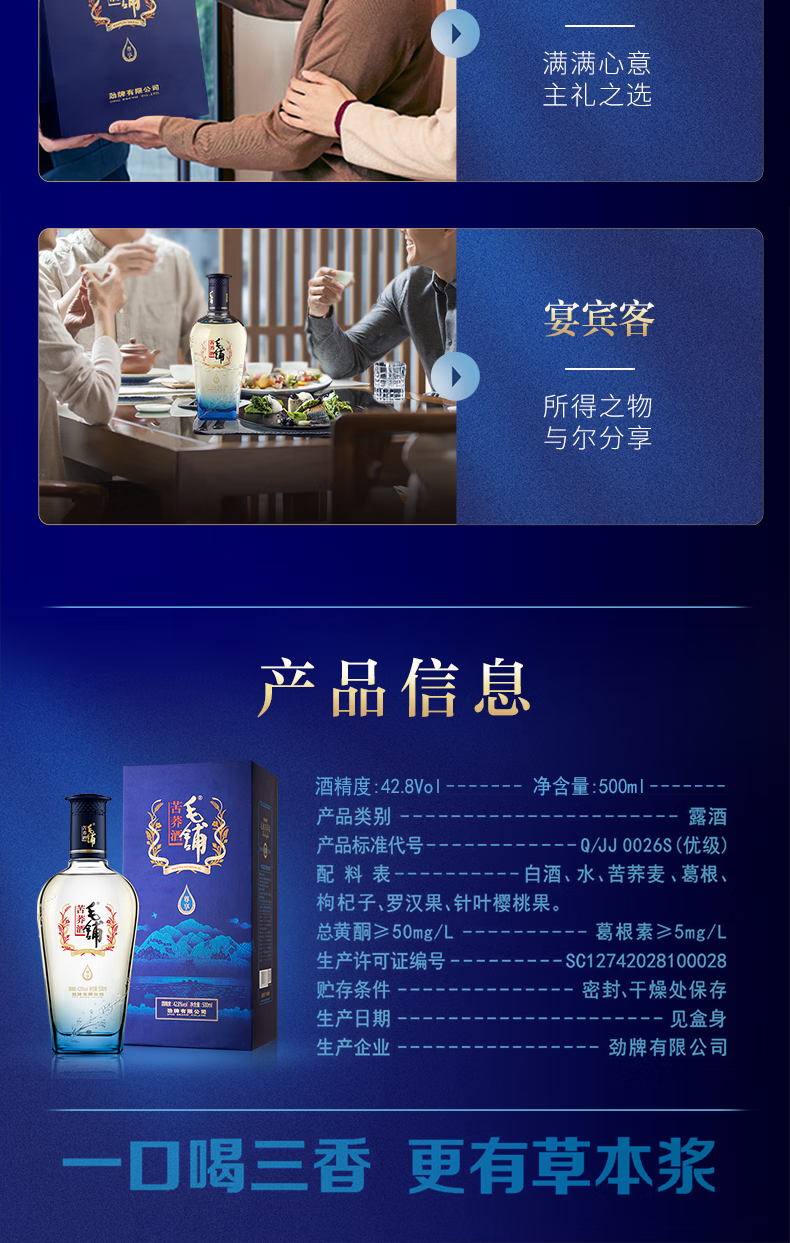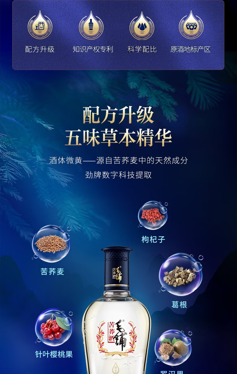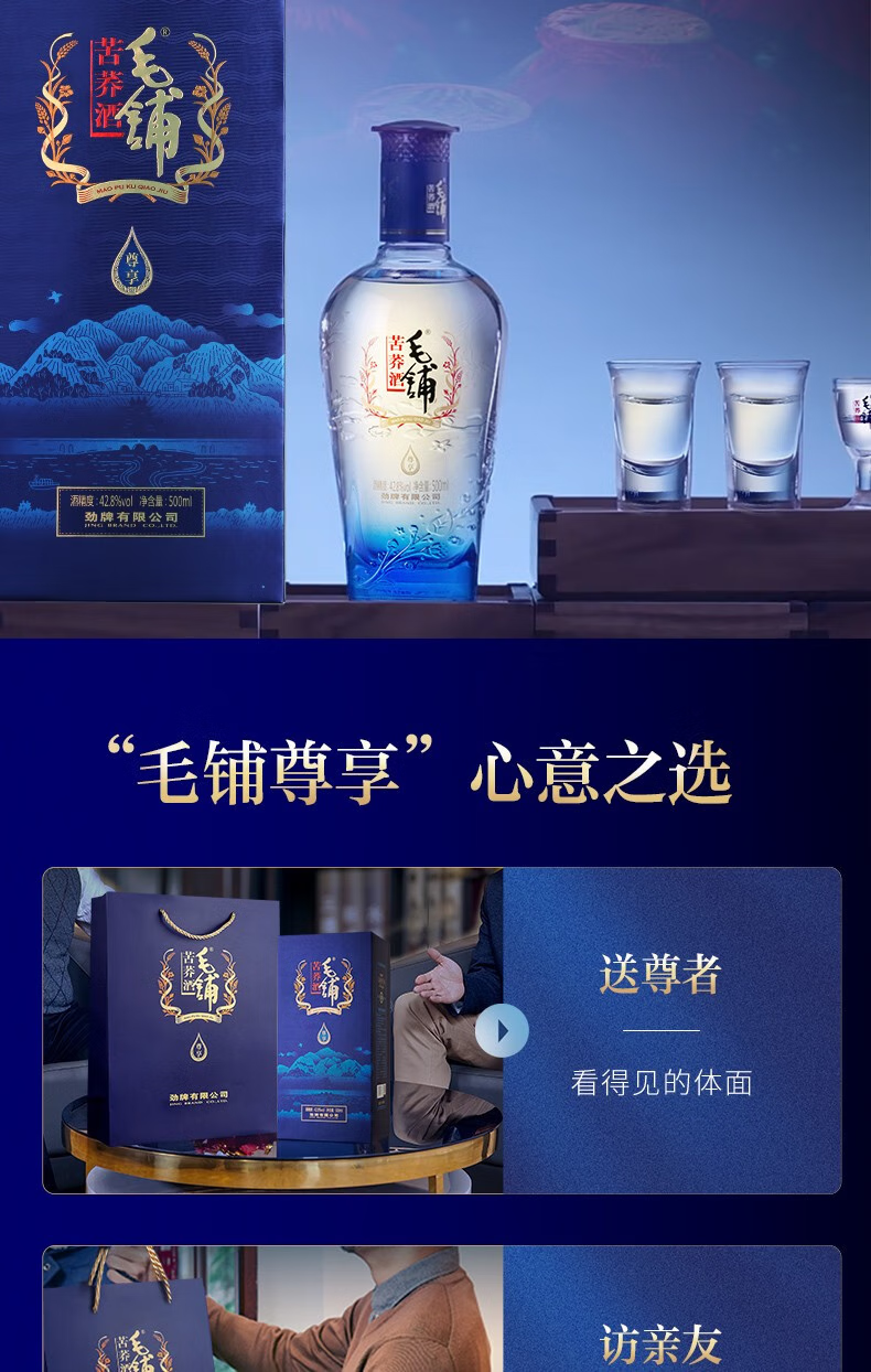 毛铺尊享苦荞酒黑荞酒体升级 42.8度500ml 配制酒 42.8度 500mL 2瓶 礼盒装