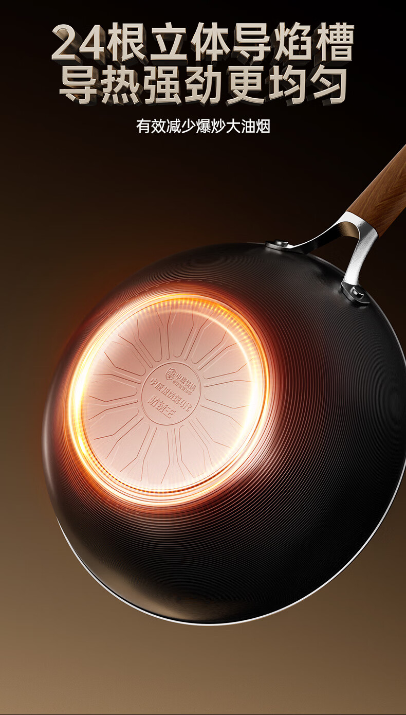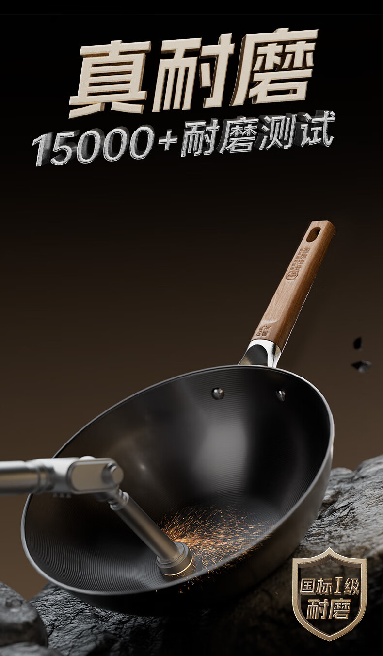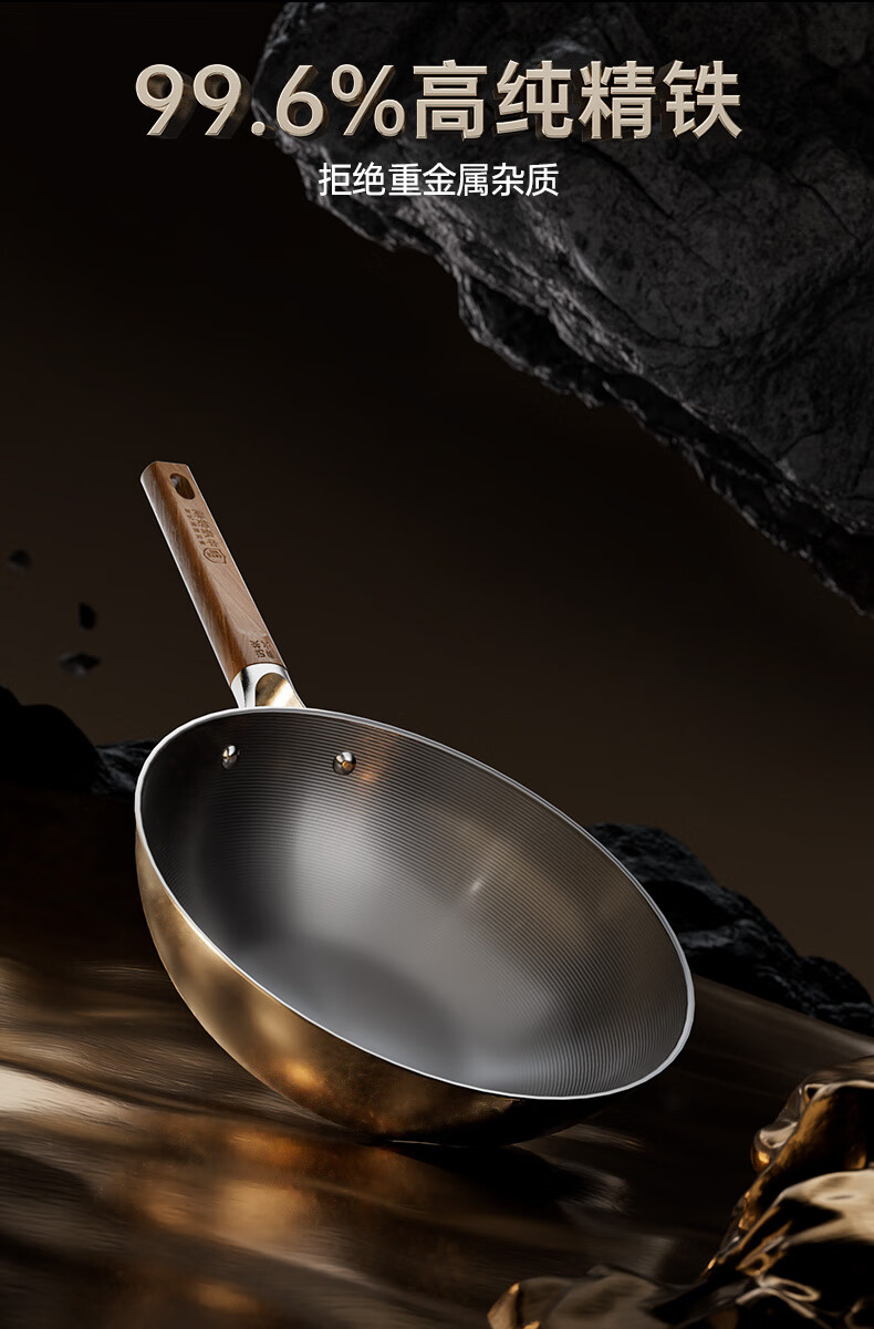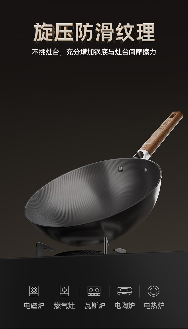 万代传铁锅章丘款炒锅不粘锅锻打无涂层老式炒锅燃气煤气灶通用圆底锅 【4-8人使用】 36cm 手工锻打古法黑锅