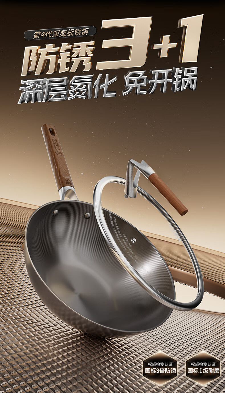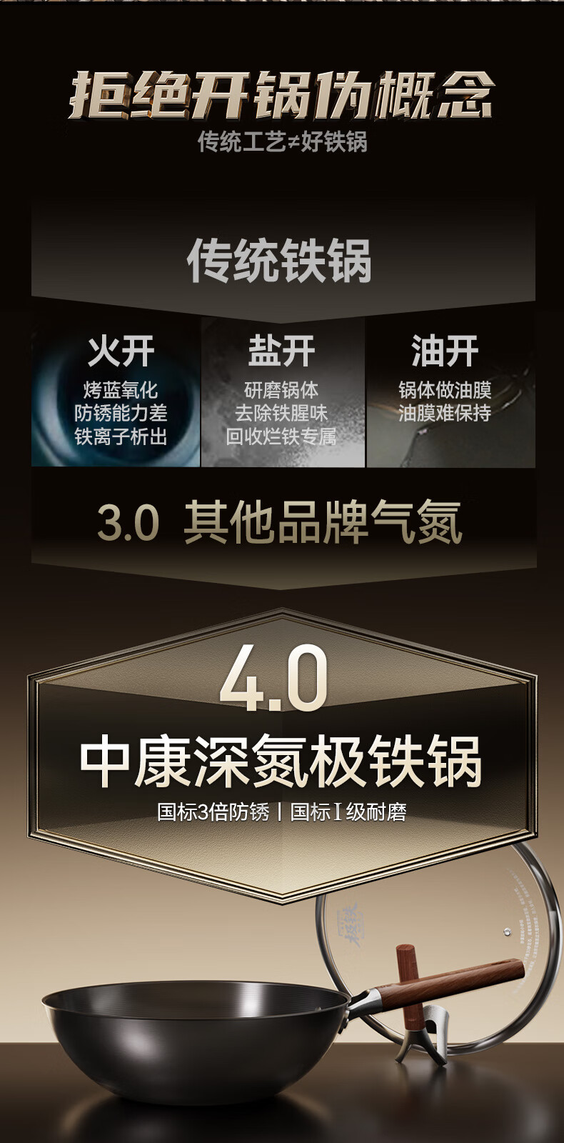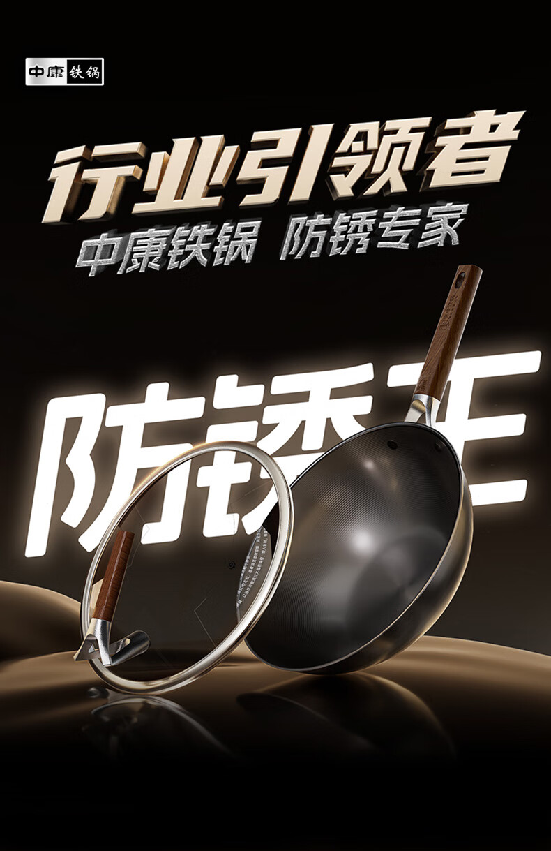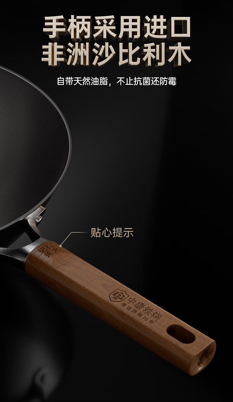 中康铁锅炒锅不粘锅第四代深氮平底锅精铁无涂层电磁炉燃气通用32cm