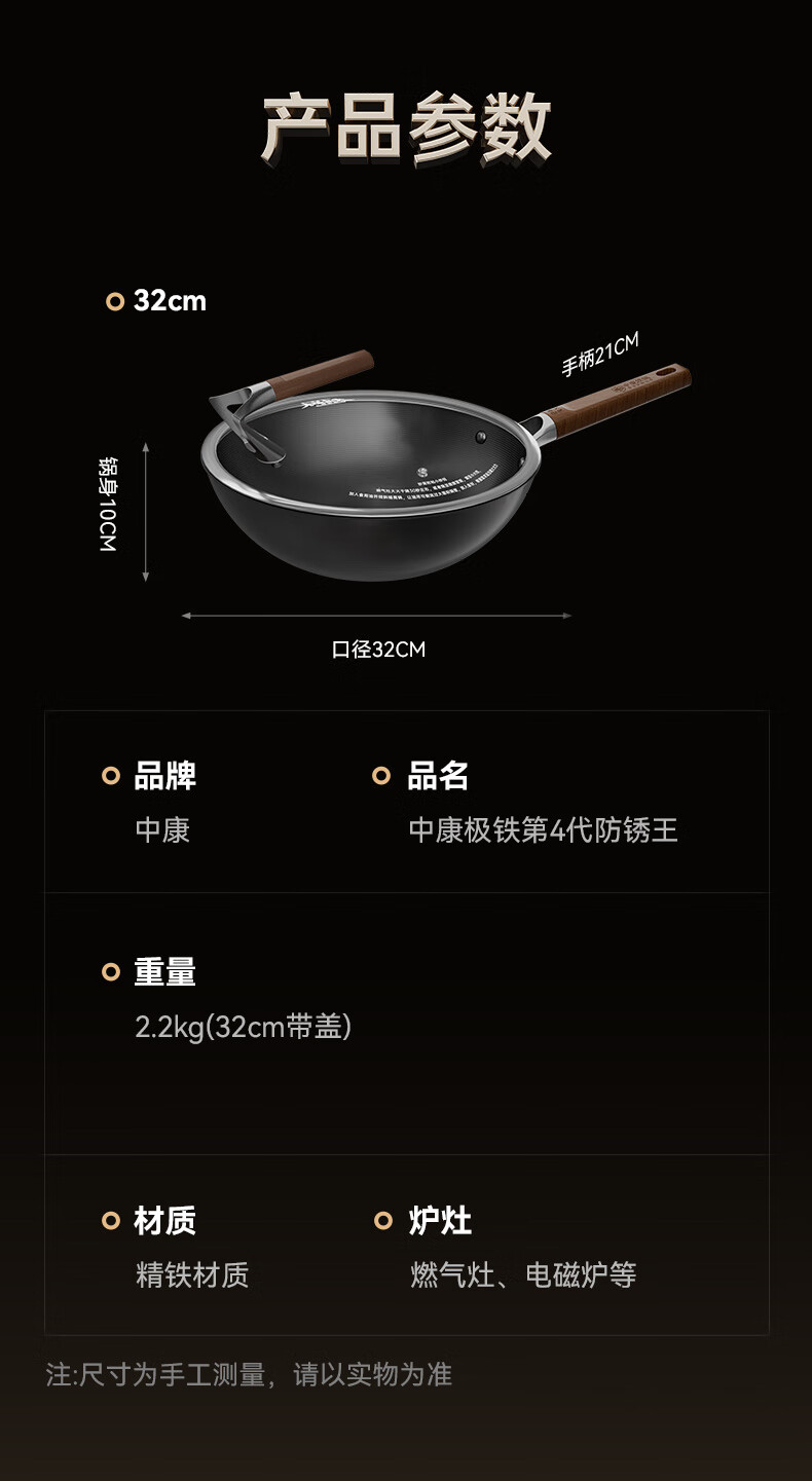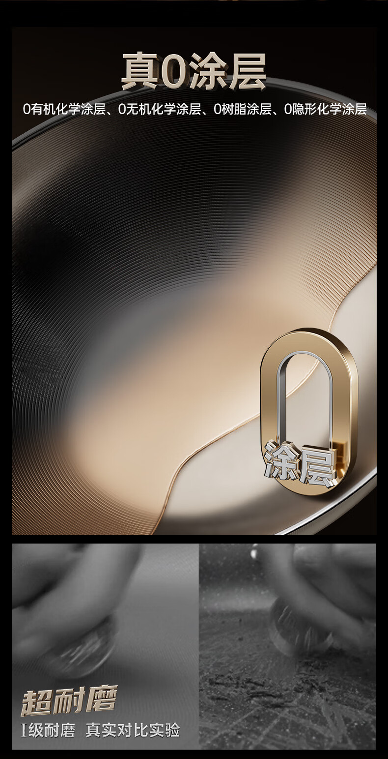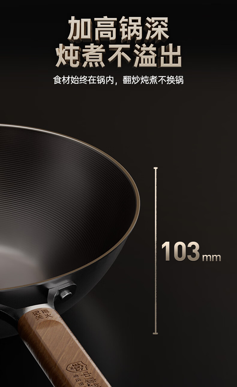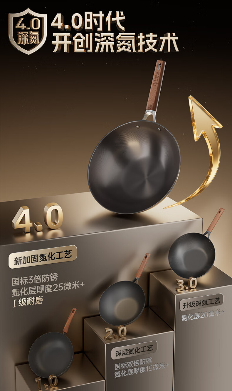 中康铁锅炒锅不粘锅第四代深氮平底锅精铁无涂层电磁炉燃气通用32cm