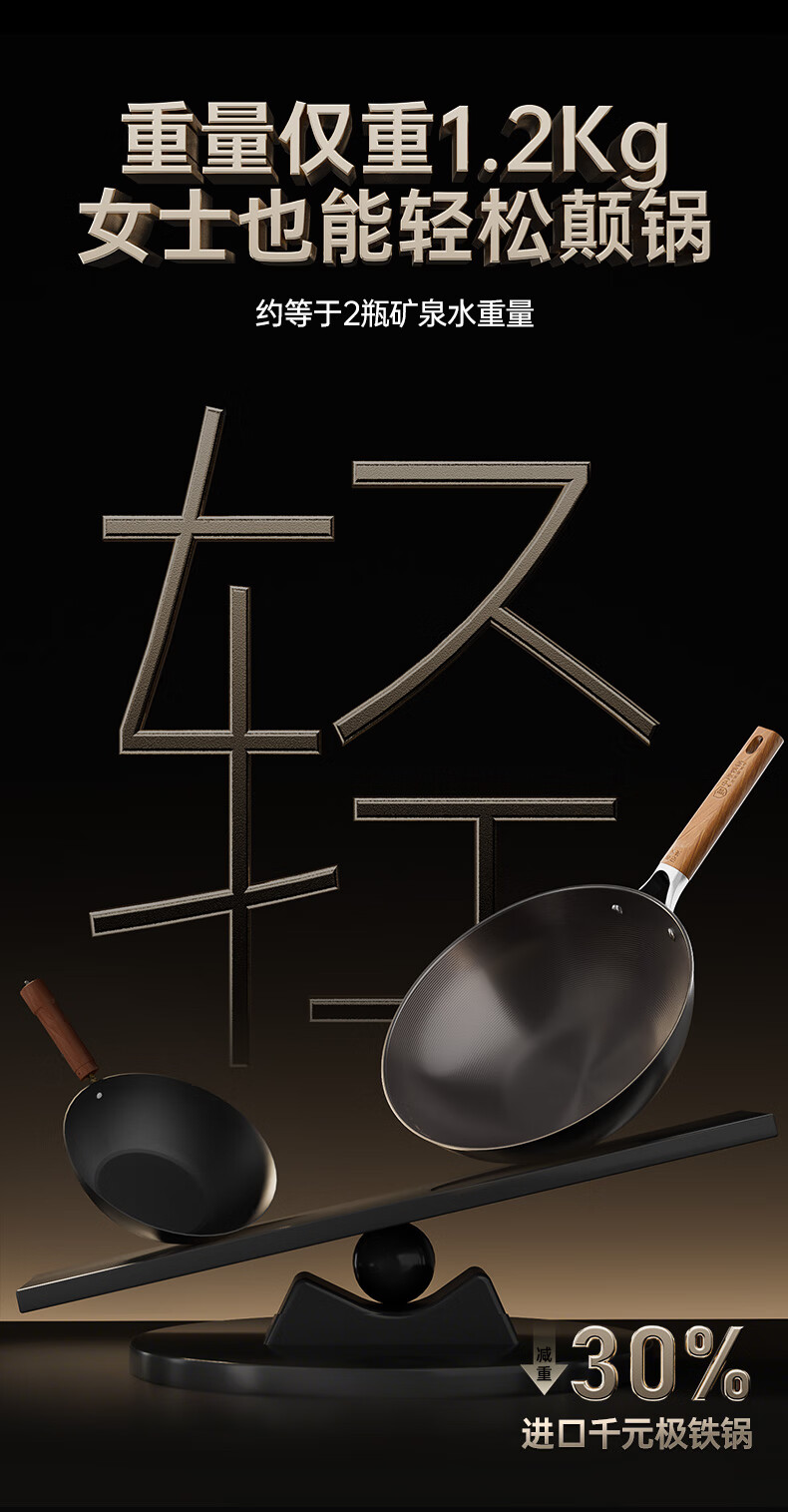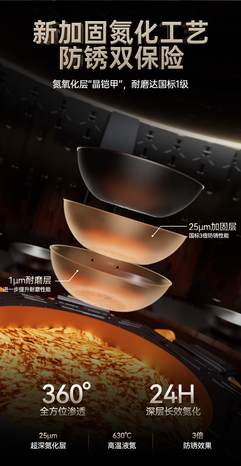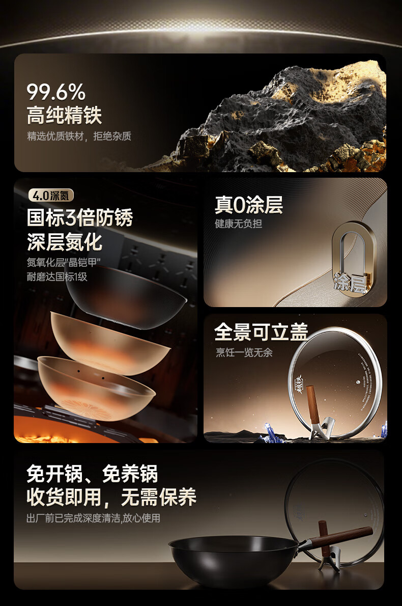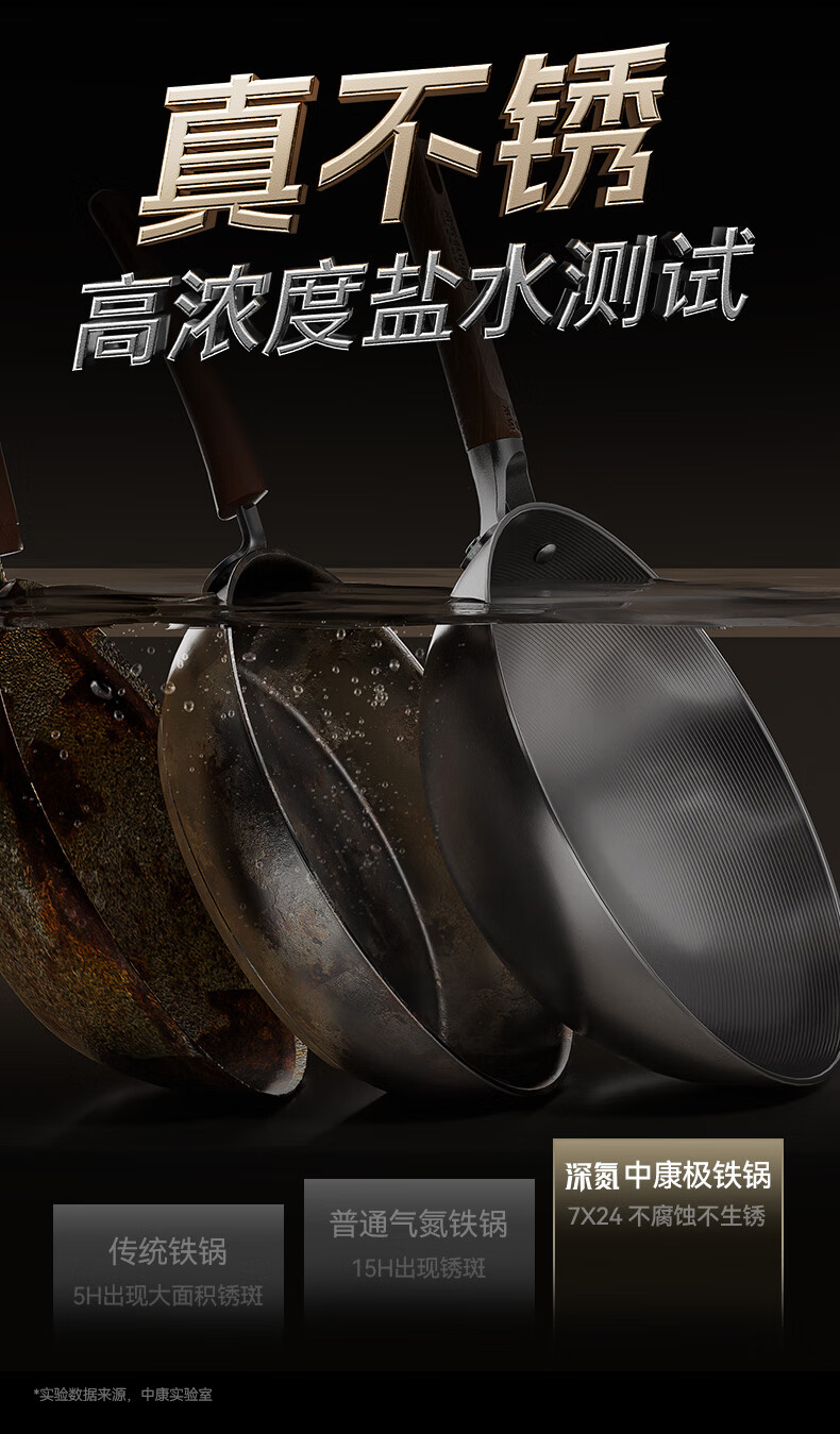 中康铁锅炒锅不粘锅第四代深氮平底锅精铁无涂层电磁炉燃气通用32cm