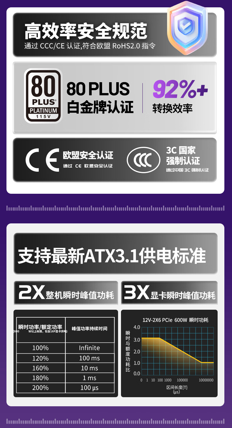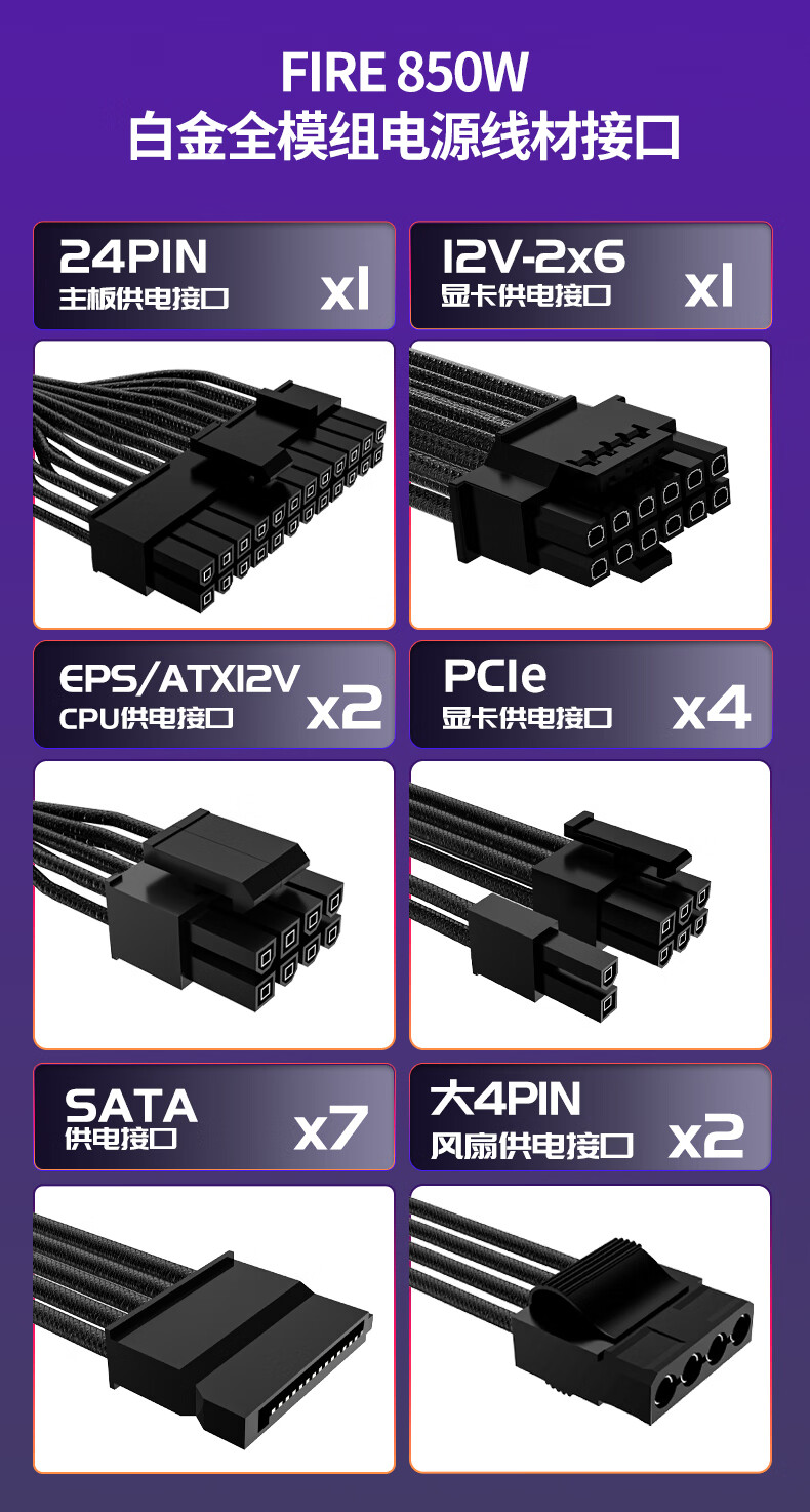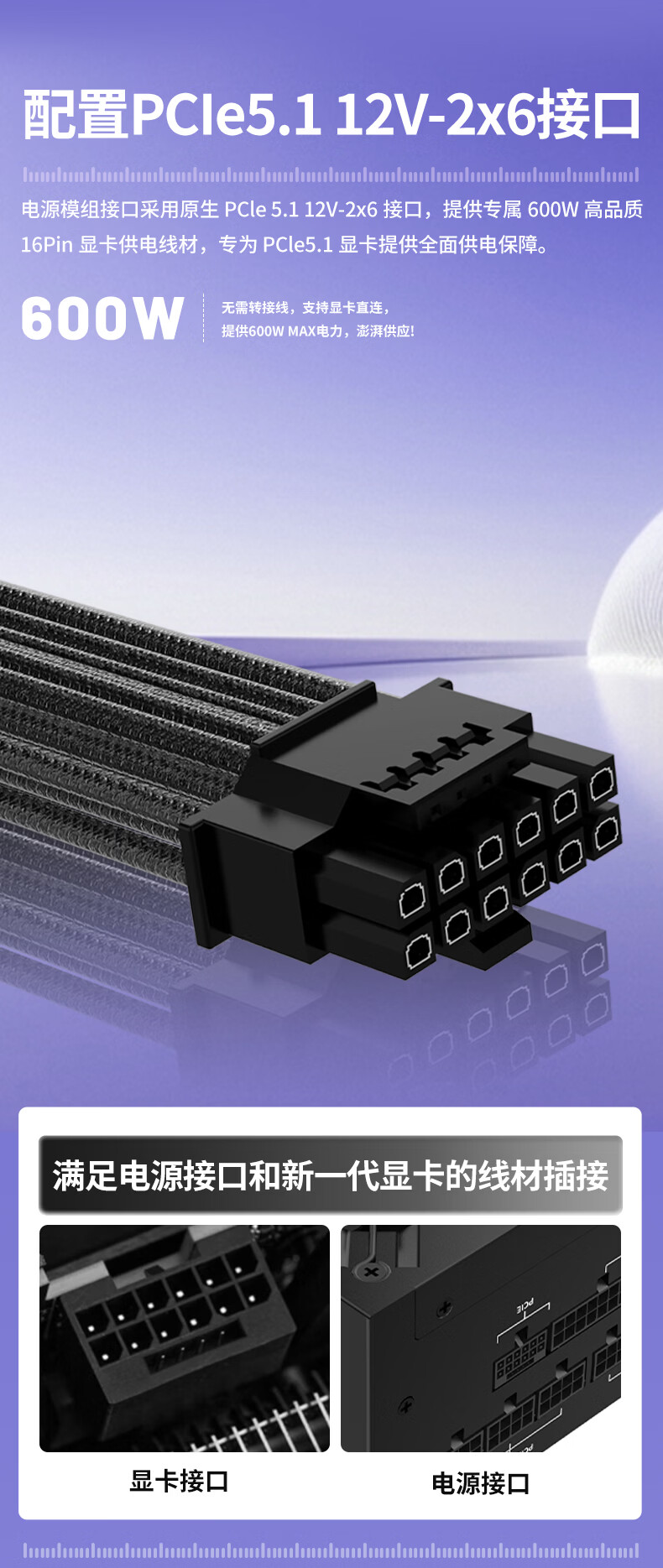 长城(Great Wall)额定850W F8白金牌全模组电脑电源(ATX3.1标准/原生PCIe5.1/自动启停/全电压/闪电加速)